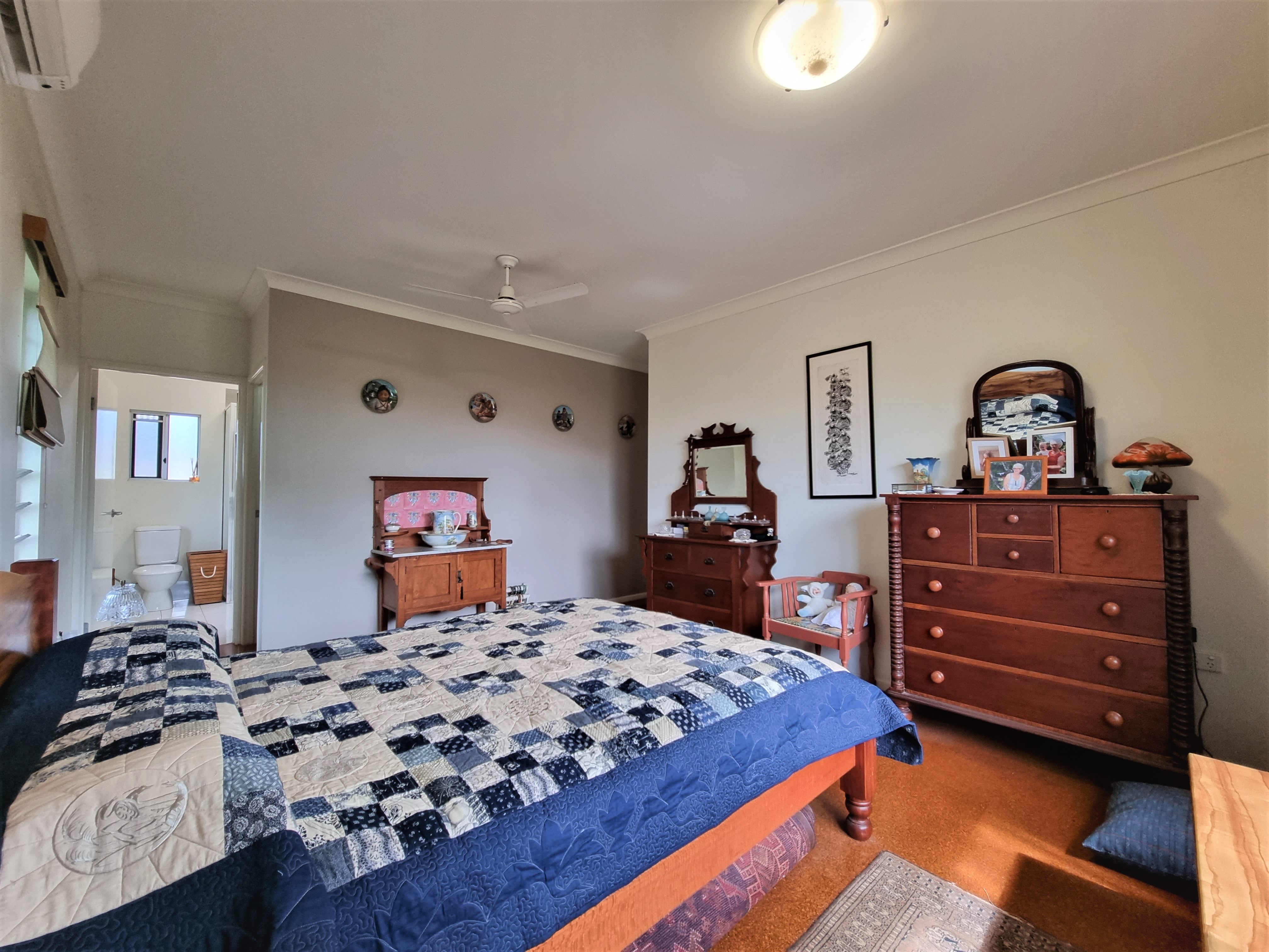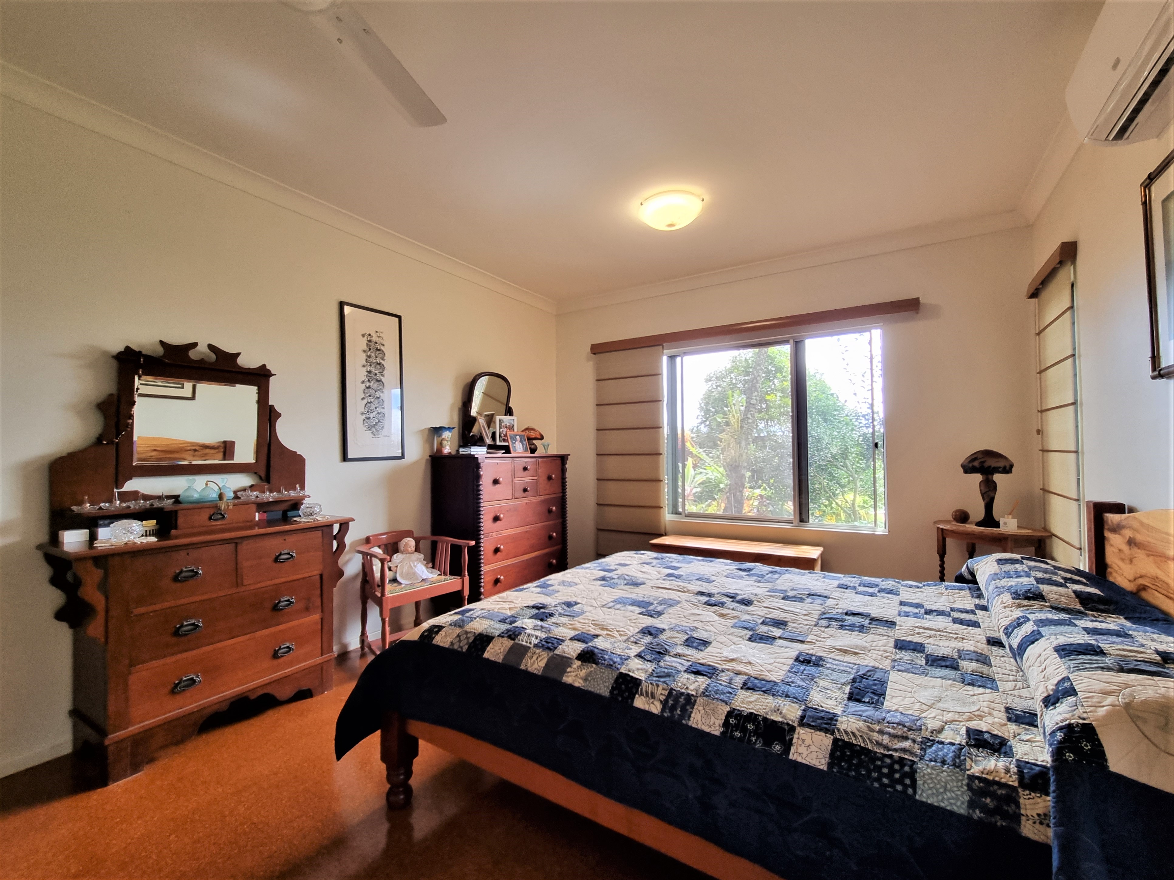 The master suite includes garden views, a walk in robe, air conditioning and an ensuite.