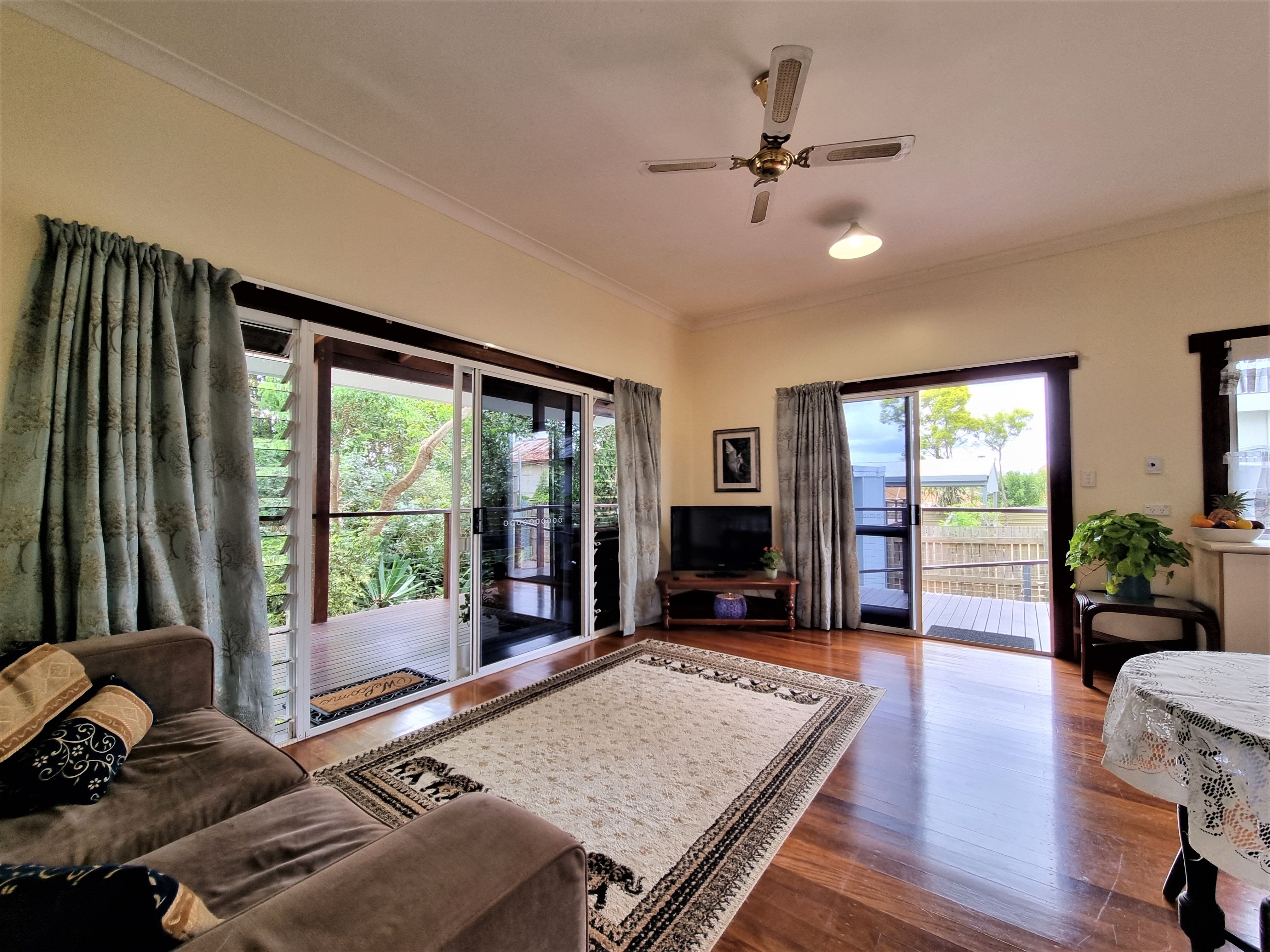 Stroll along the beautiful timber deck where you can relax and entertain, and enter the abode through glass sliding doors where you will find a spacious lounge room with polished timber flooring.