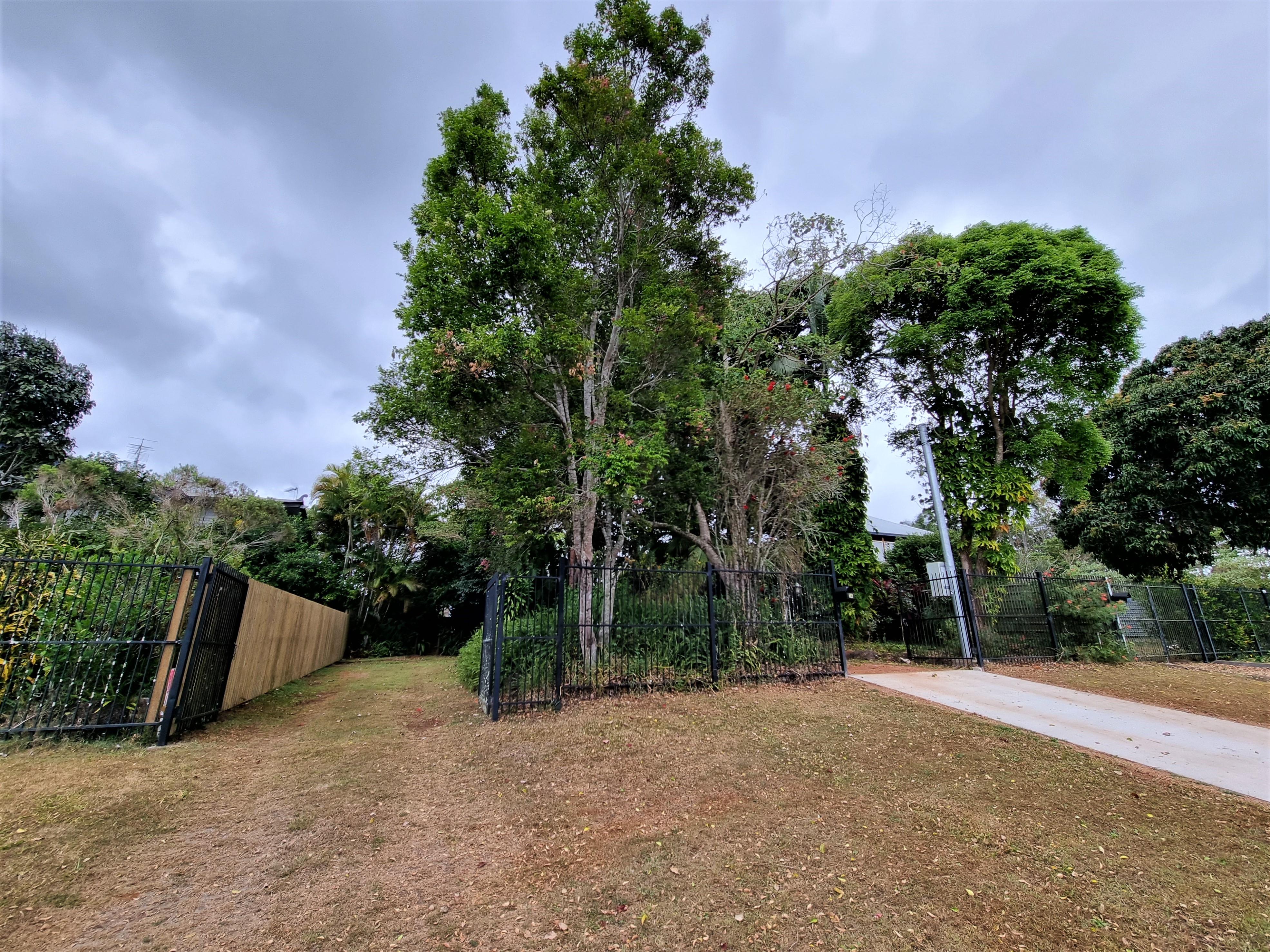 The fully fenced block has twin drive ways and wrought iron gates at the front.