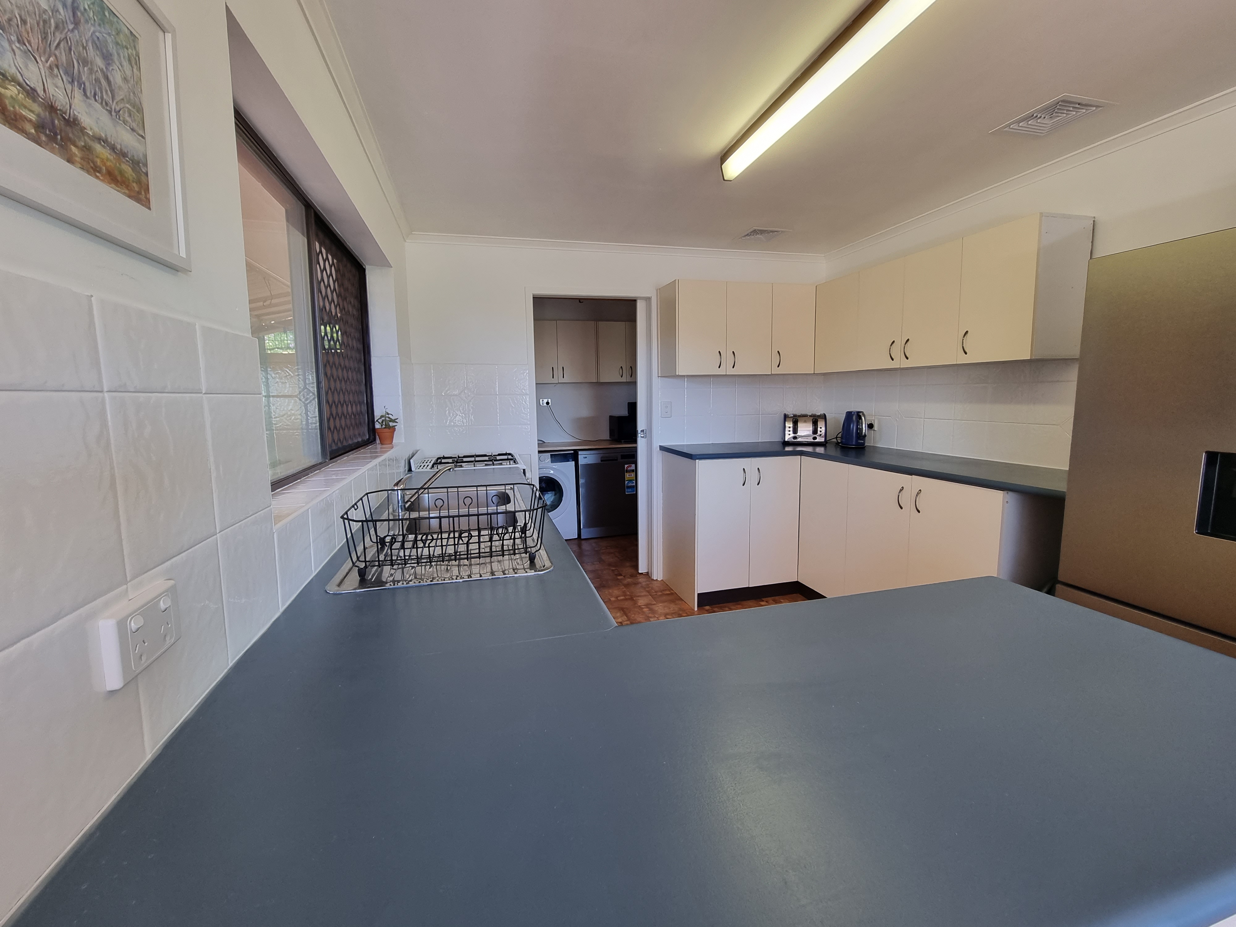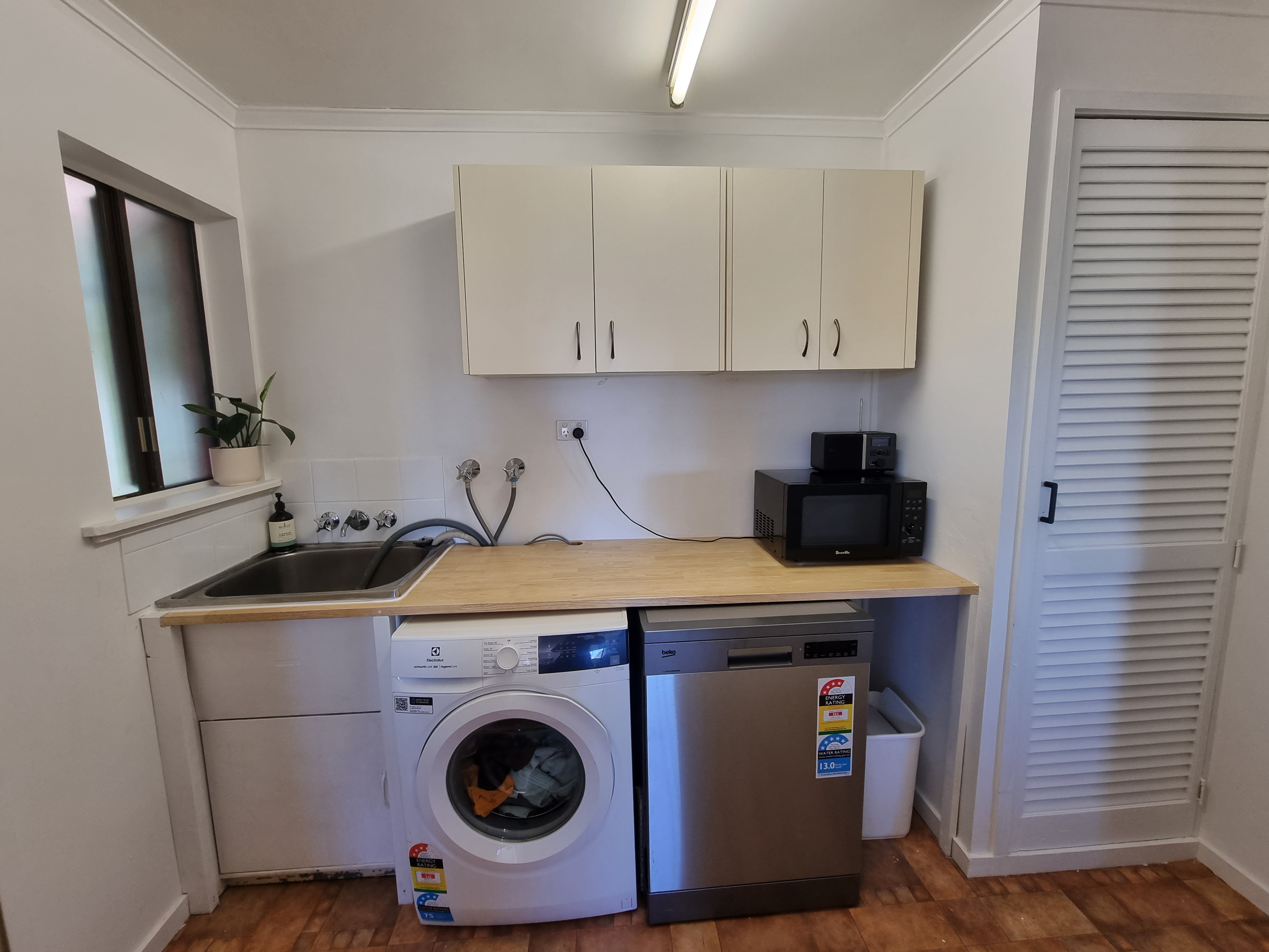 Kitchen areas boasts high bench tops with plenty of storage and a large fridge space.