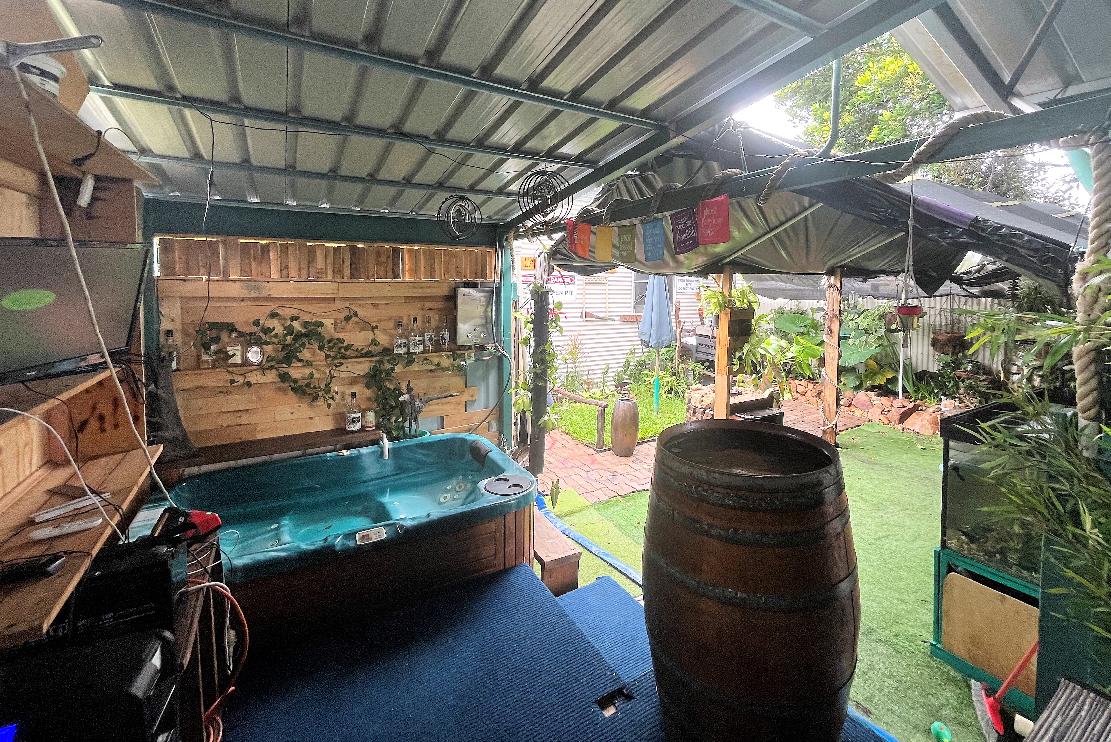 - Rear veranda/BBQ area with shade blinds, spa and water feature