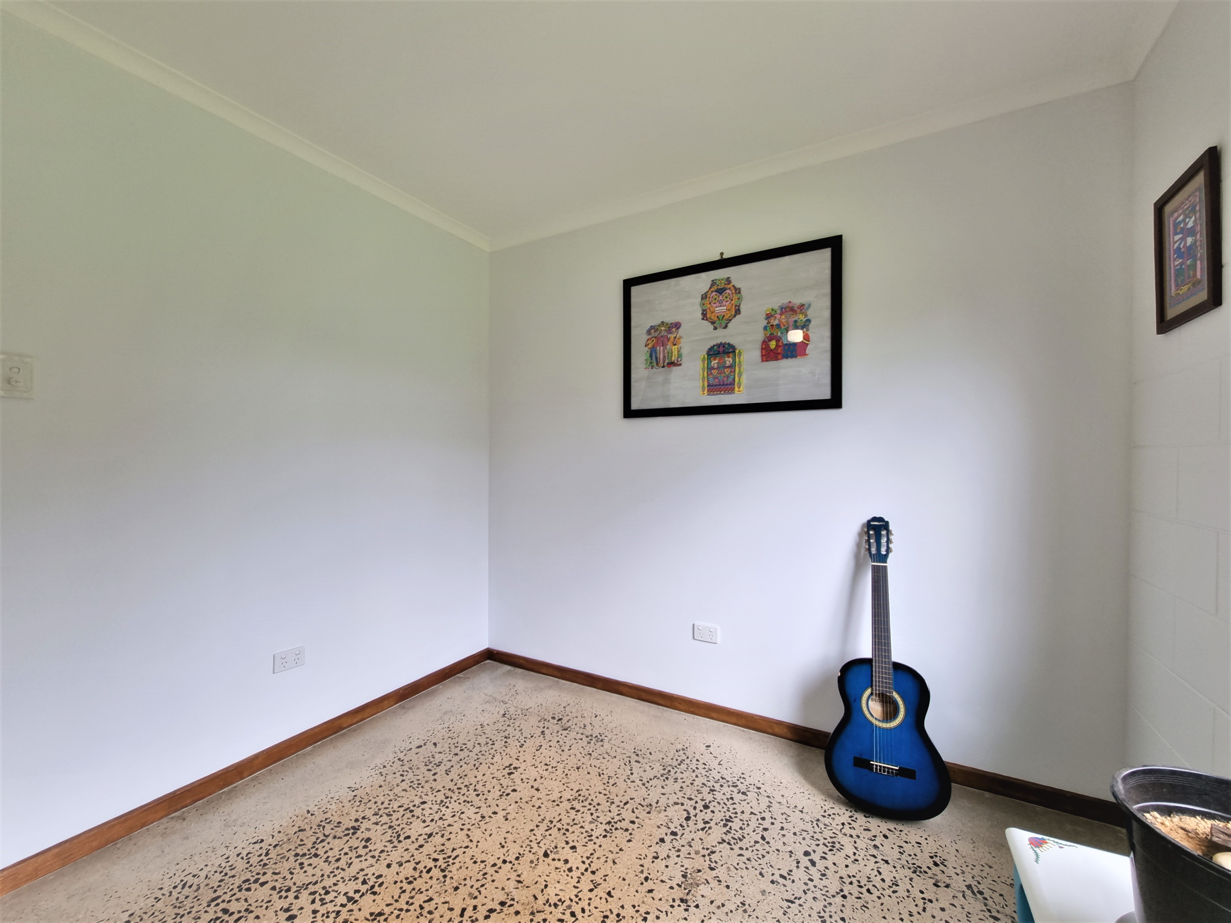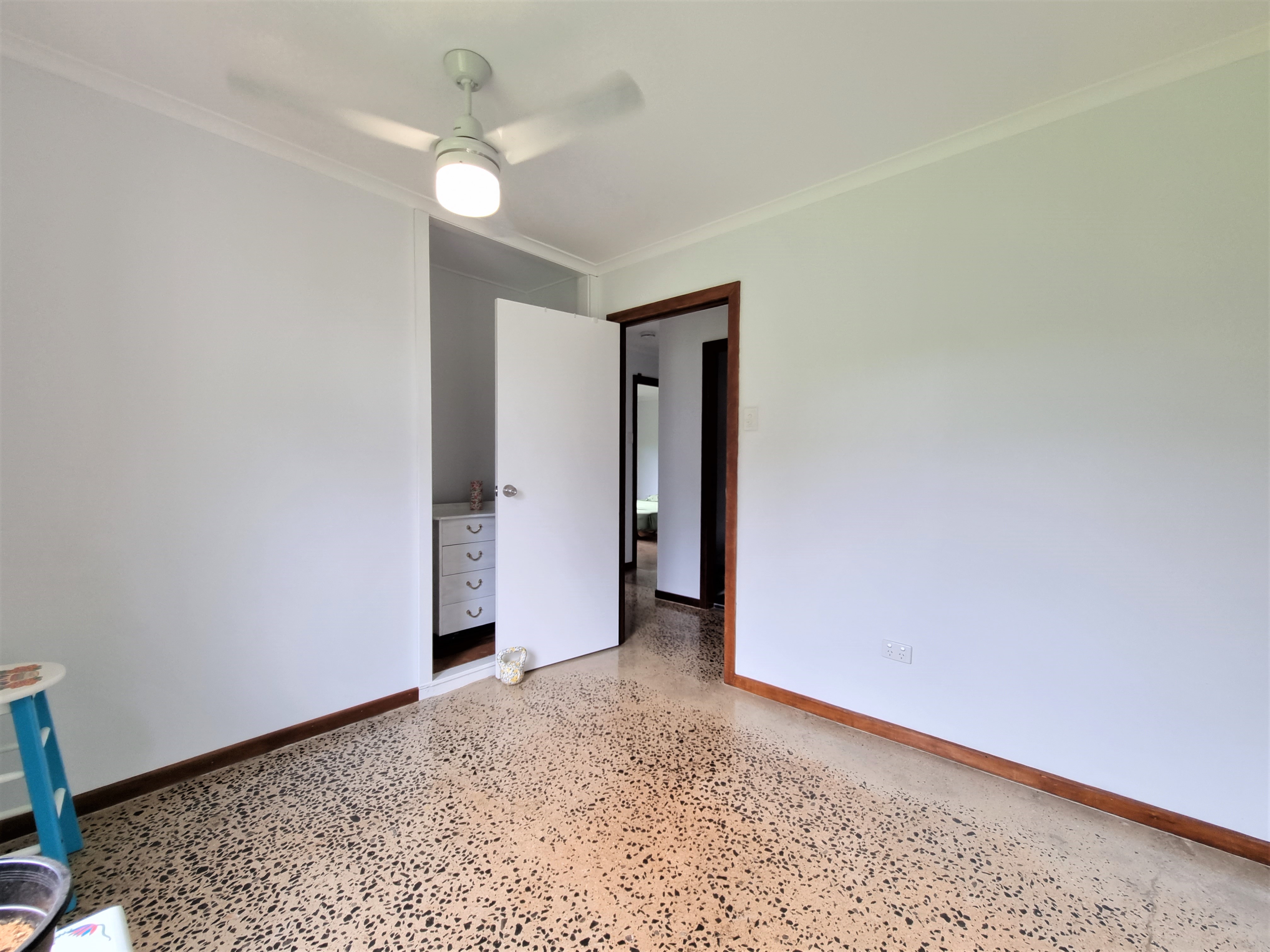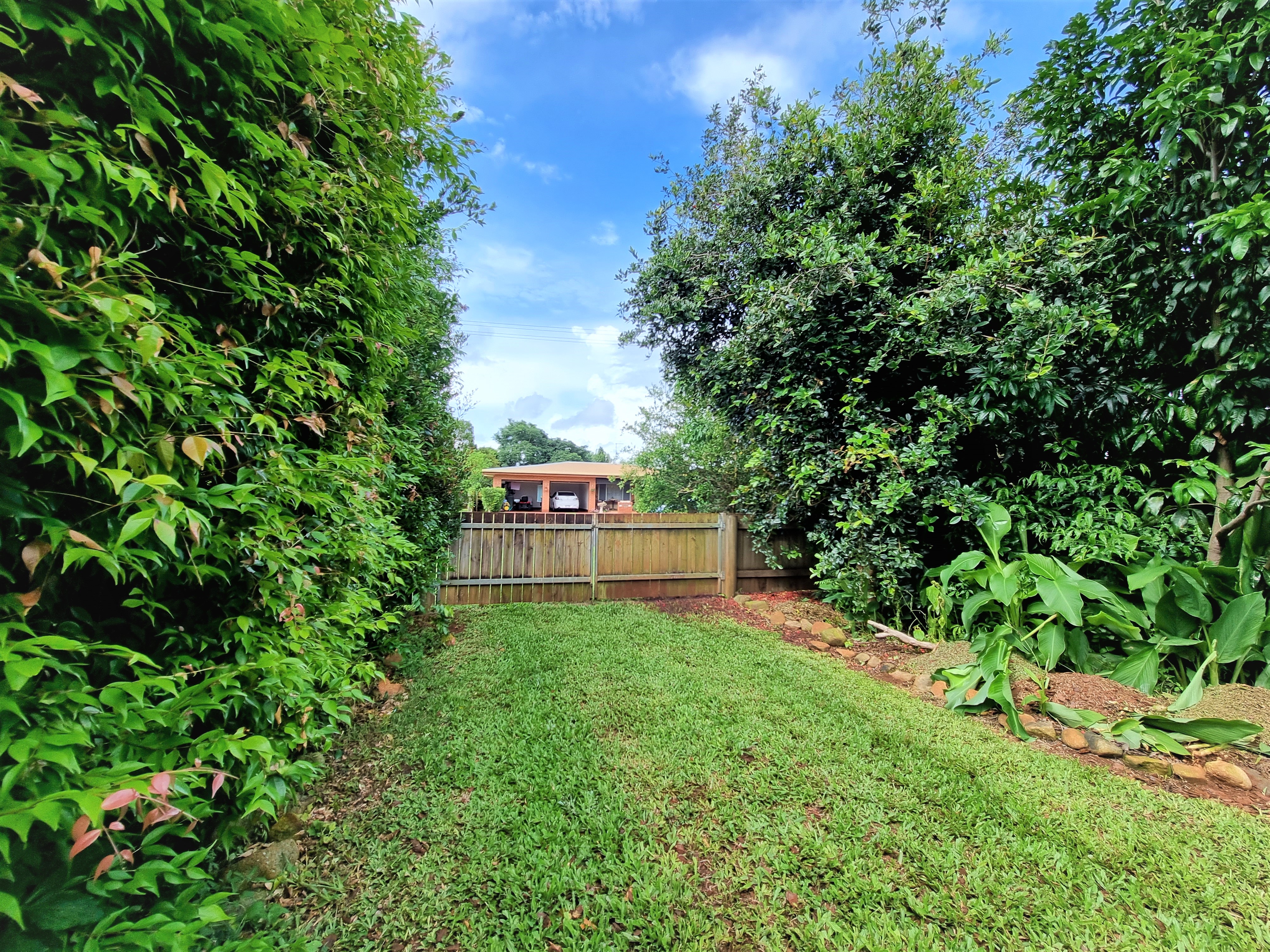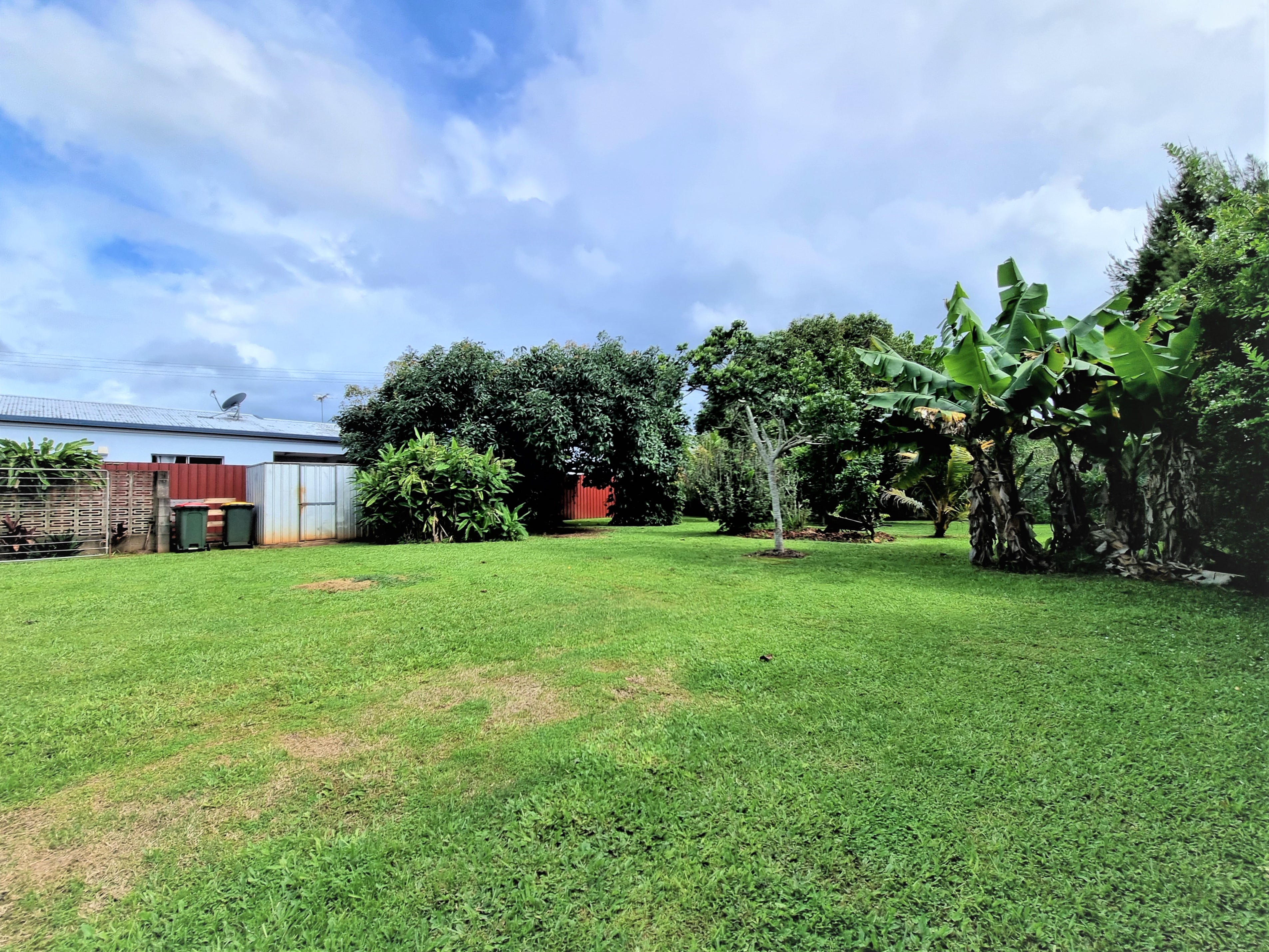 There is a double length garage and storage room running the length of the home flowing through to the established fenced back yard, where you will find avacado, banana, and citrus trees.