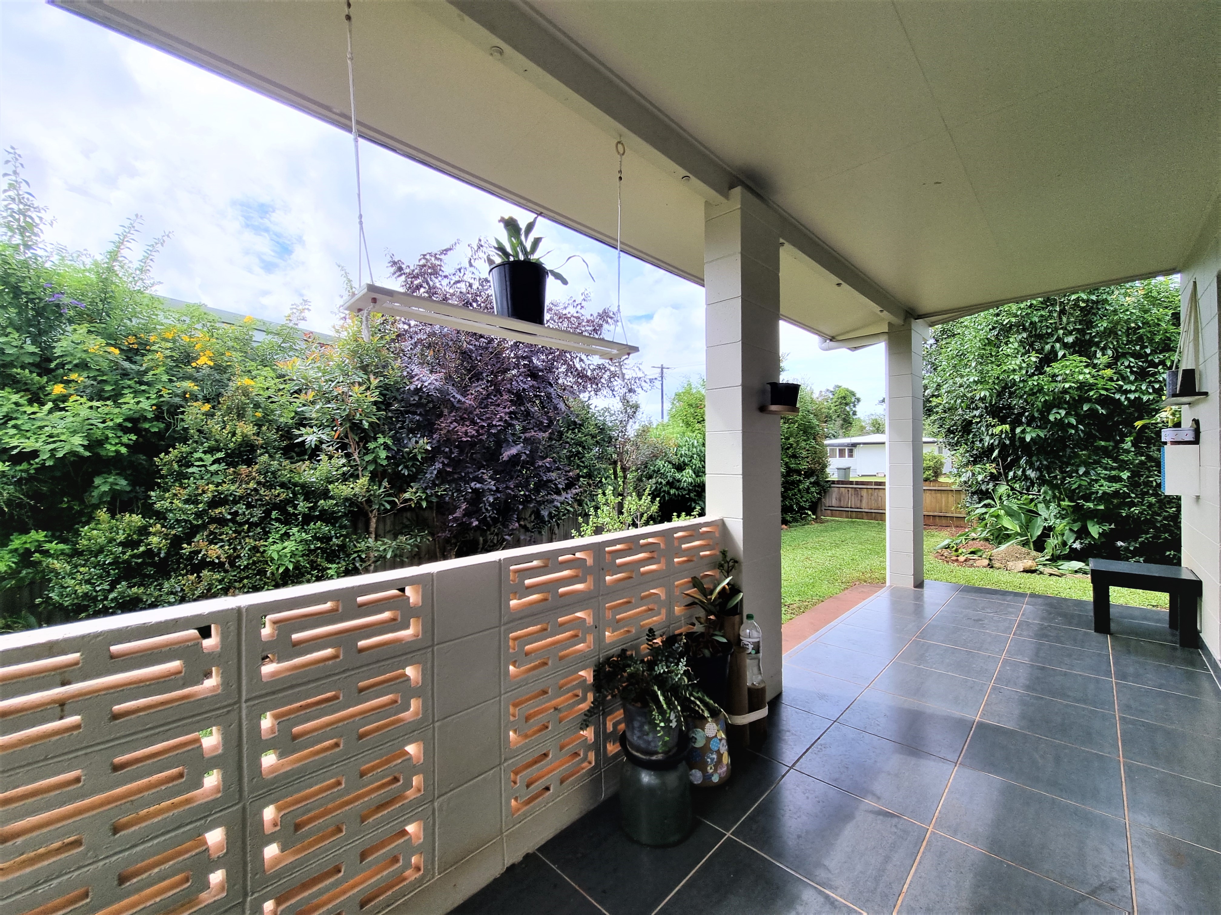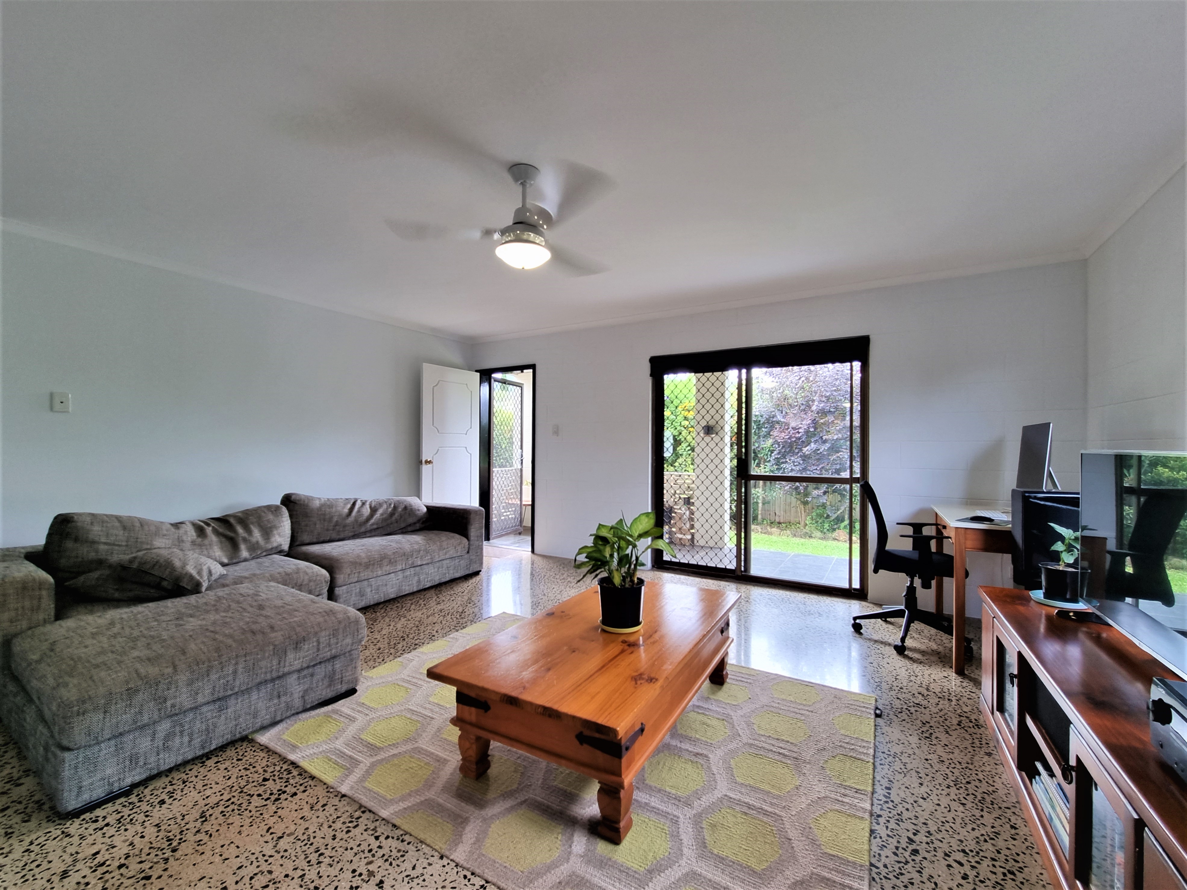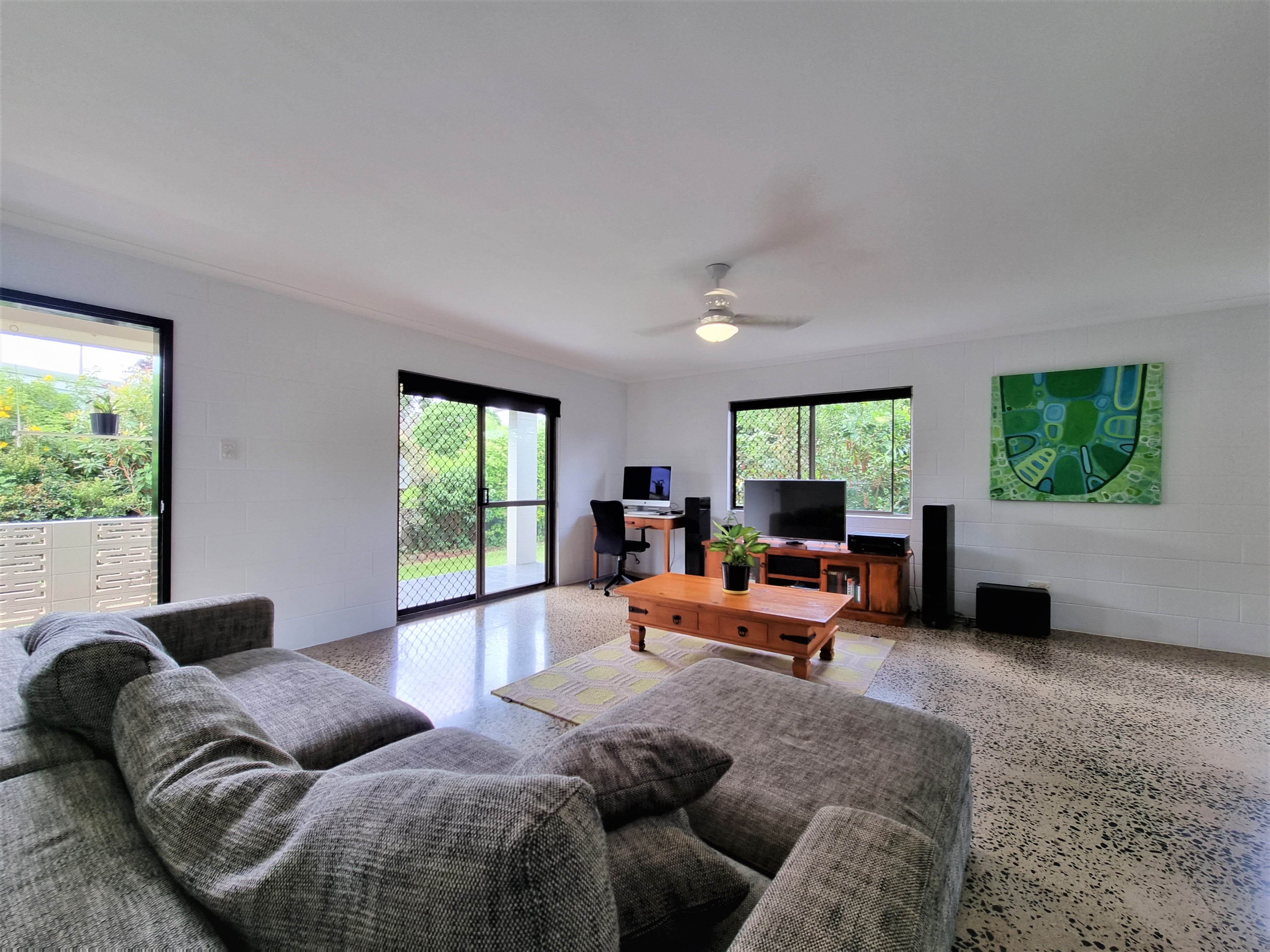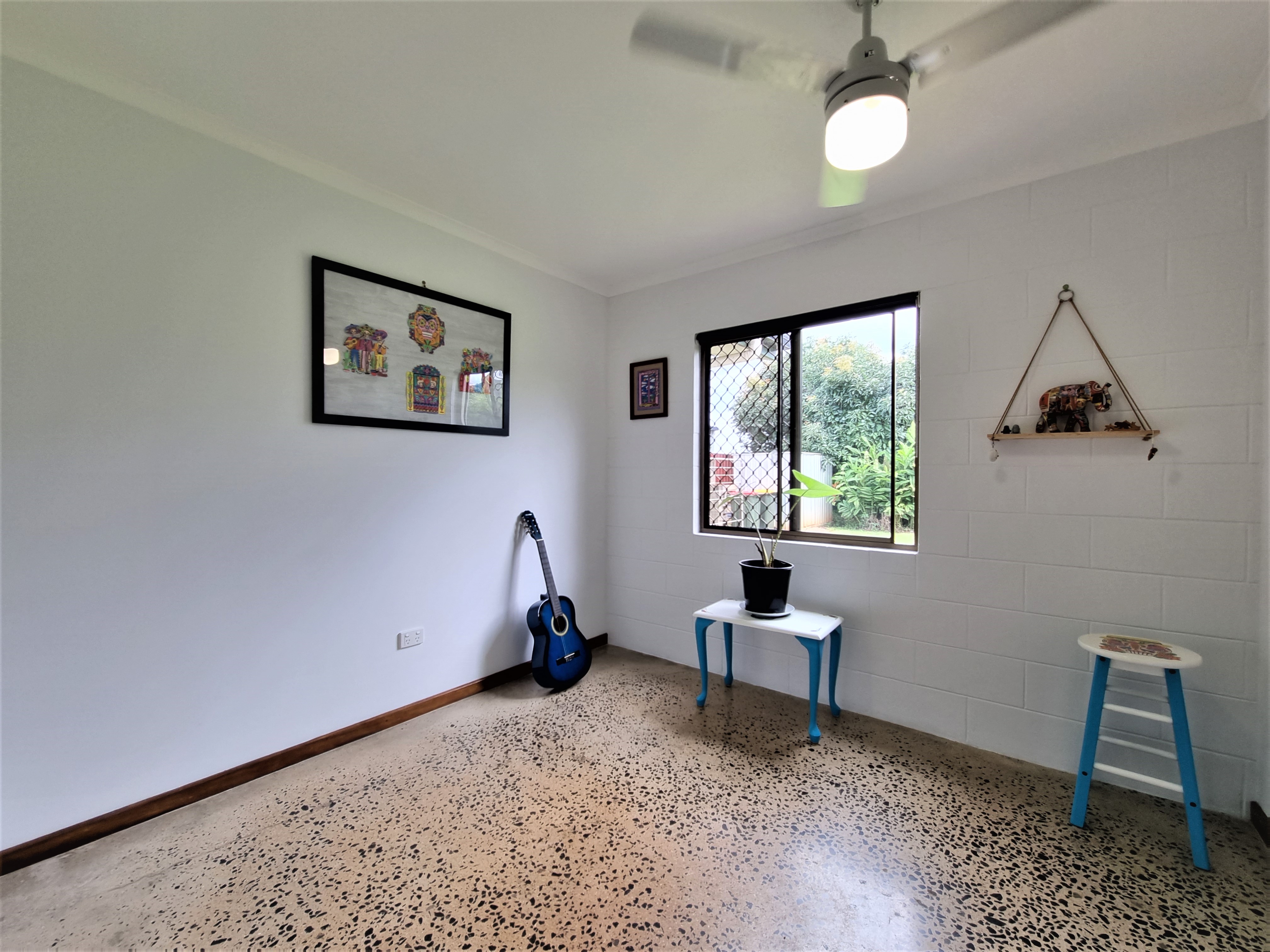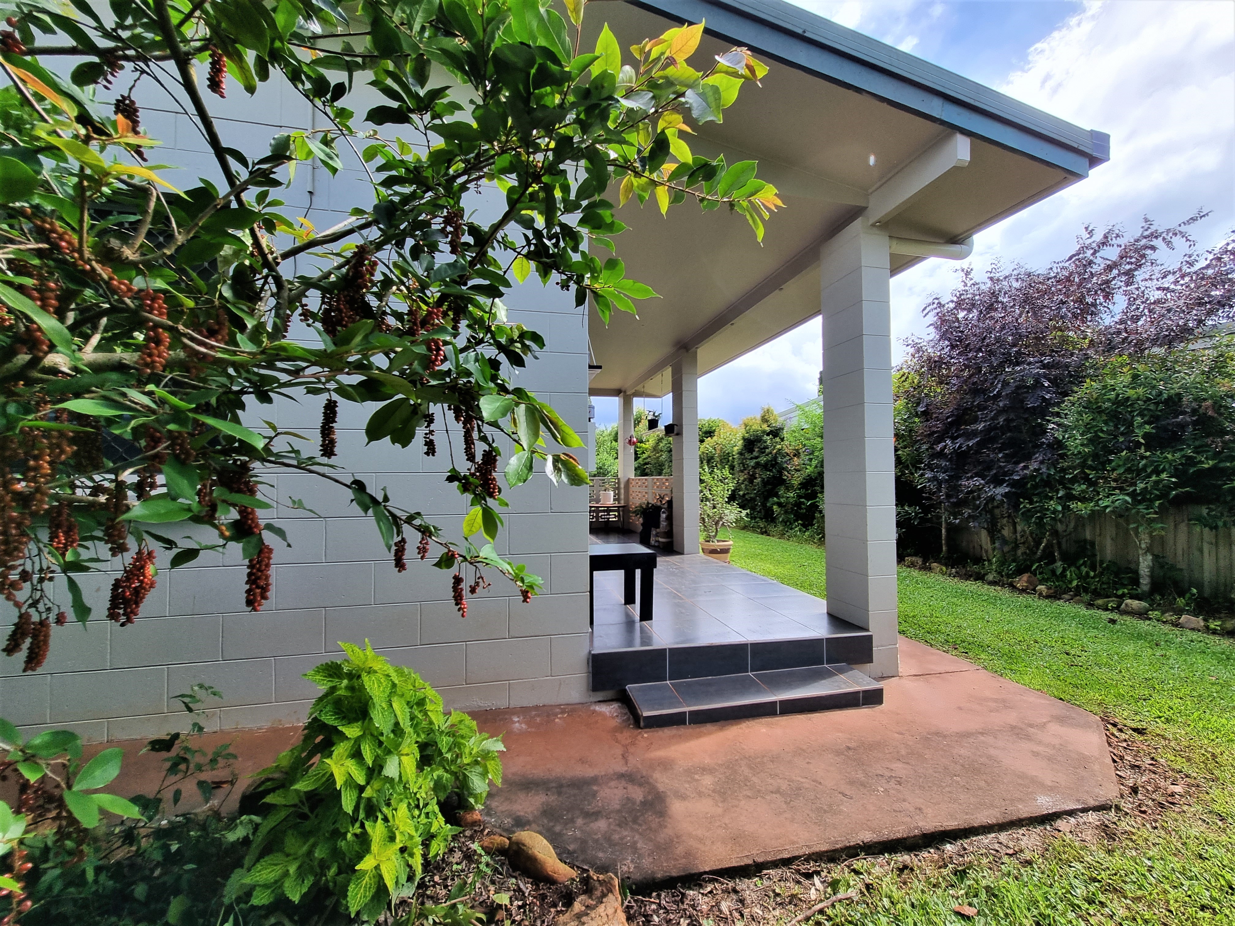 There is a double length garage and storage room running the length of the home flowing through to the established fenced back yard, where you will find avacado, banana, and citrus trees.