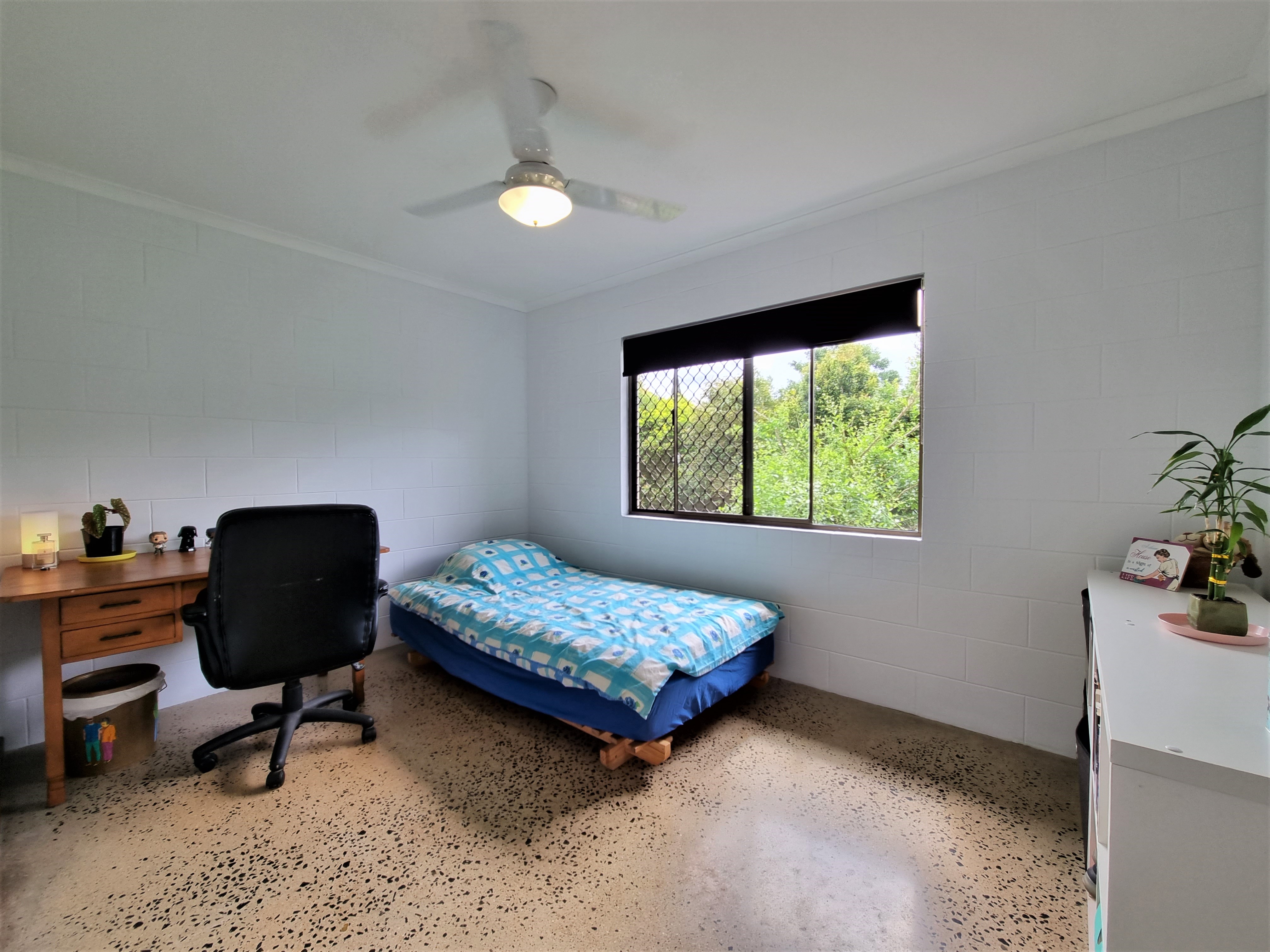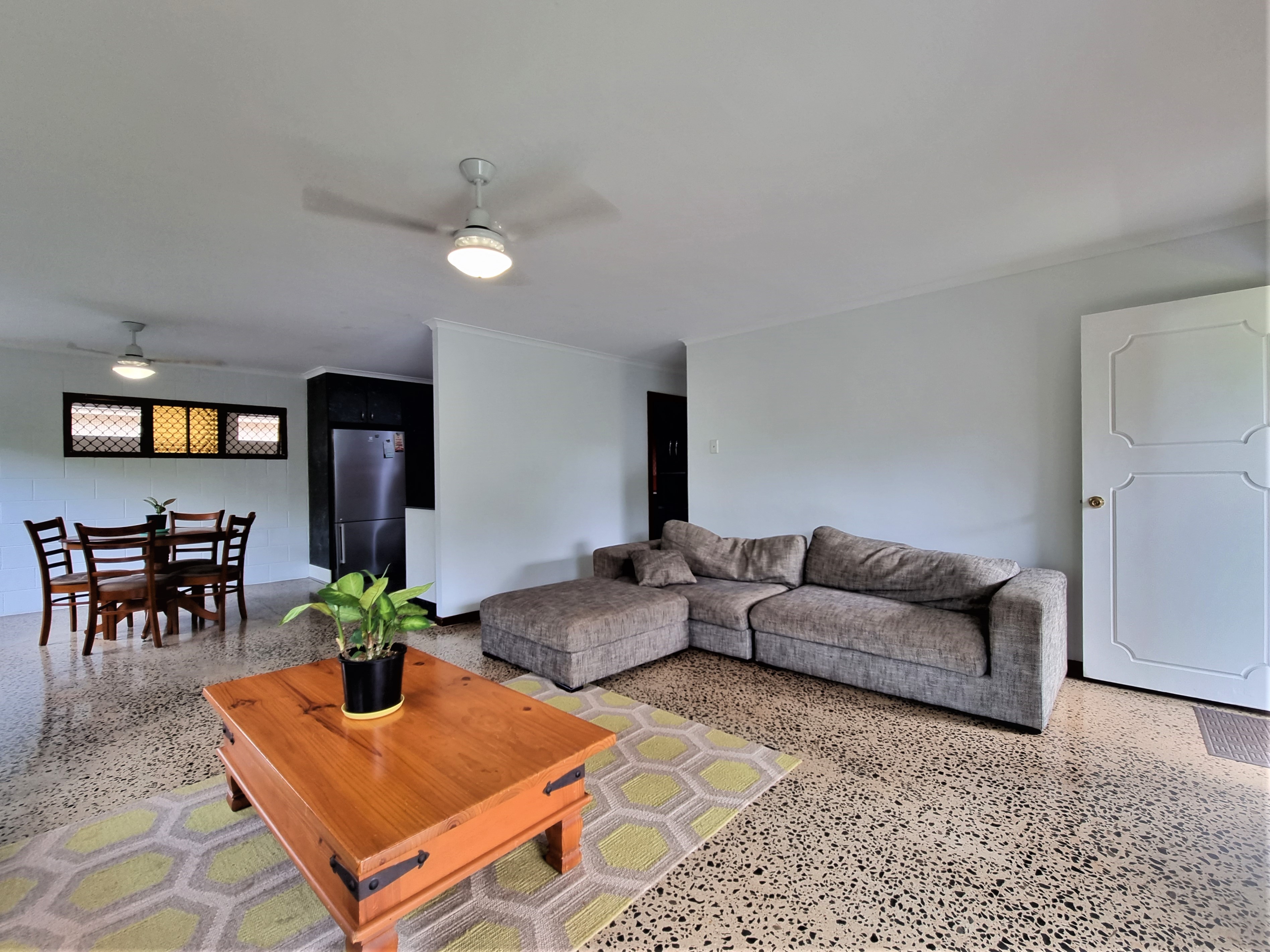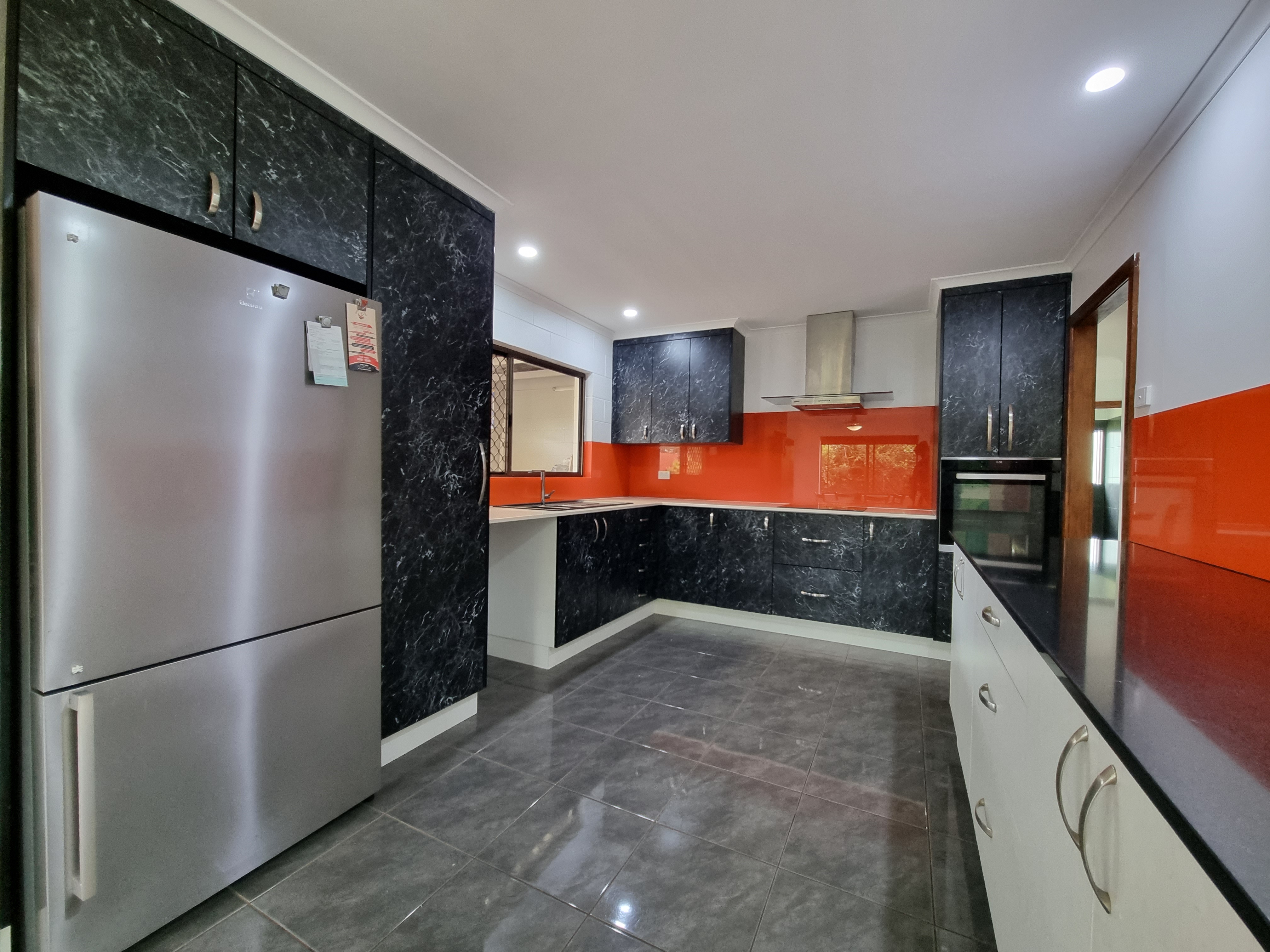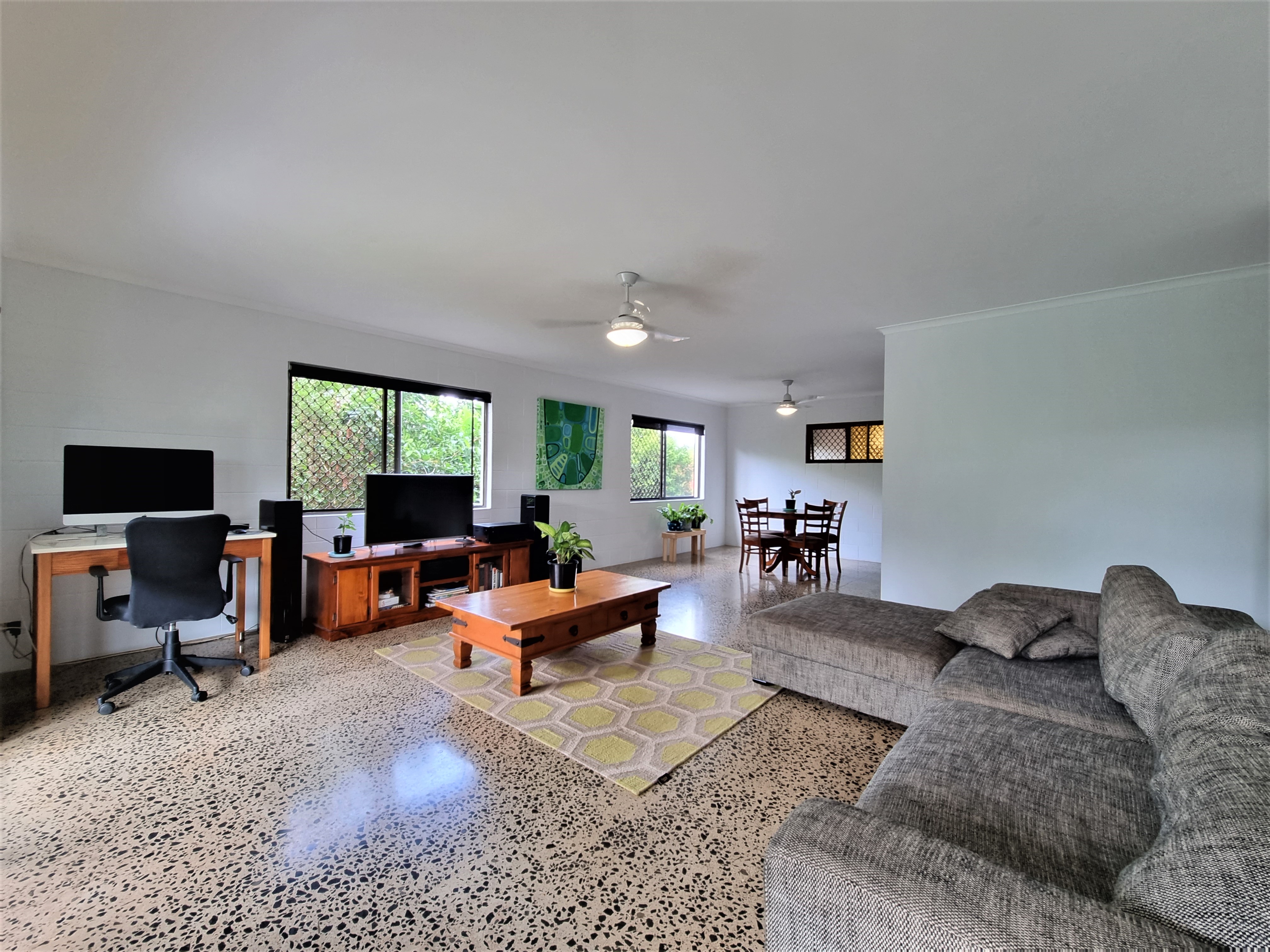 There is a double length garage and storage room running the length of the home flowing through to the established fenced back yard, where you will find avacado, banana, and citrus trees.