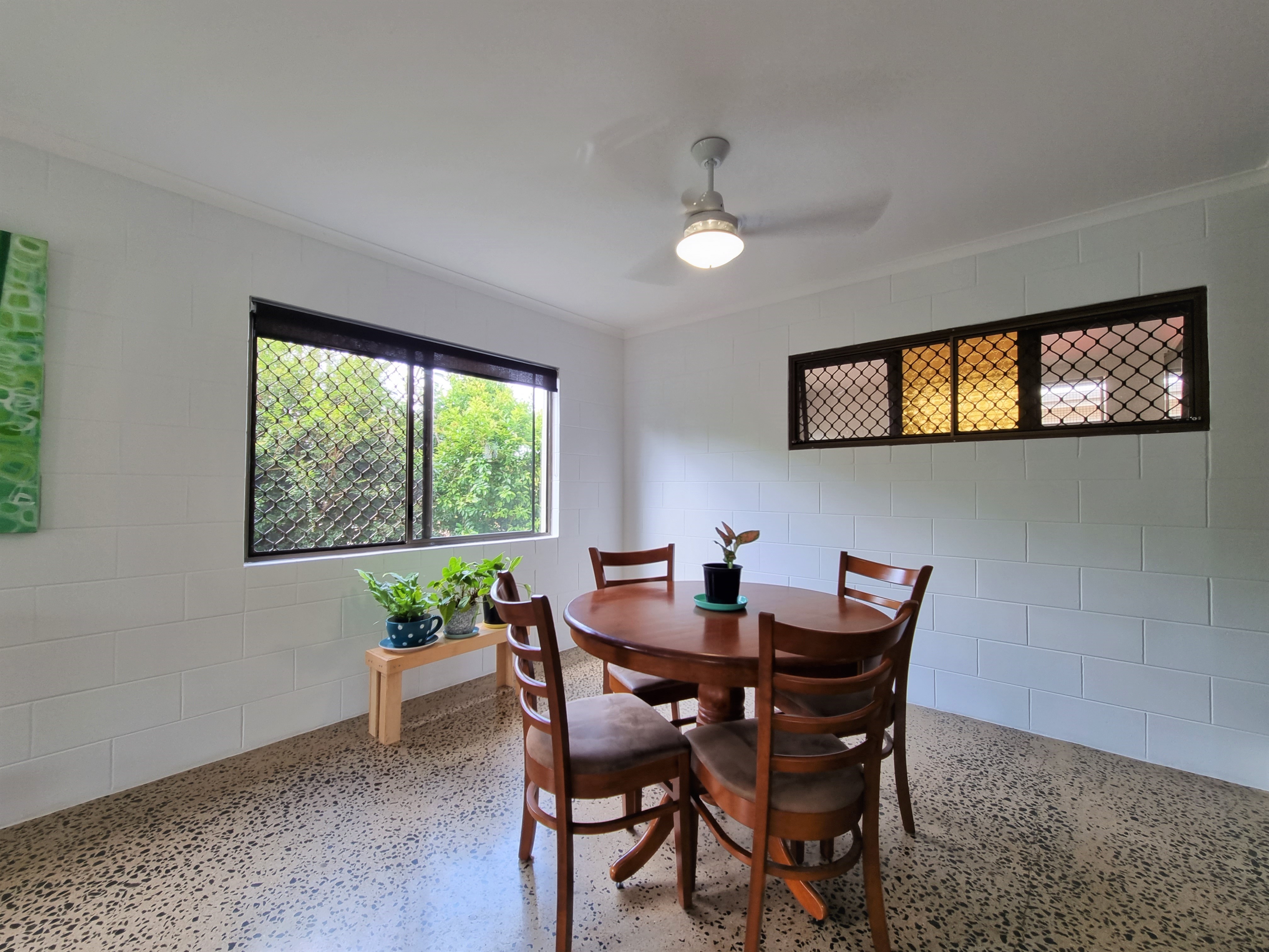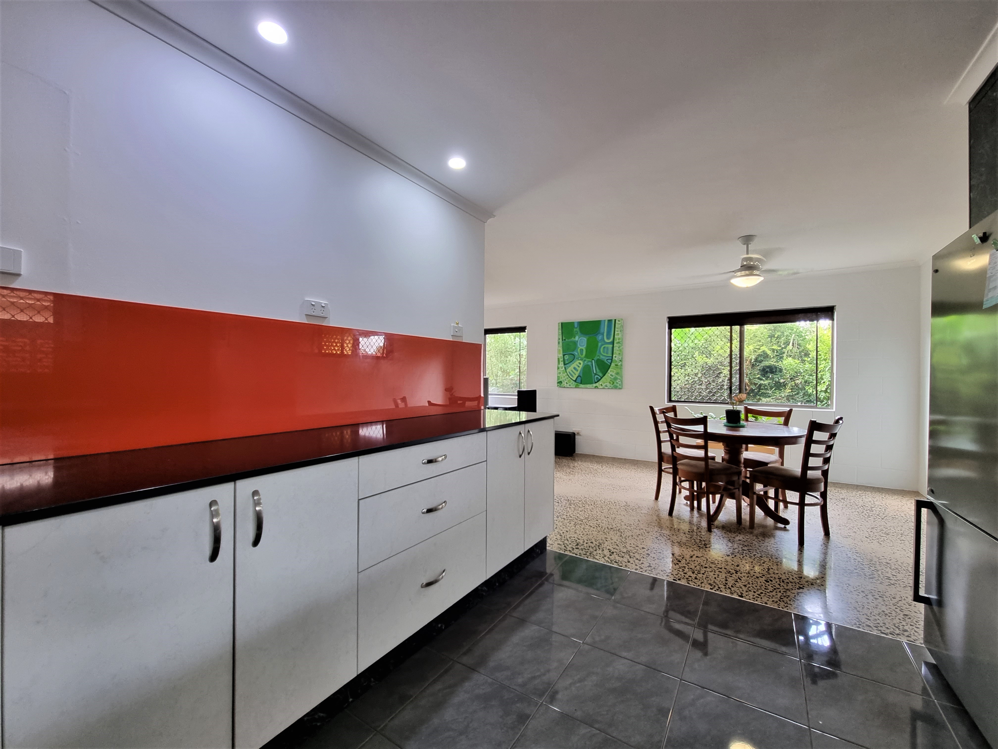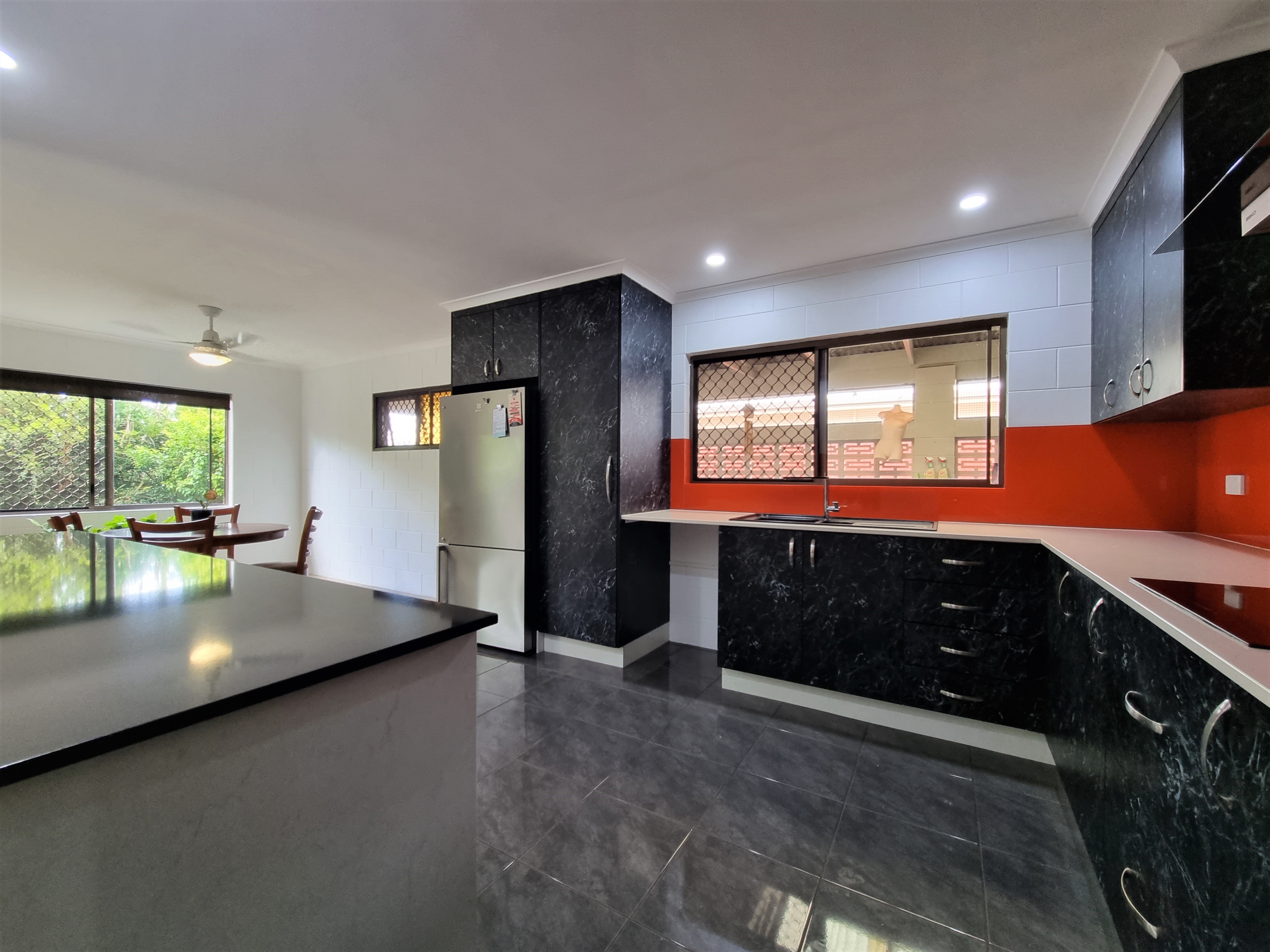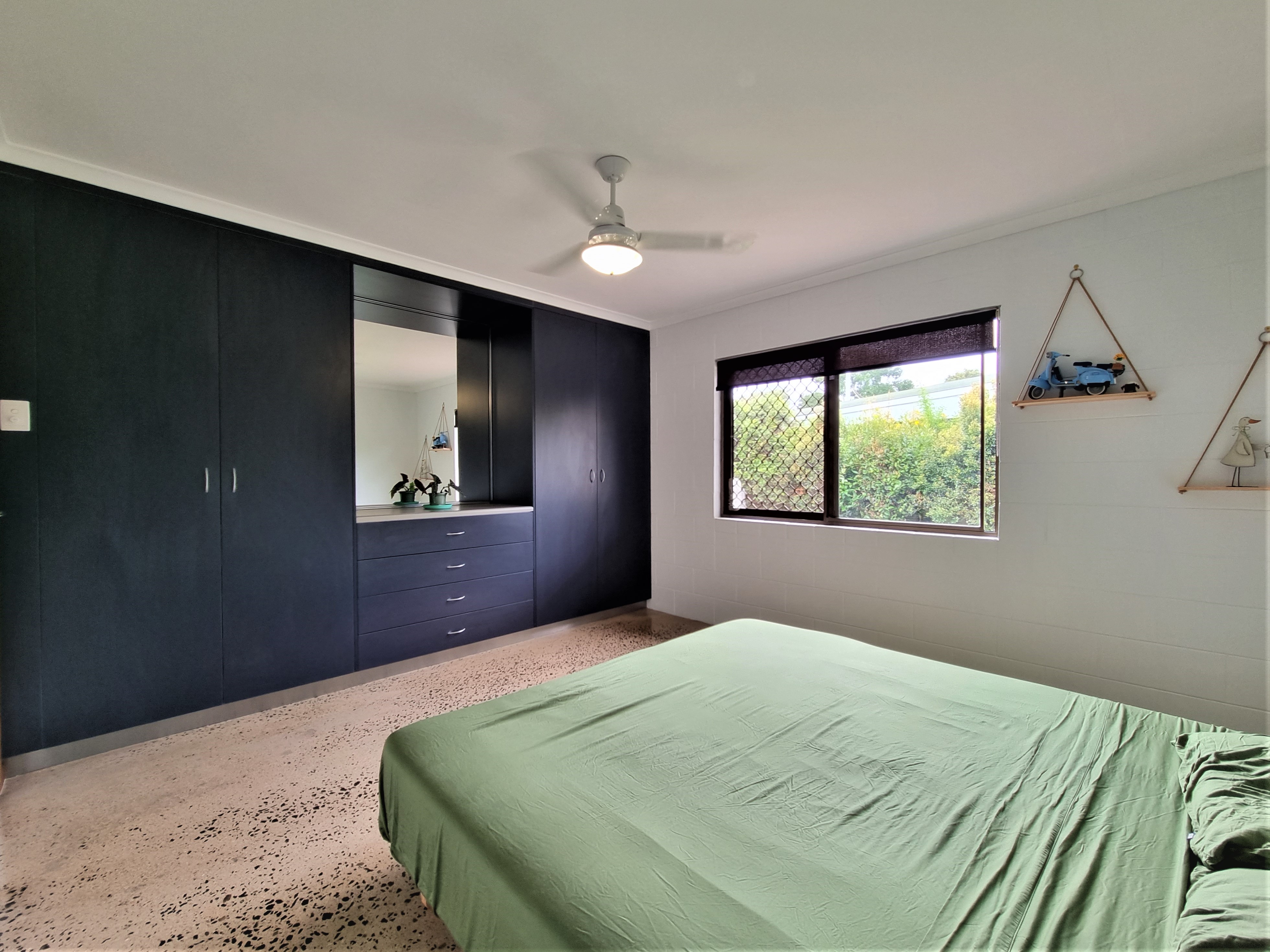 There is a double length garage and storage room running the length of the home flowing through to the established fenced back yard, where you will find avacado, banana, and citrus trees.