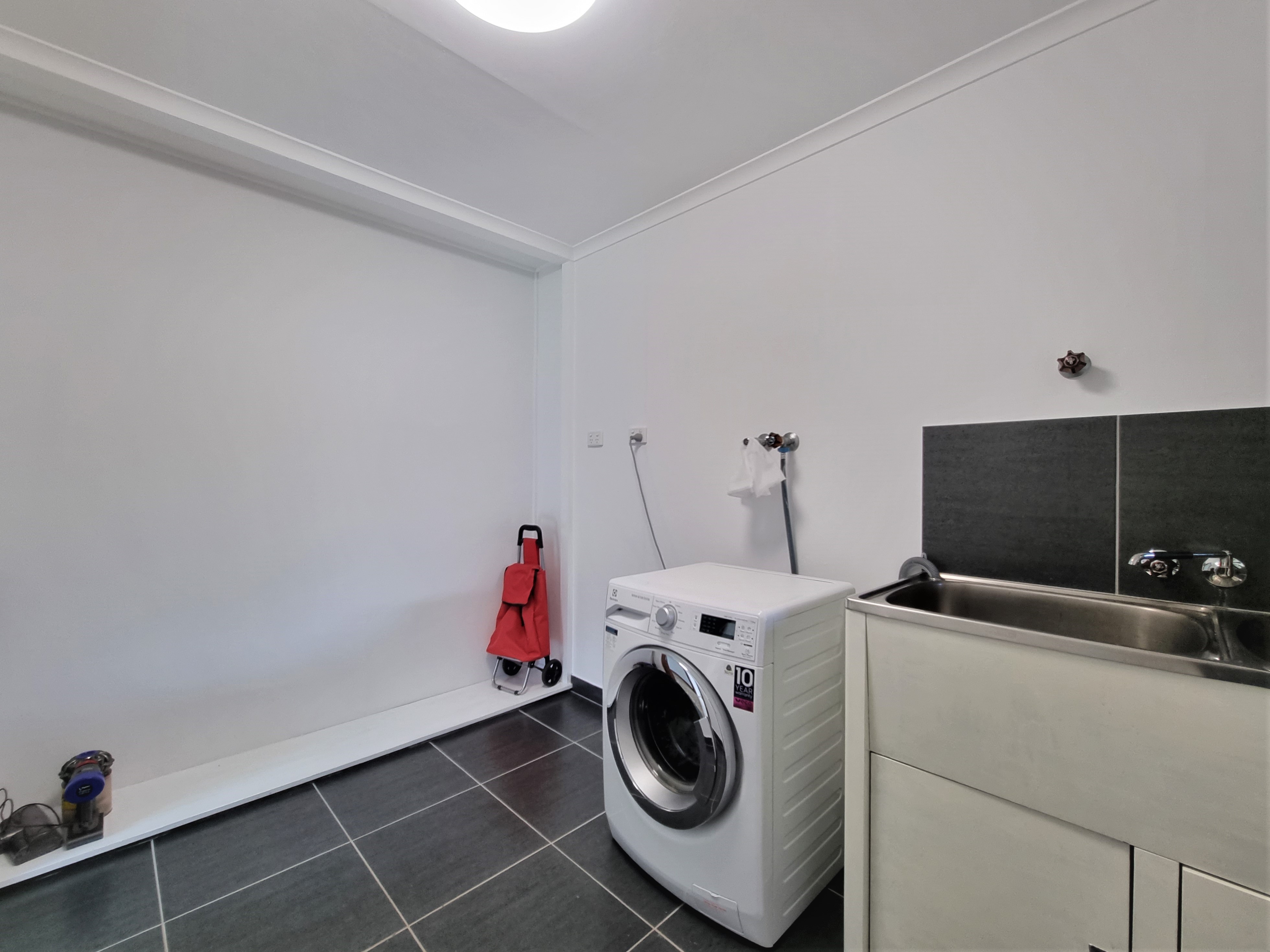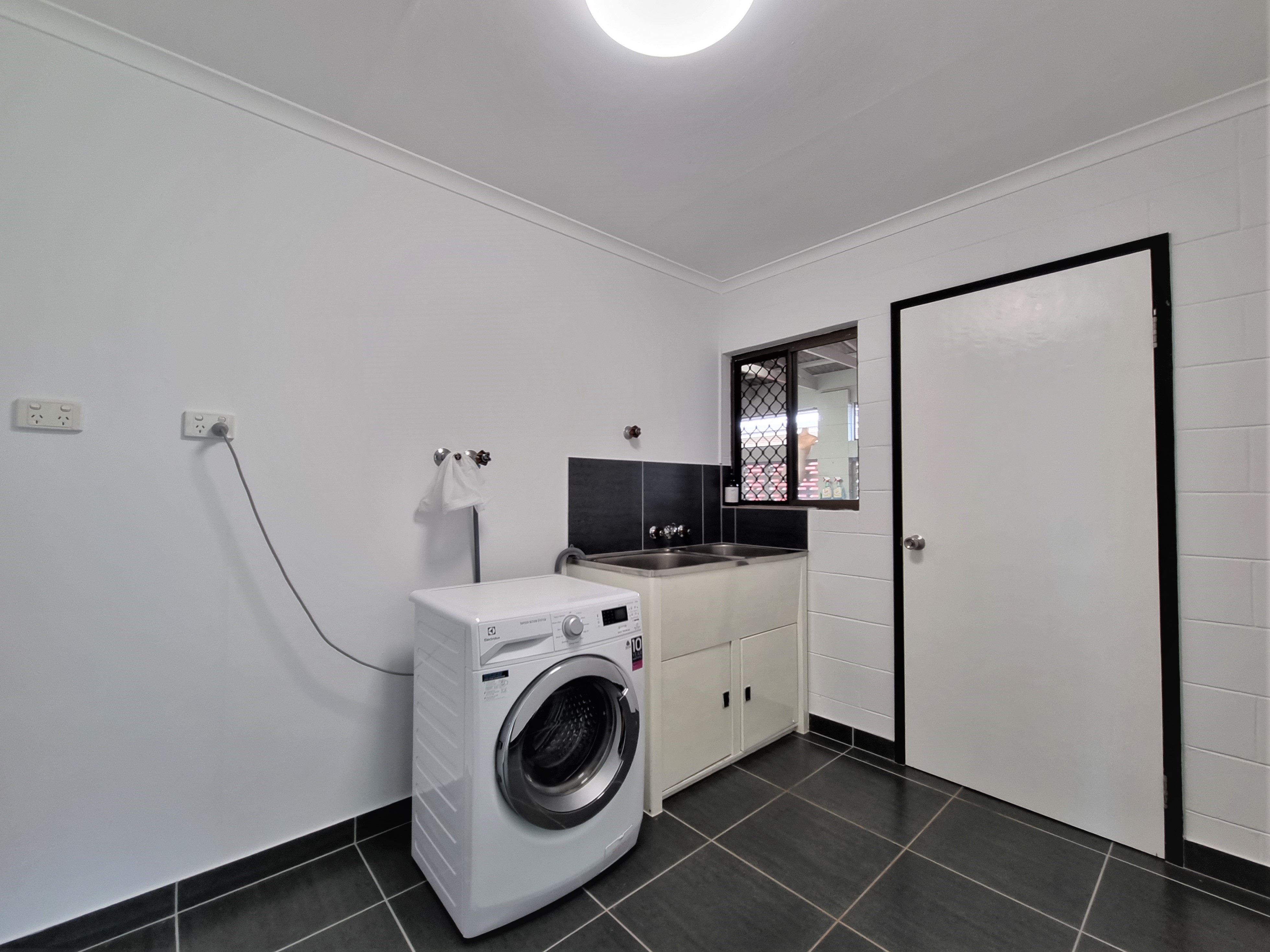 The laundry has been tastefully renovated with new tiles and scope to build a cupboard in.