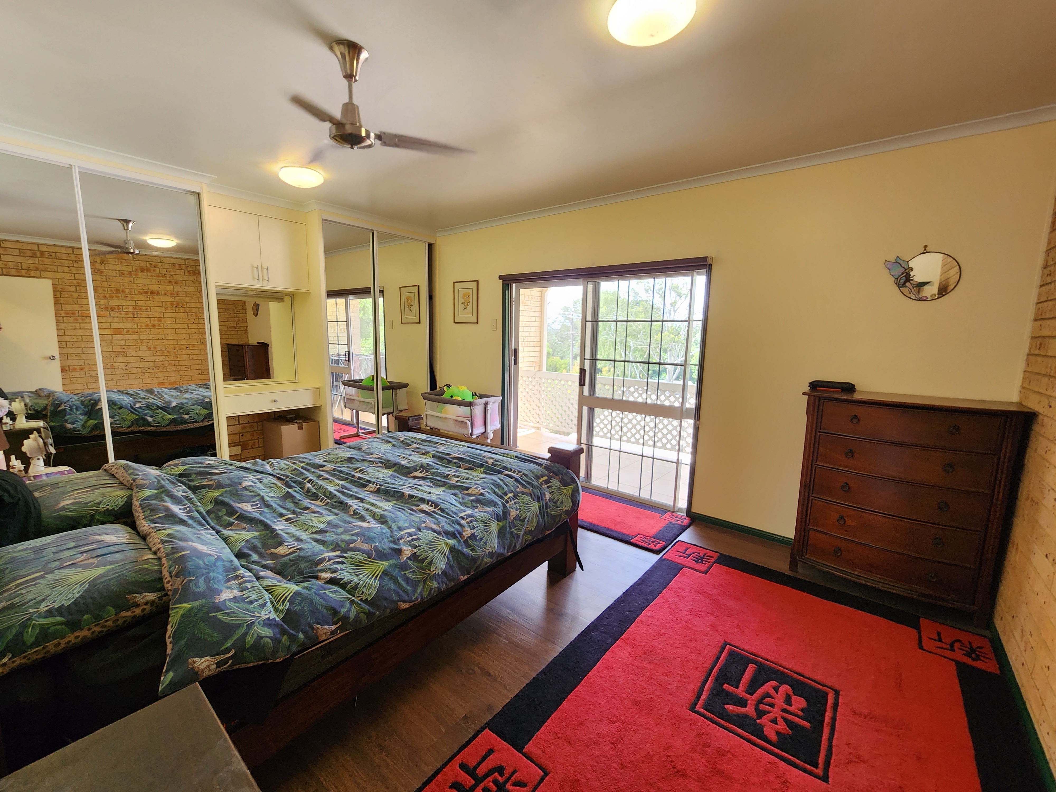 • Master bedroom with built ins, makeup bench and private balcony with views