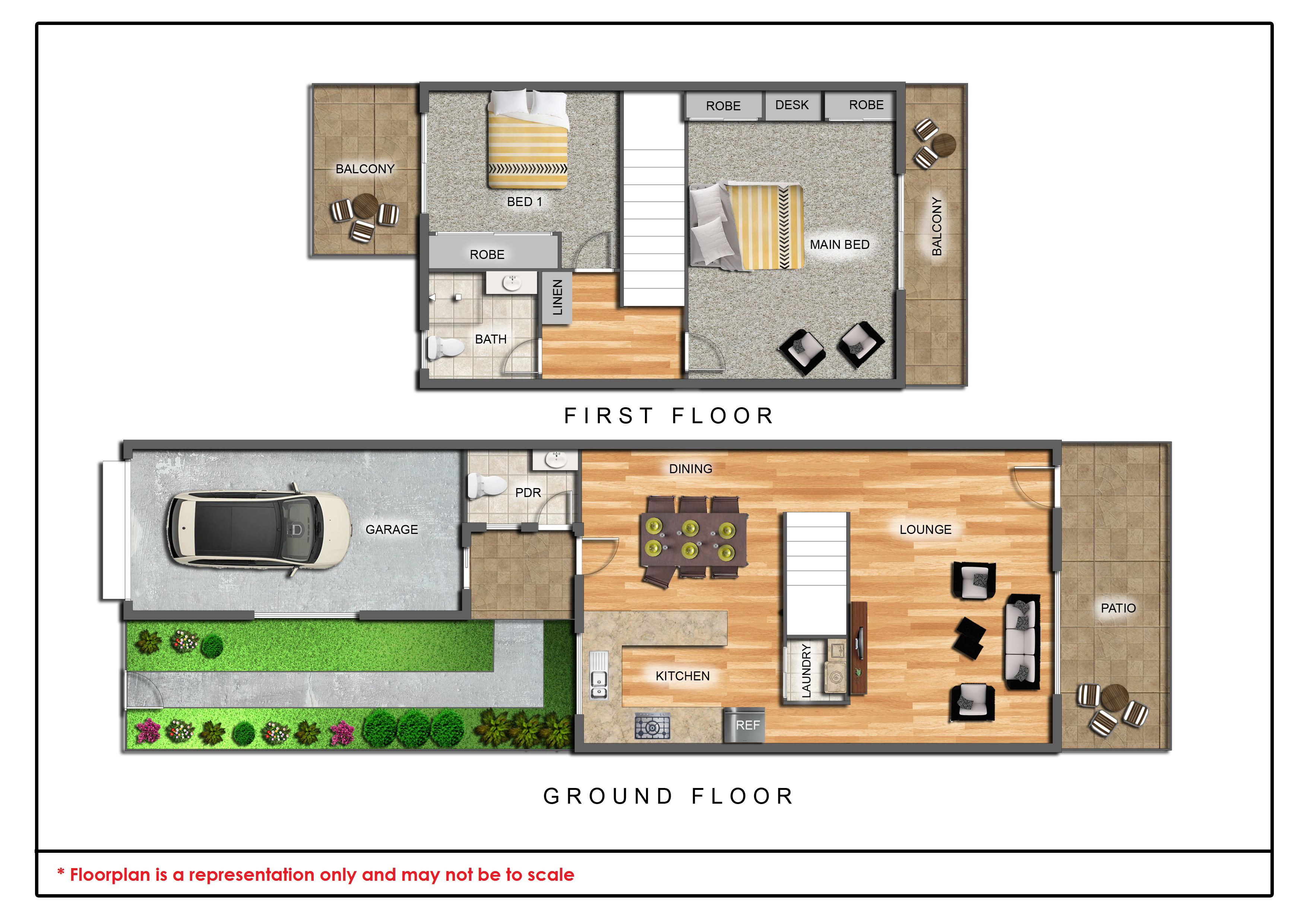 Located a moments’ walk from Woolworths, schools, parks the Main Street and the Hospital a property could not get much more convenient. The address is a surprisingly spacious and liveable upstairs downstairs unit with loads of living space downstairs along with a private courtyard and lock up garage, while upstairs provides 2 large bedrooms, each with a private balcony and built in storage.