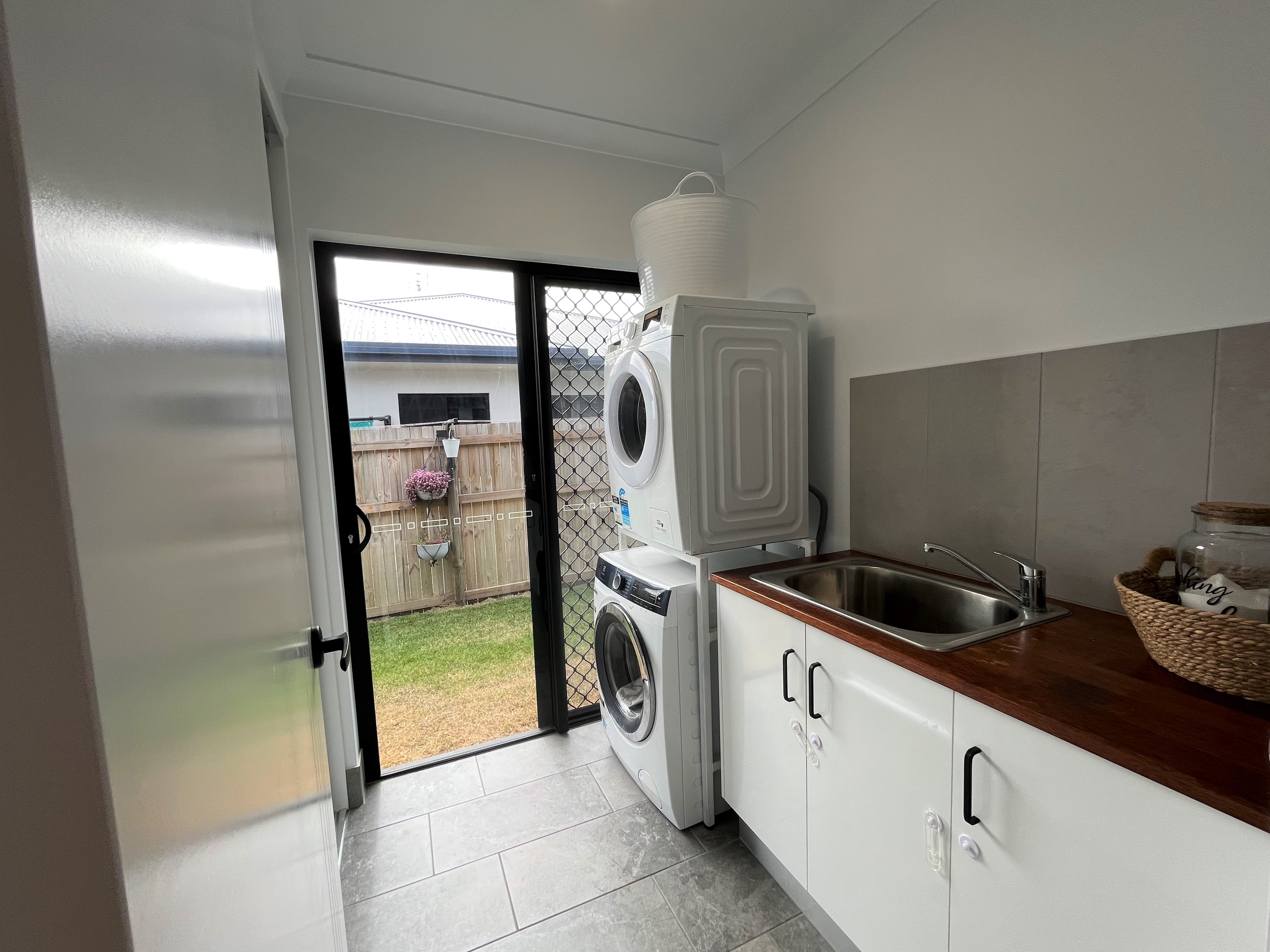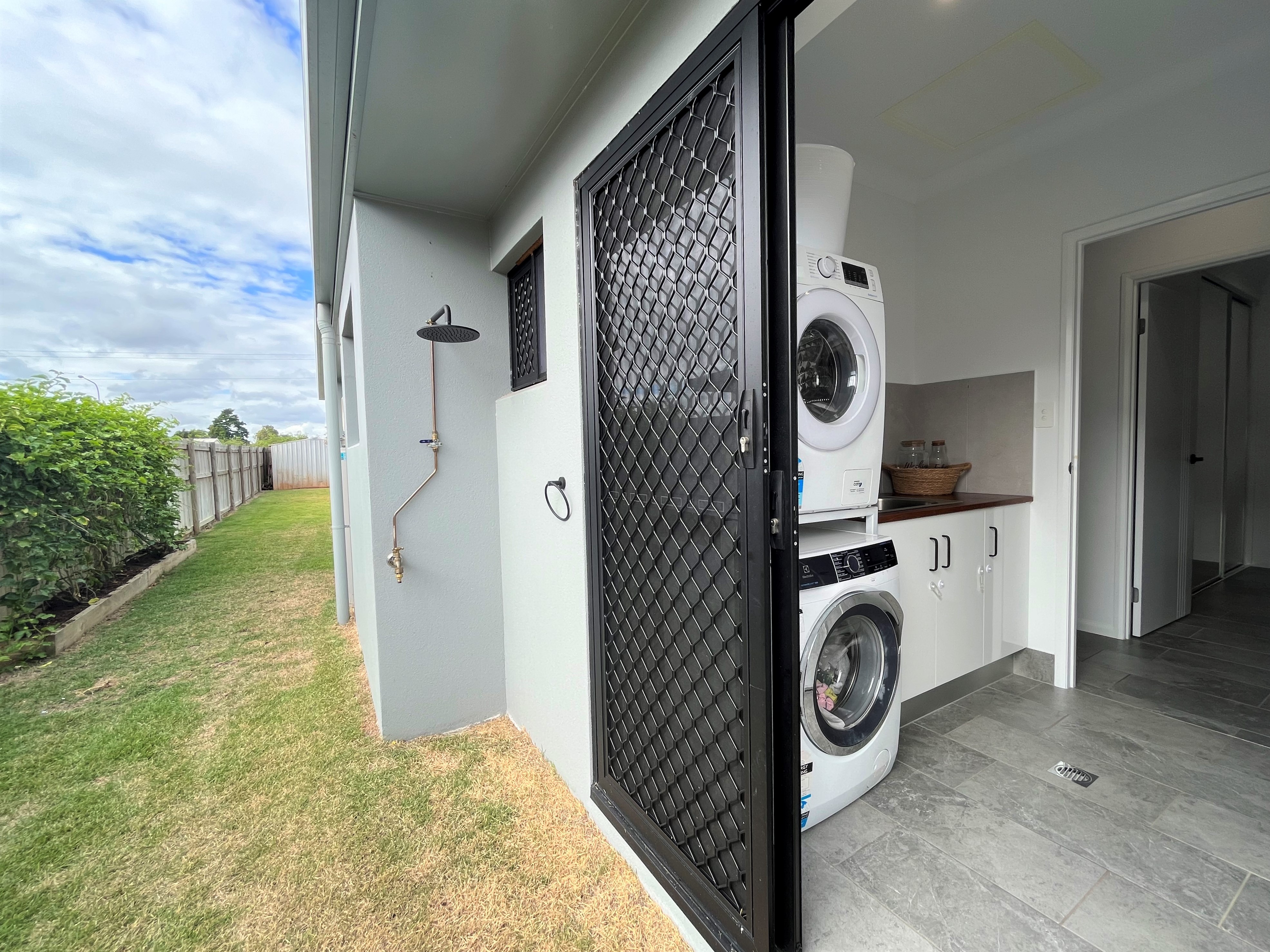 The laundry is located in the home with access to the outside shower, which is perfect for you to wash off after a day in the back yard.