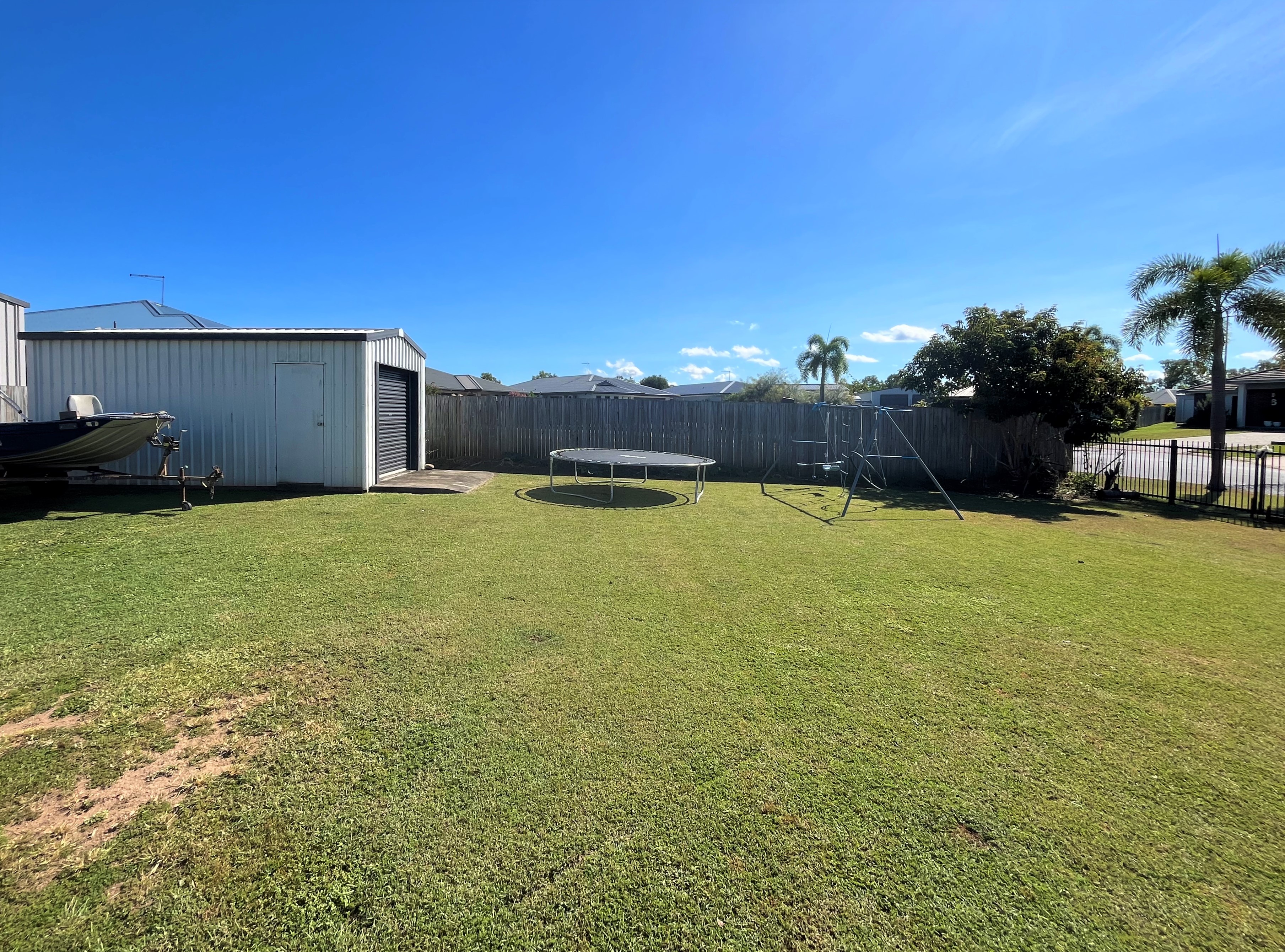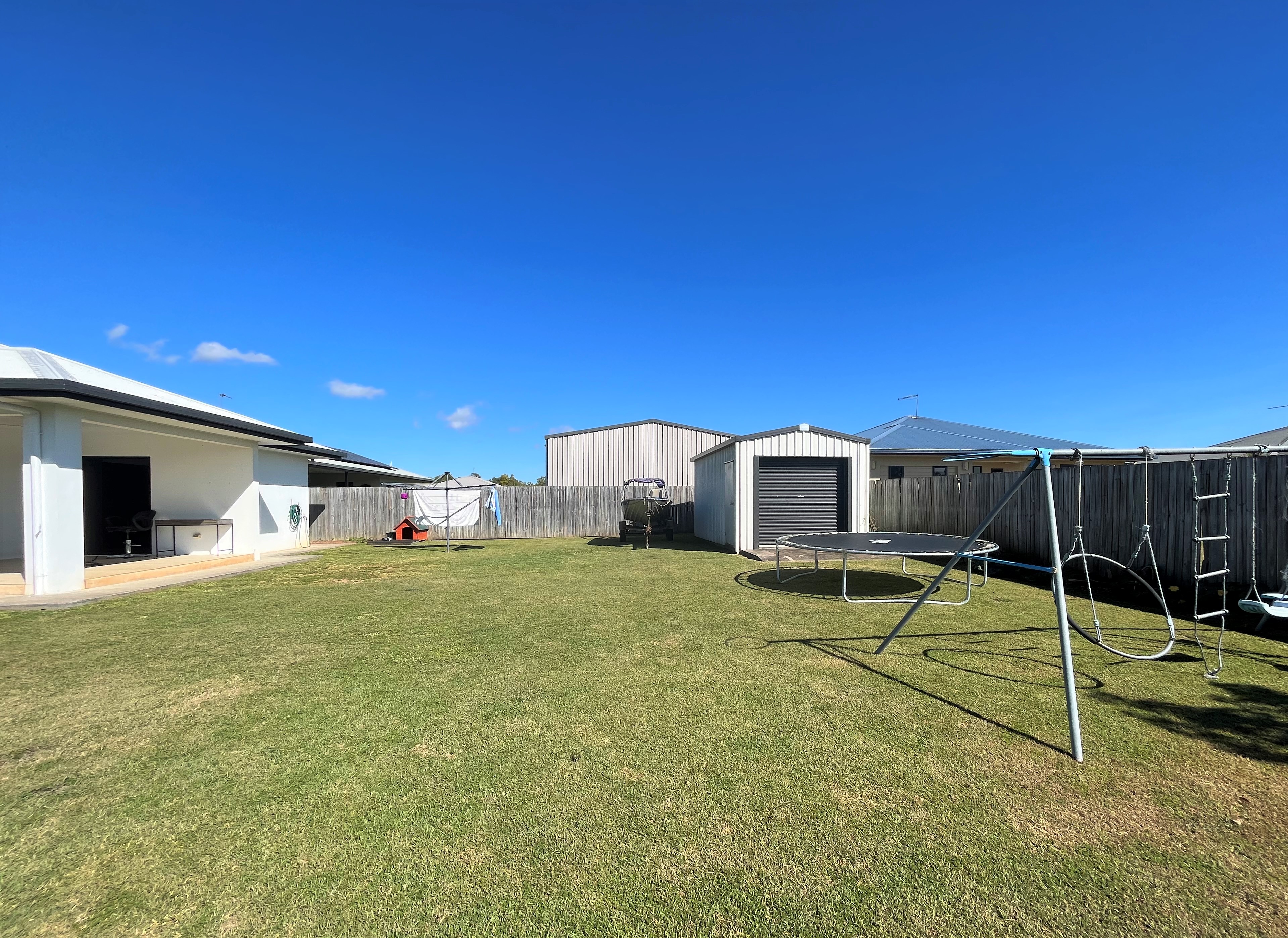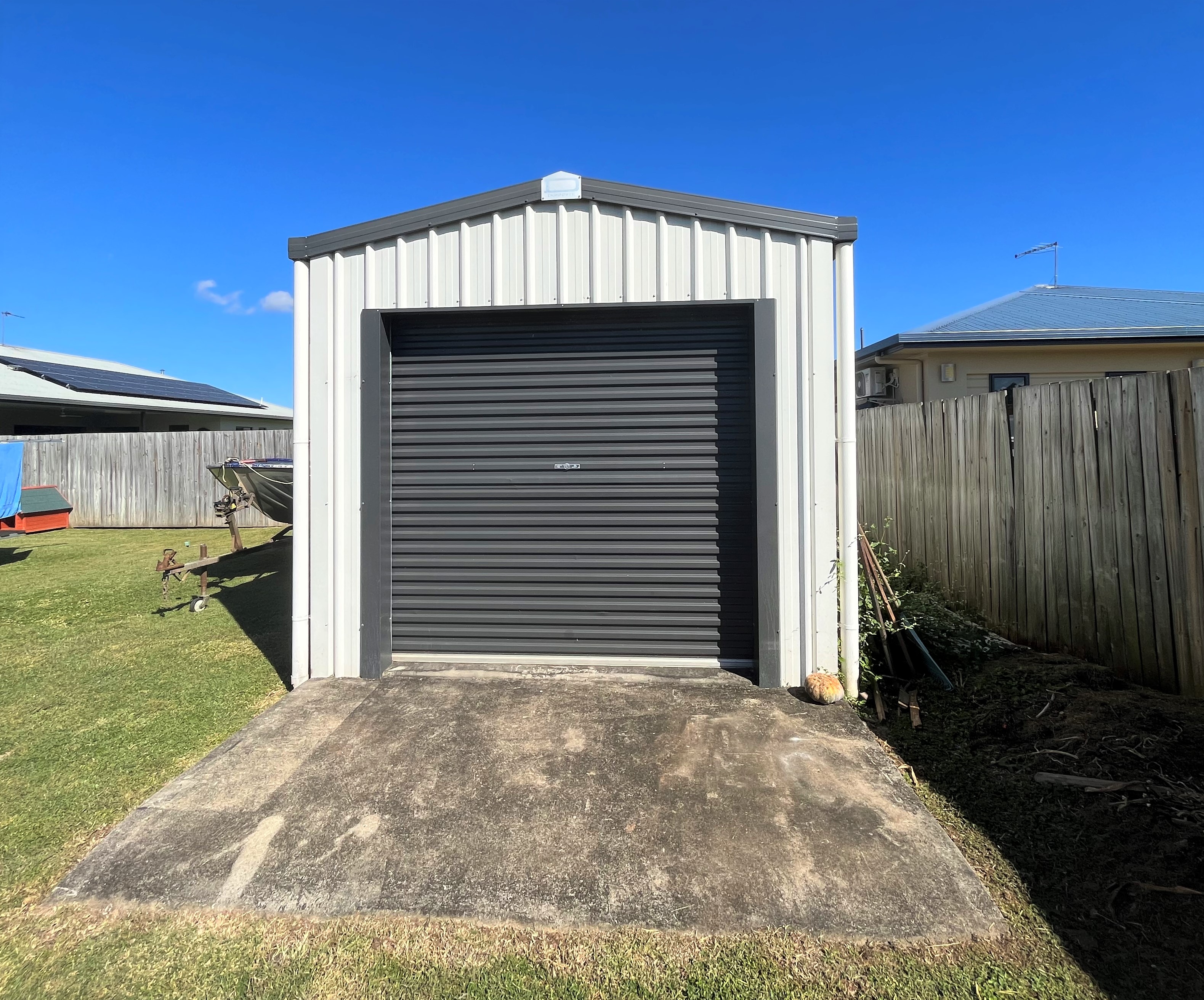 There is a lockable shed with a manual roller door and concrete flooring located in the back corner of the property.