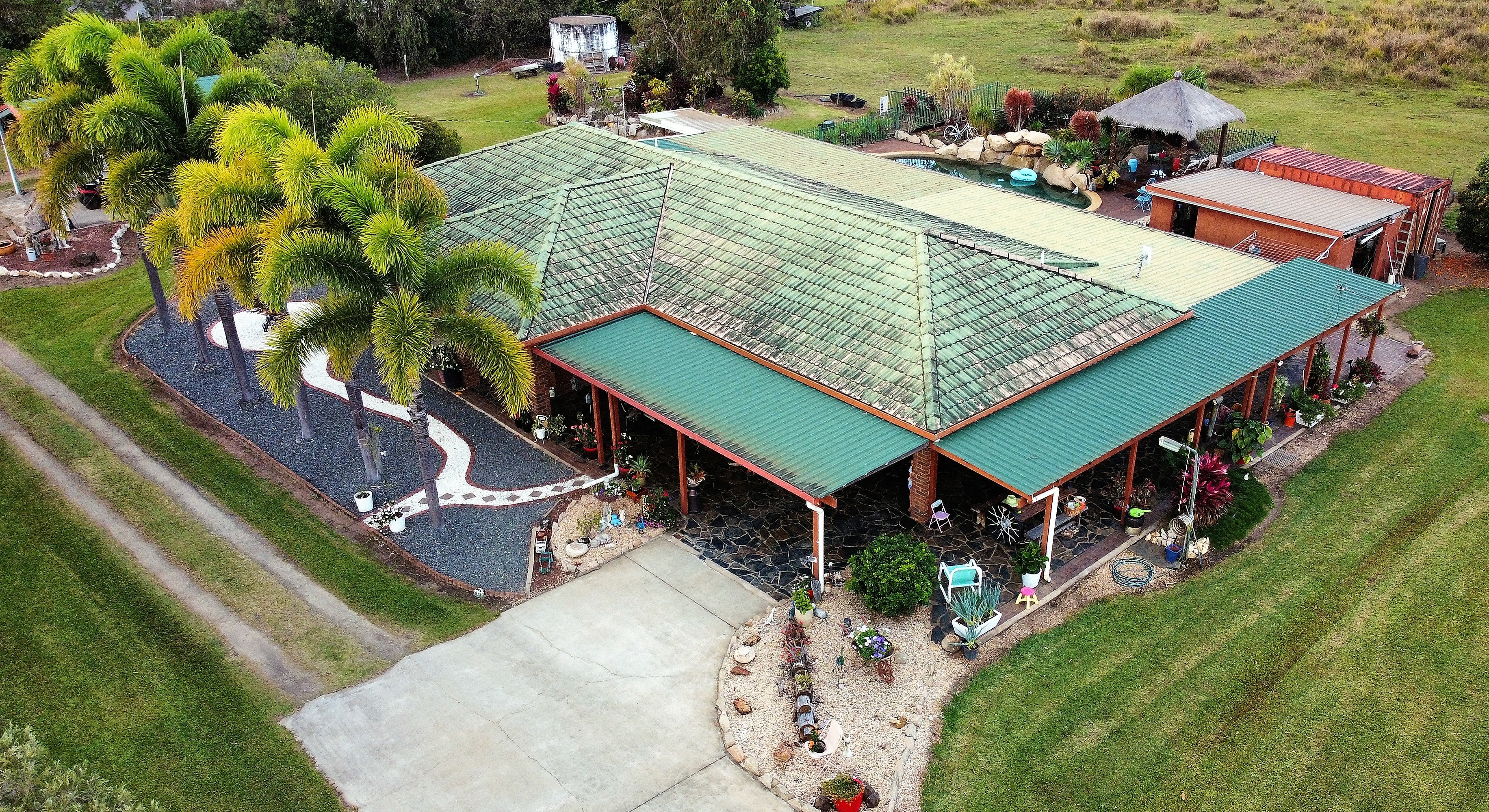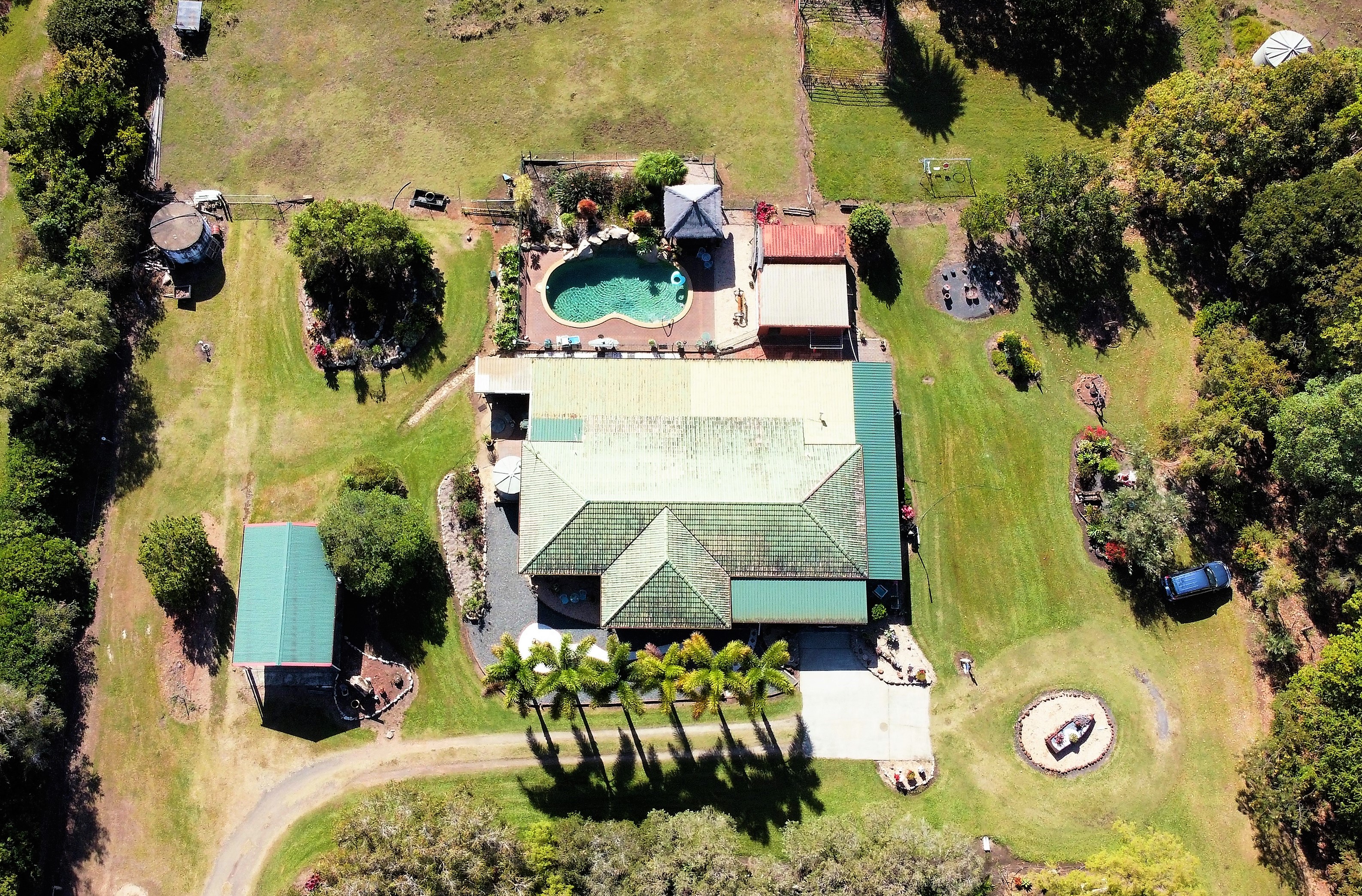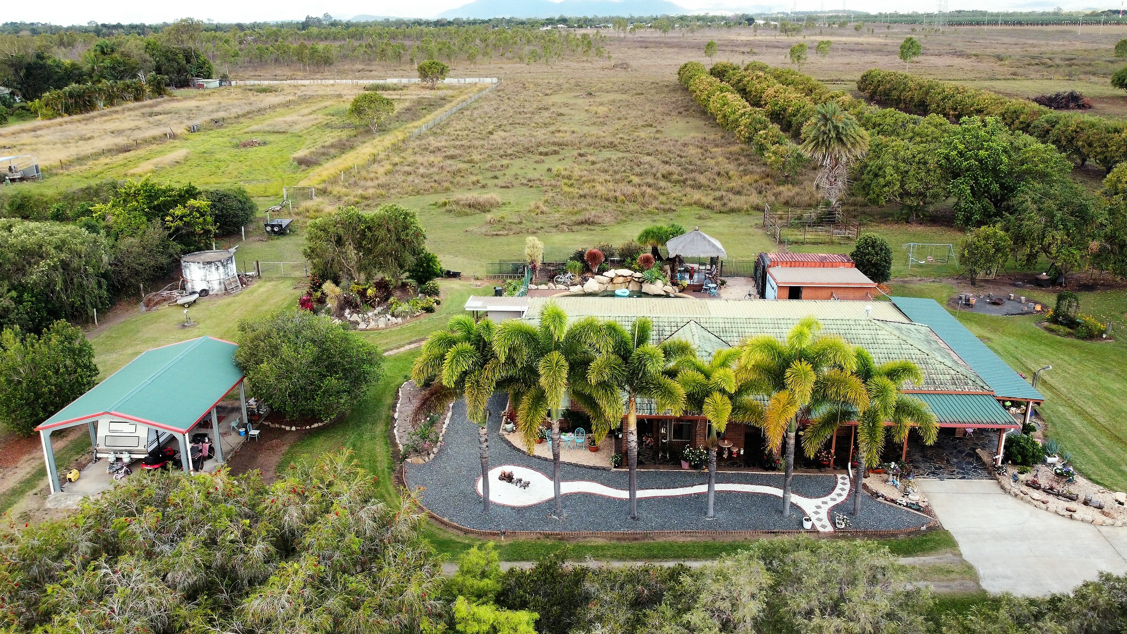 *All Garden Ornaments, plants in pots, timber bench attached to servery window, shipping container & cattle yards are not included in sale.