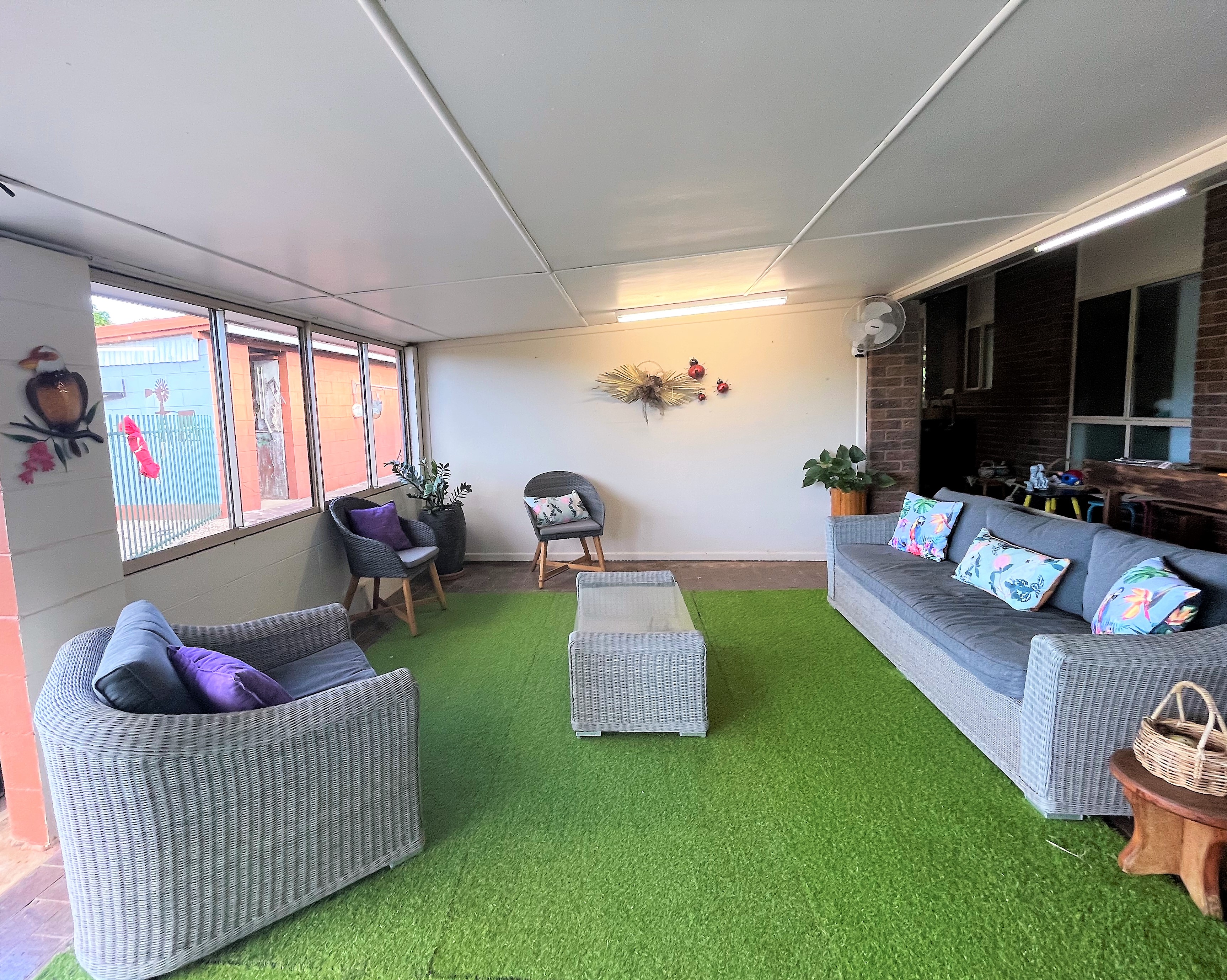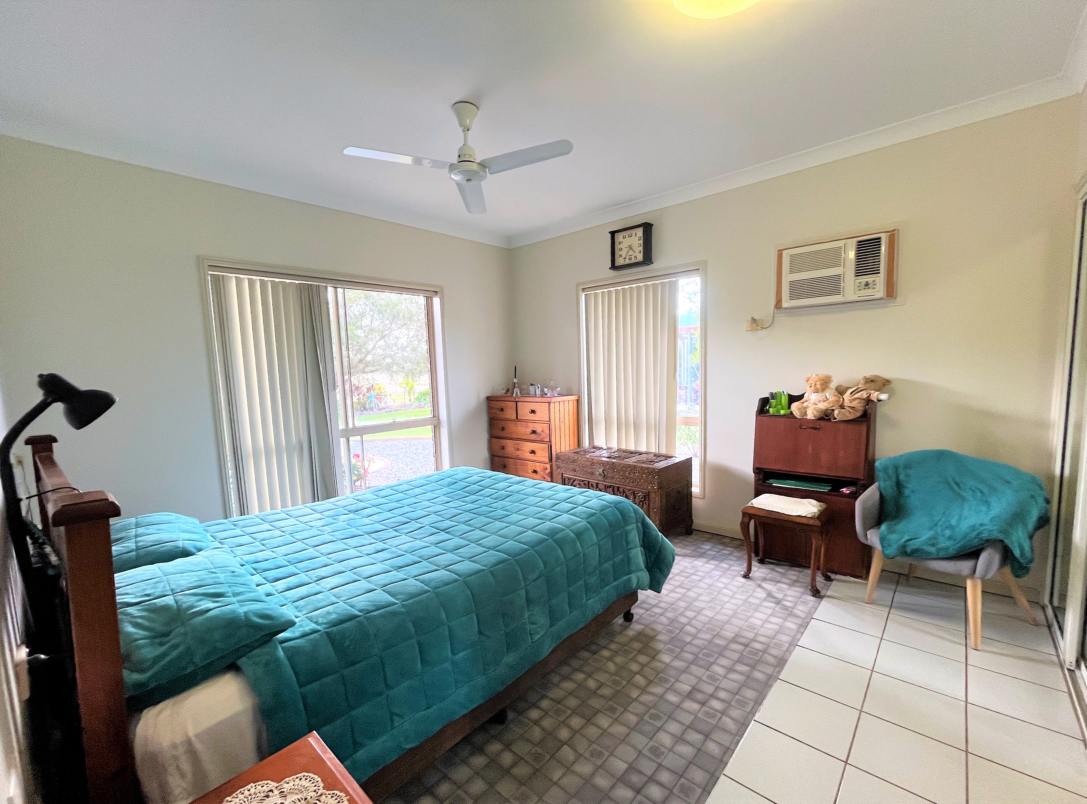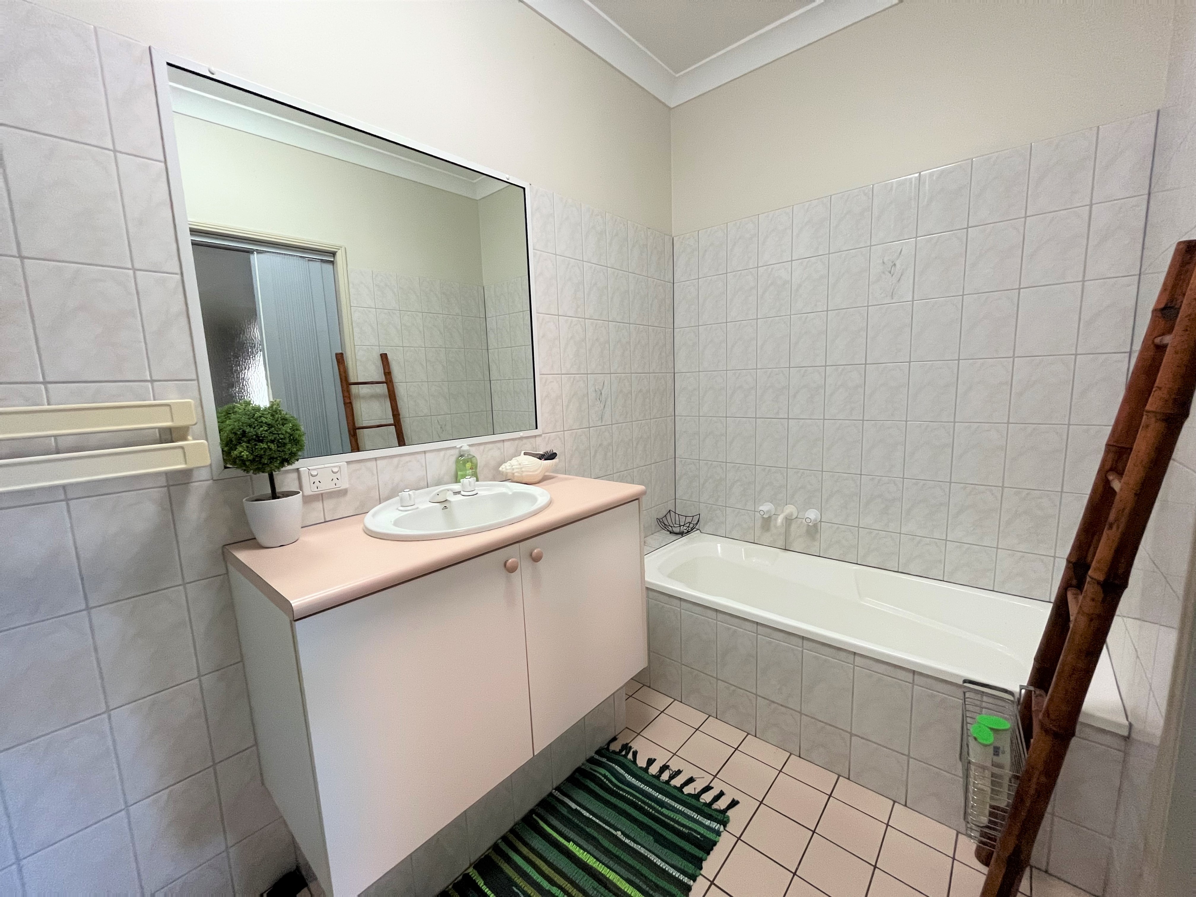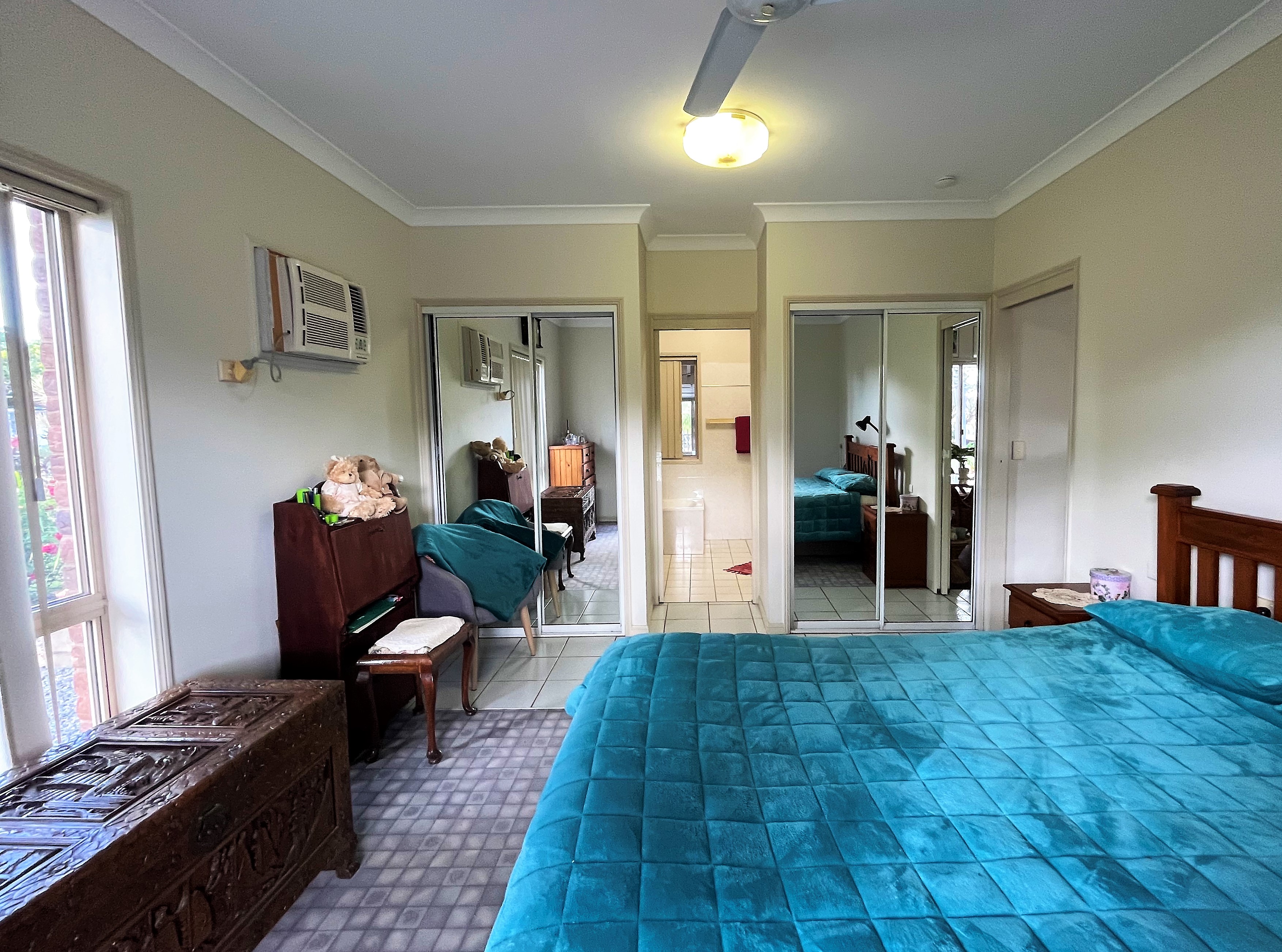 The home offers 3 bedrooms inside with the option for a 4th bedroom outside. Each of the 3 bedrooms are equipped with built-in robes. The master bedroom is complete with air-conditioning and a large ensuite that has a separate bath tub and shower.
