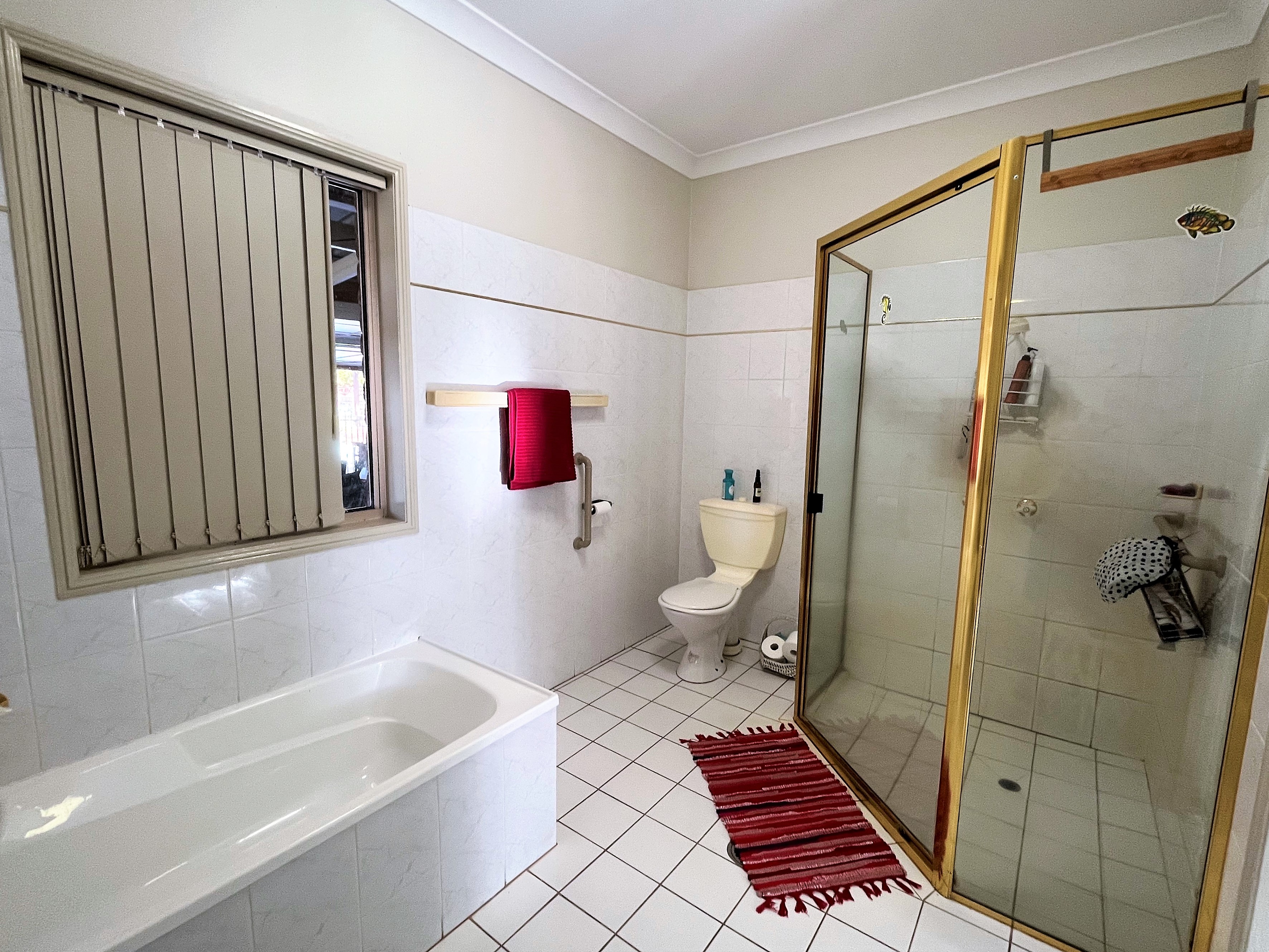The main bathroom offers a separate bathtub and shower.