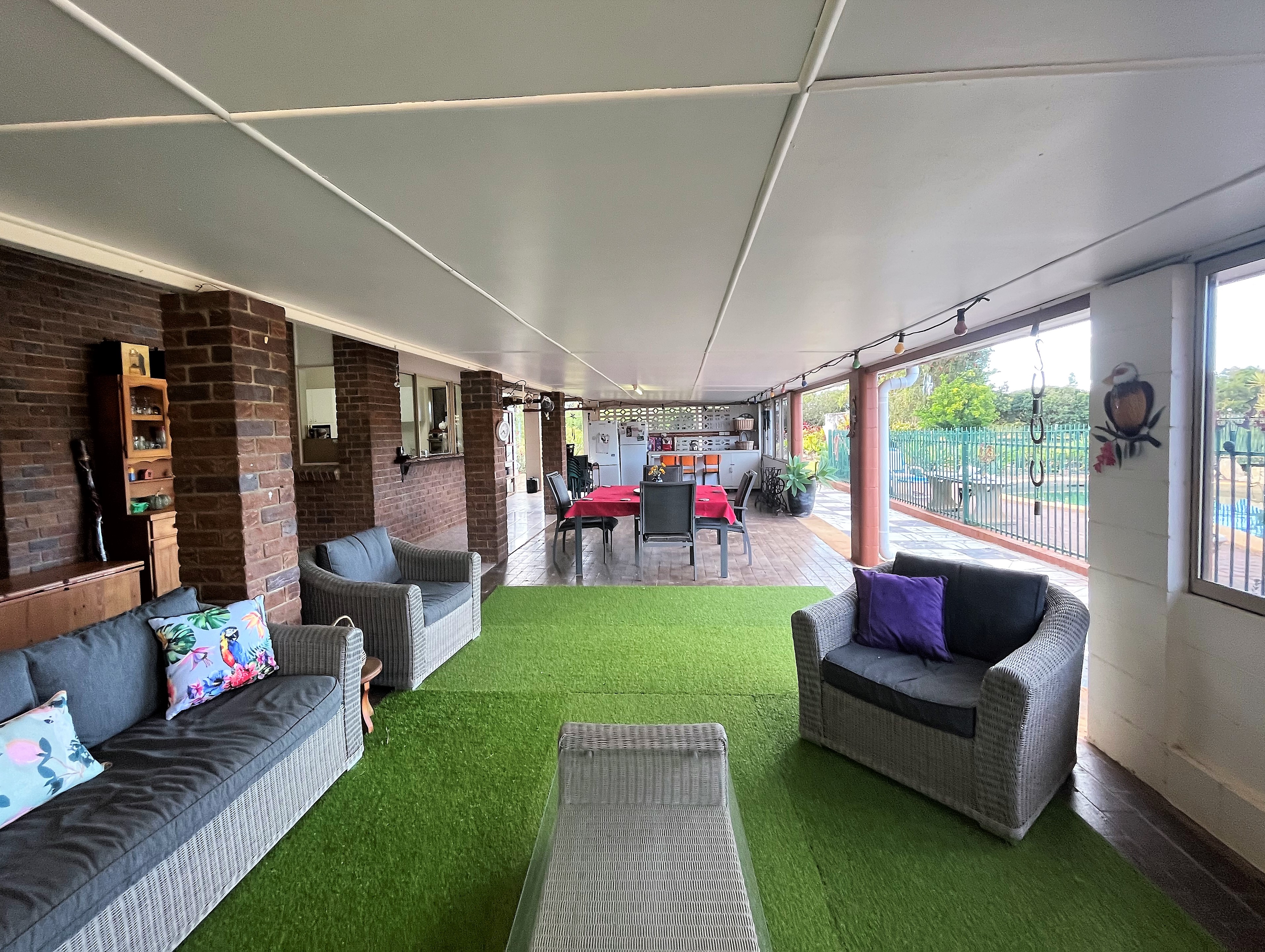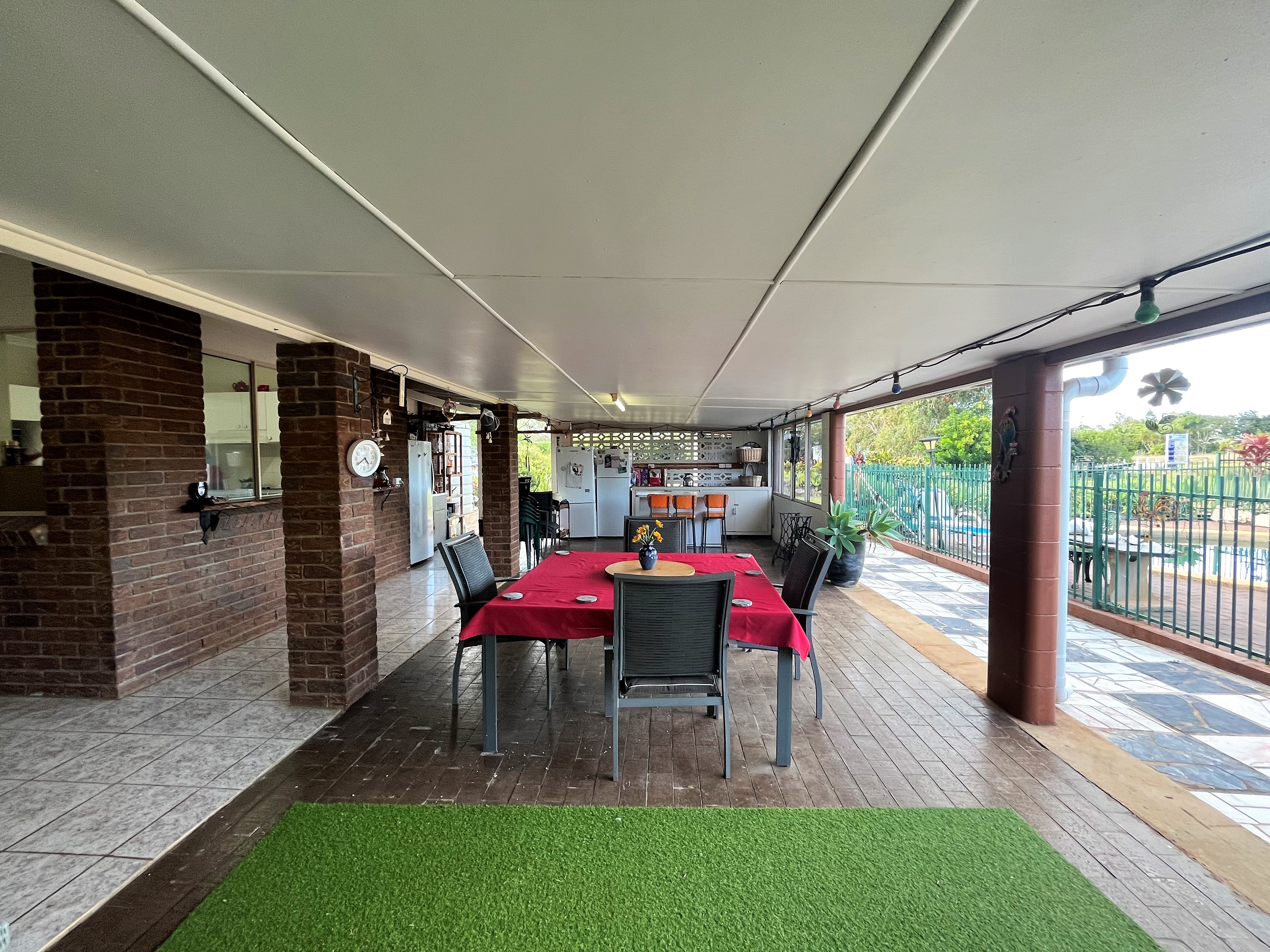 The expansive covered outdoor area is exceptionally versatile, catering to a variety of requirements. It has a swimming pool, and a generously-sized games room that can transition into either a 4th bedroom or be adapted into a granny flat. There is a sink and bench space that has the opportunity to be transformed into an outdoor kitchen area.