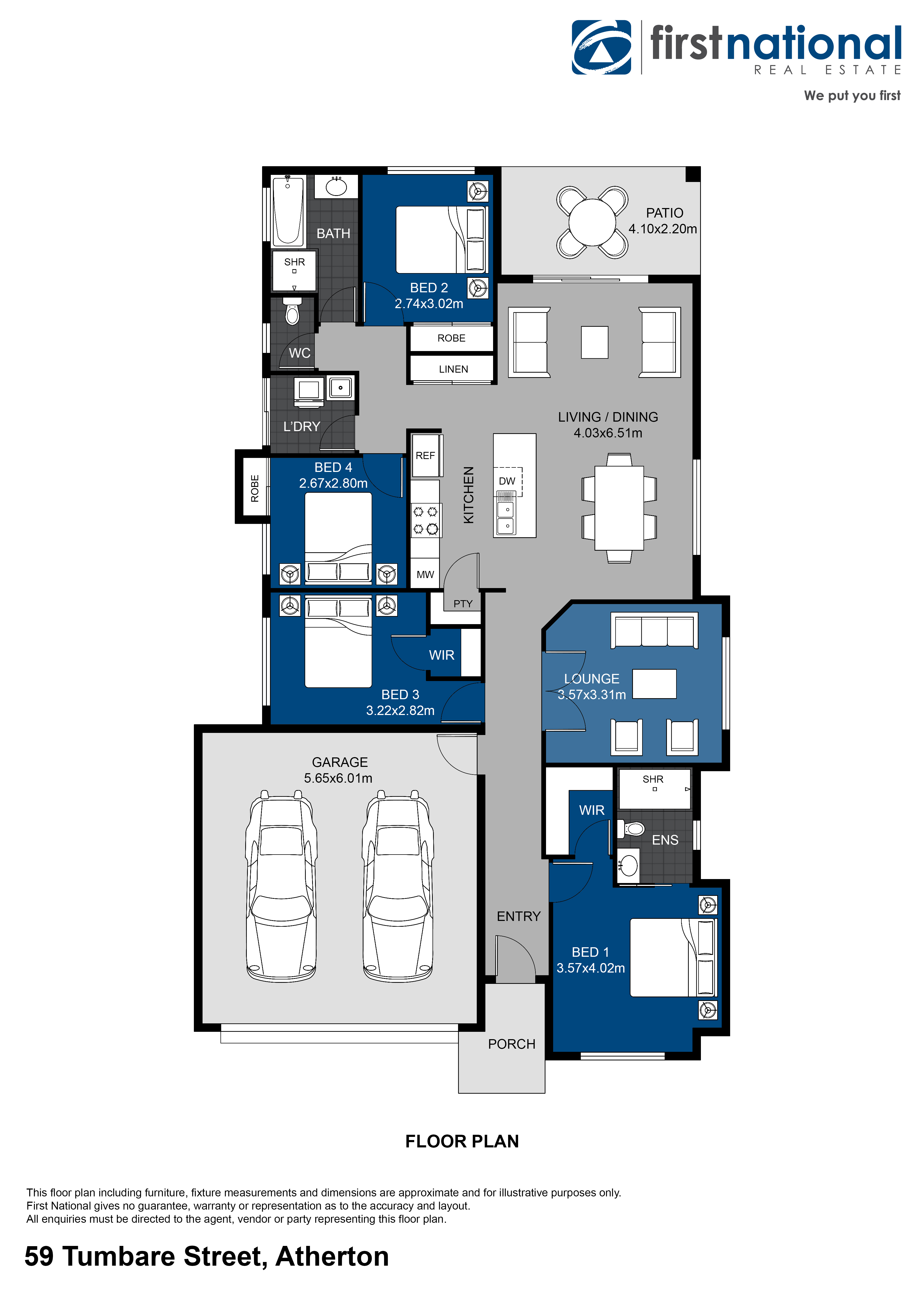 Zach Reid of First National Atherton is proud to present 59 Tumbare Street, Atherton. Newly built in 2020 and presented immaculately this home is ready for new owners. Featuring a fantastic layout with 4 large bedrooms as well as a media room there is space for the whole family. The kitchen, dining and living is all open plan and the back patio features a fantastic outlook over rural fields and mountains.
