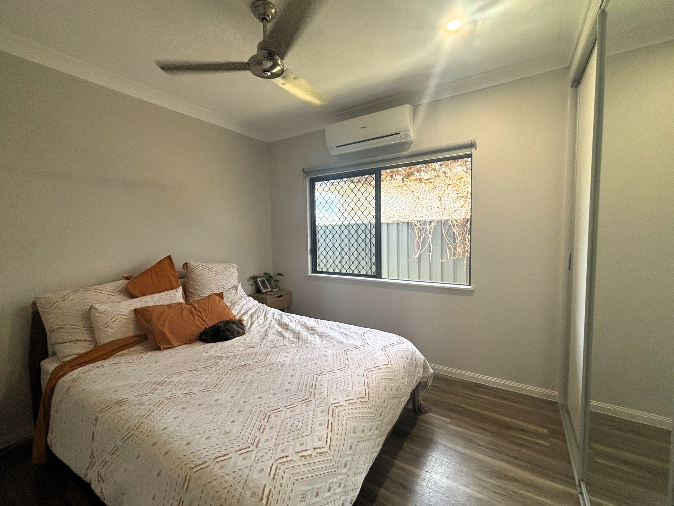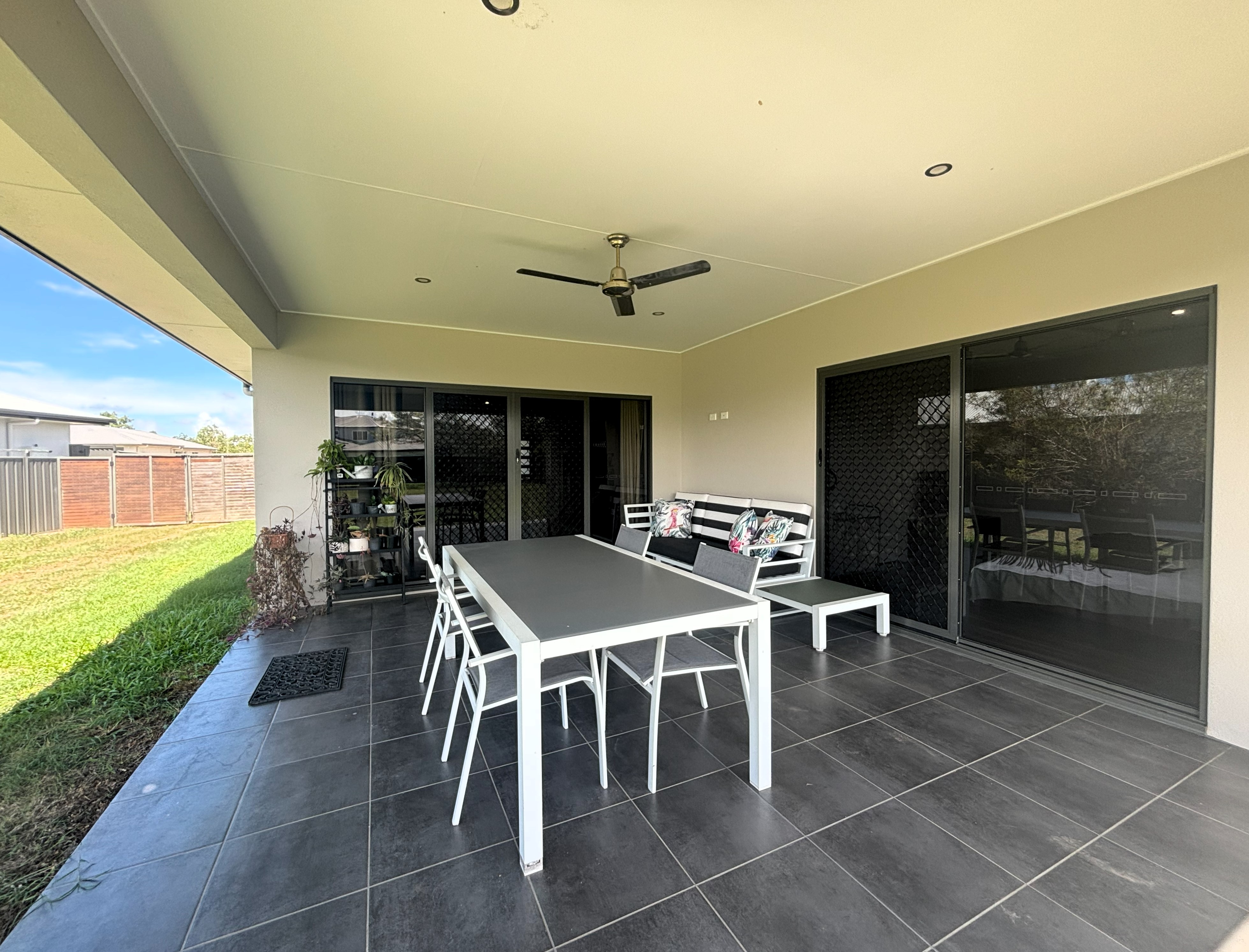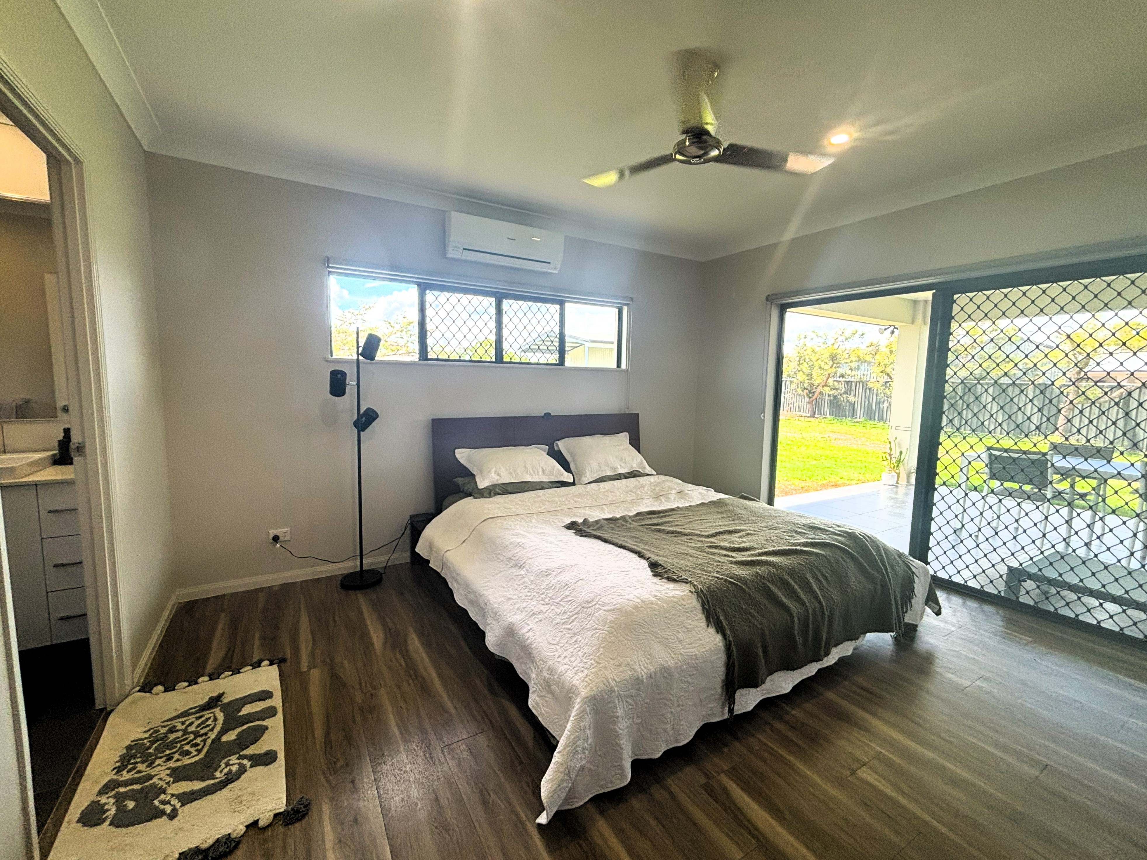 The expansive master bedroom boasts a walk-in wardrobe and ensuite, complemented by convenient outside access to the rear patio. The other three bedrooms feature built-in wardrobes, along with air conditioning and ceiling fans.