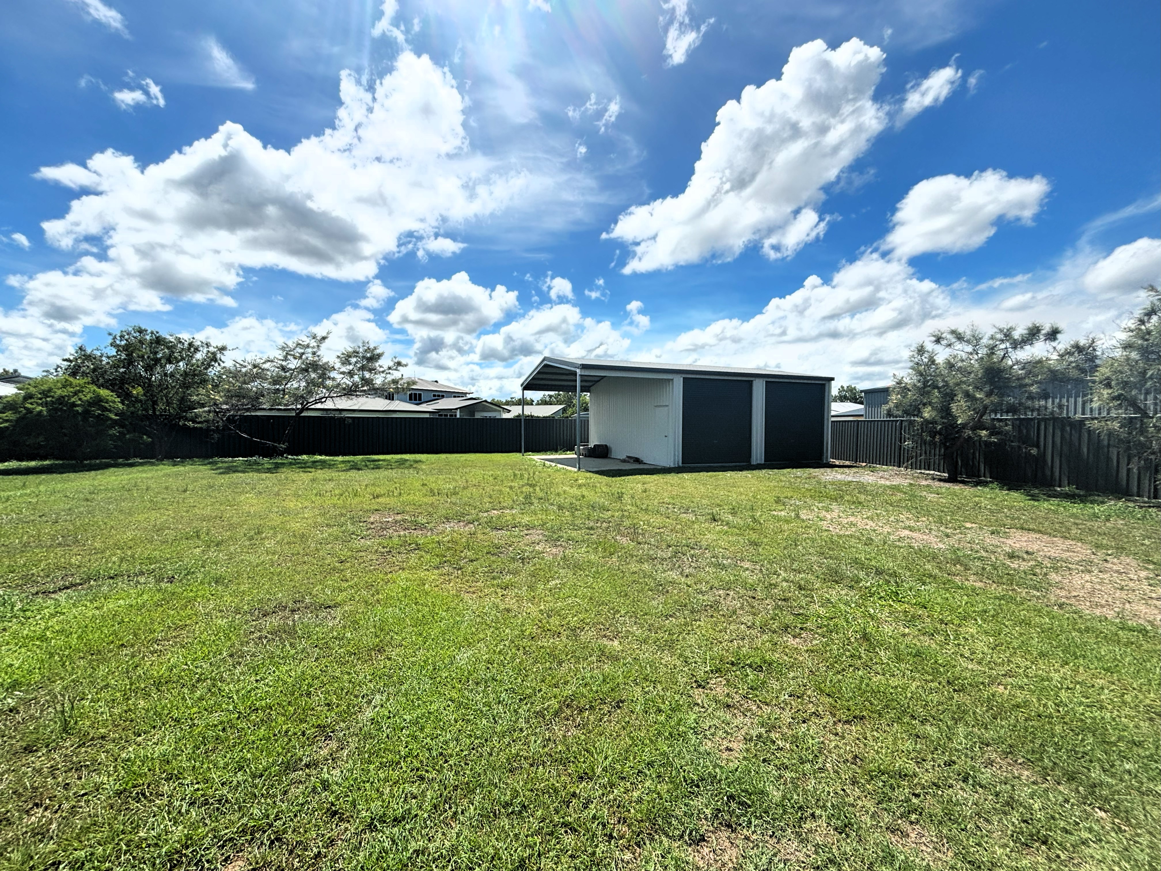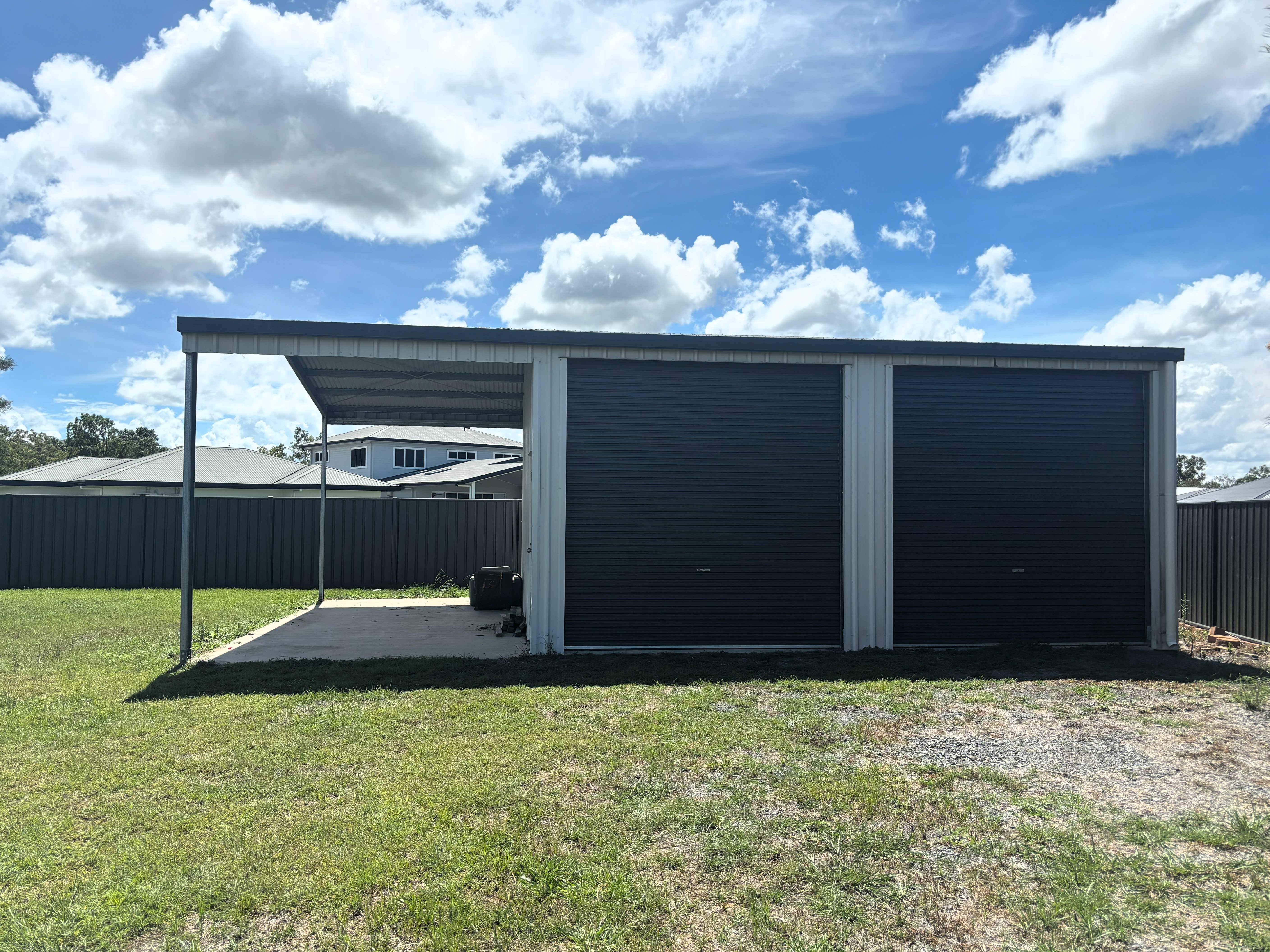The fully fenced property has backyard access along the right hand side of the home. With the block size being 1345m2, it offers ample room in the backyard to turn around with a trailer and access the 8m x 10m shed. The shed has two lockable bays with a 3rd open bay. The roller door openings are high clearance, perfect to fit any of your outdoor toys.