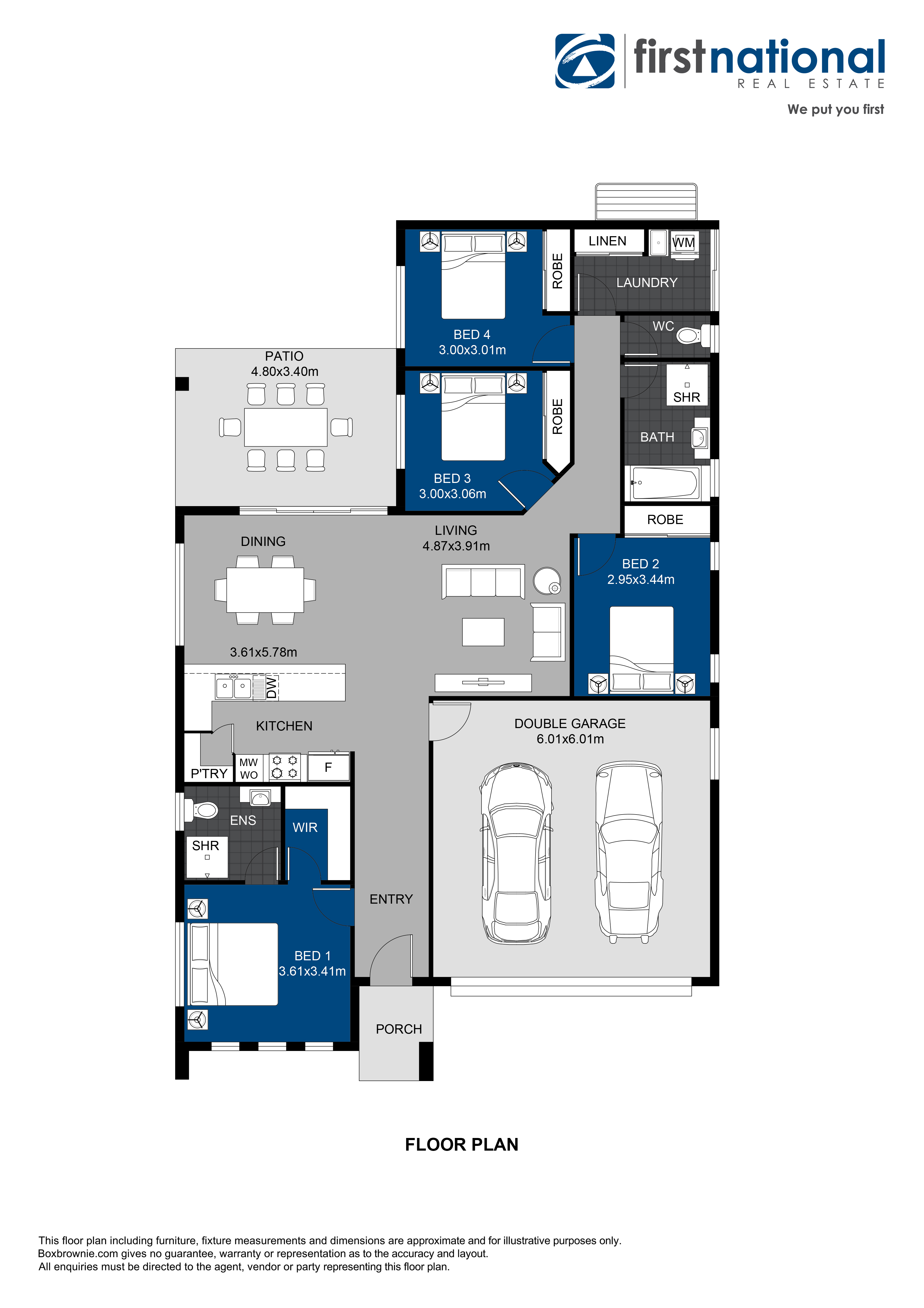 - Internal laundry with linen storage
