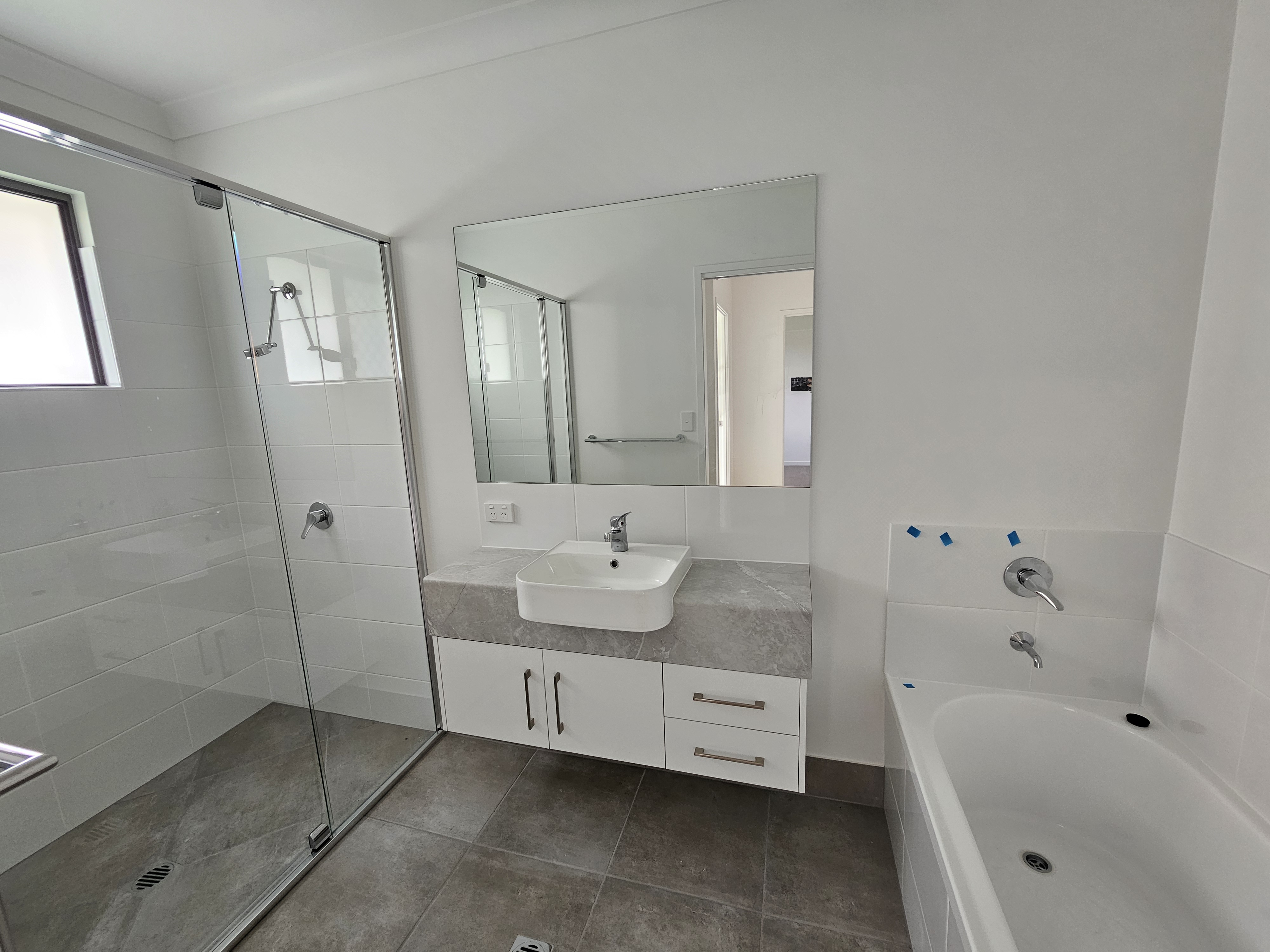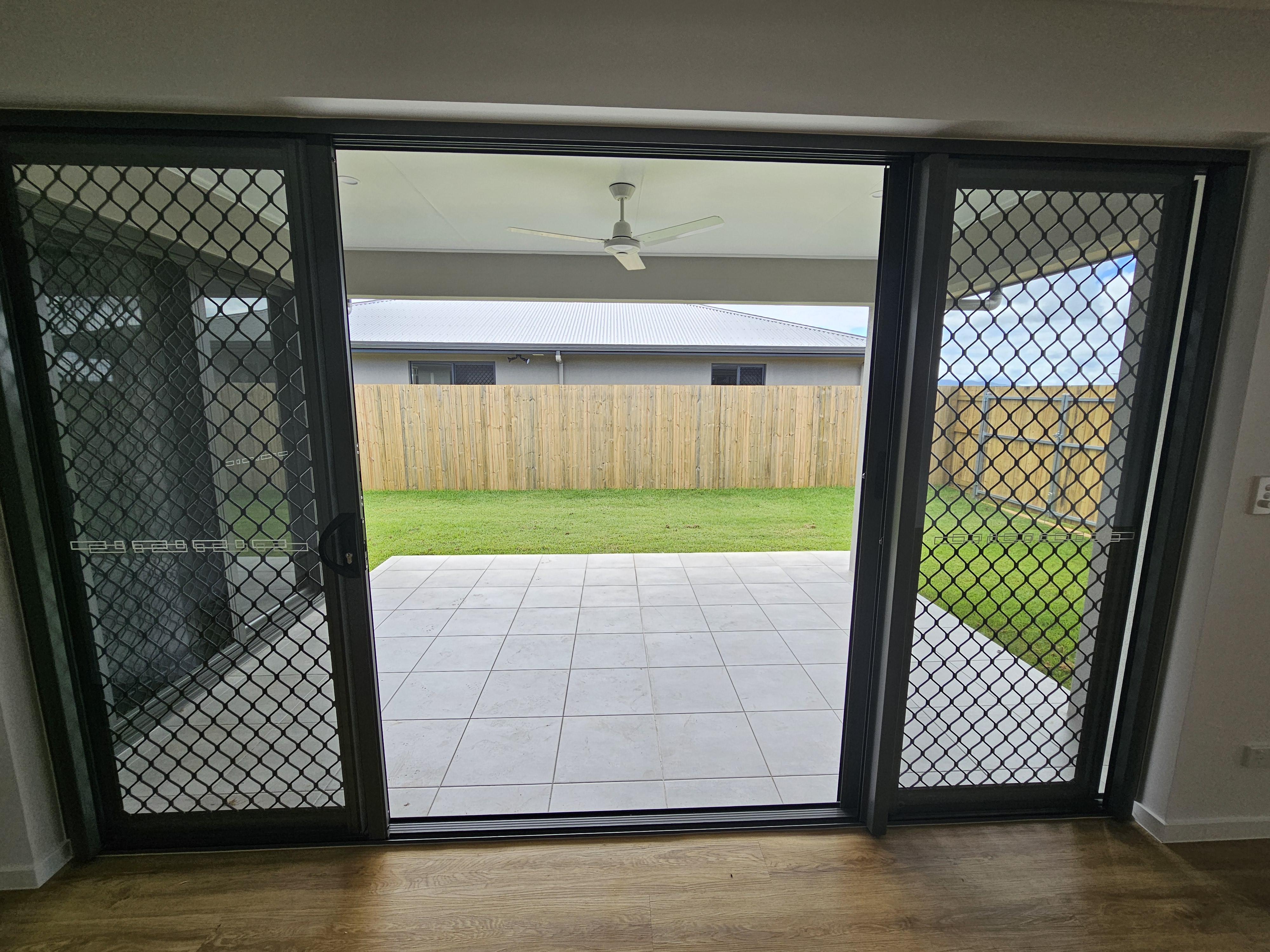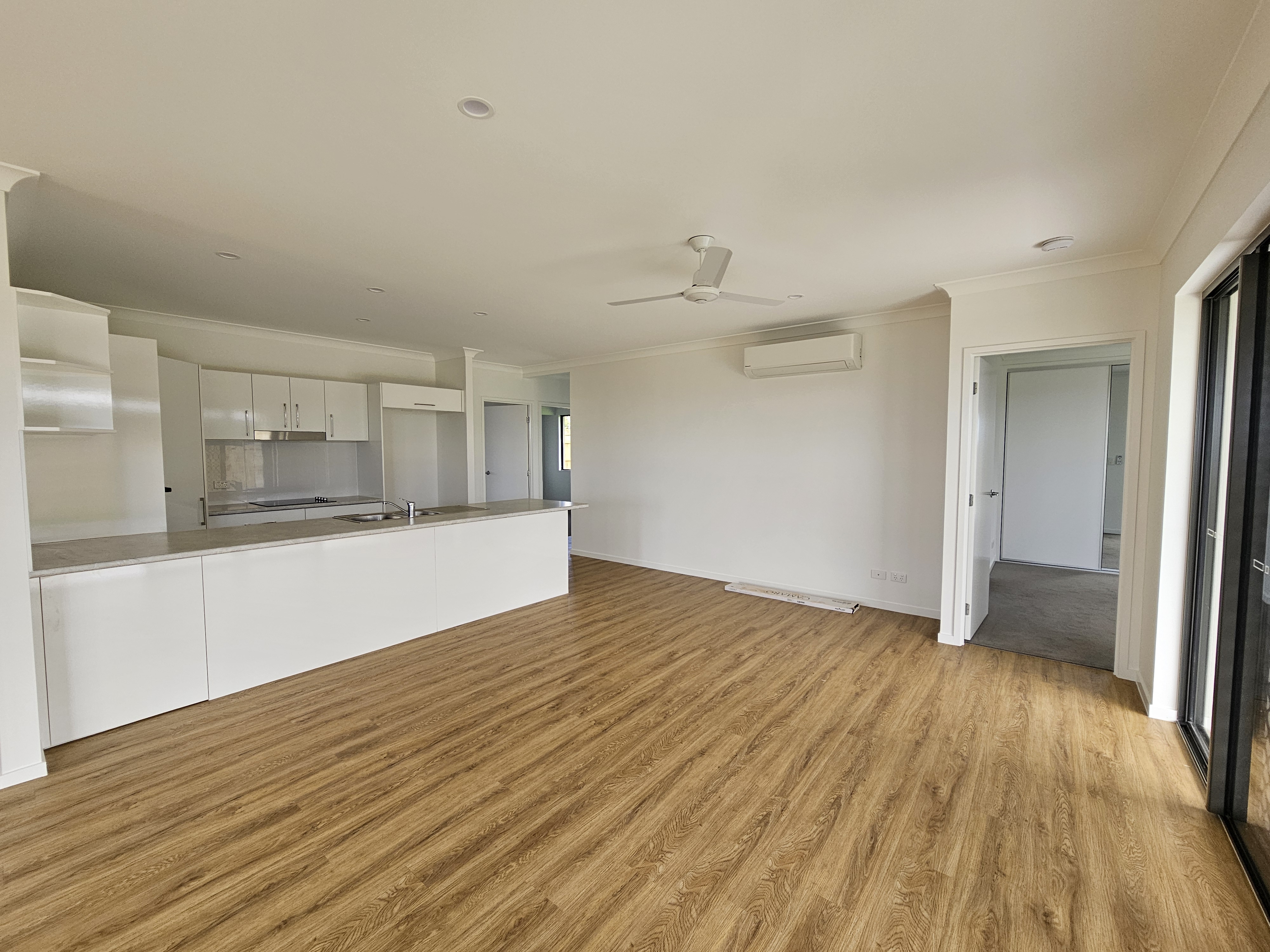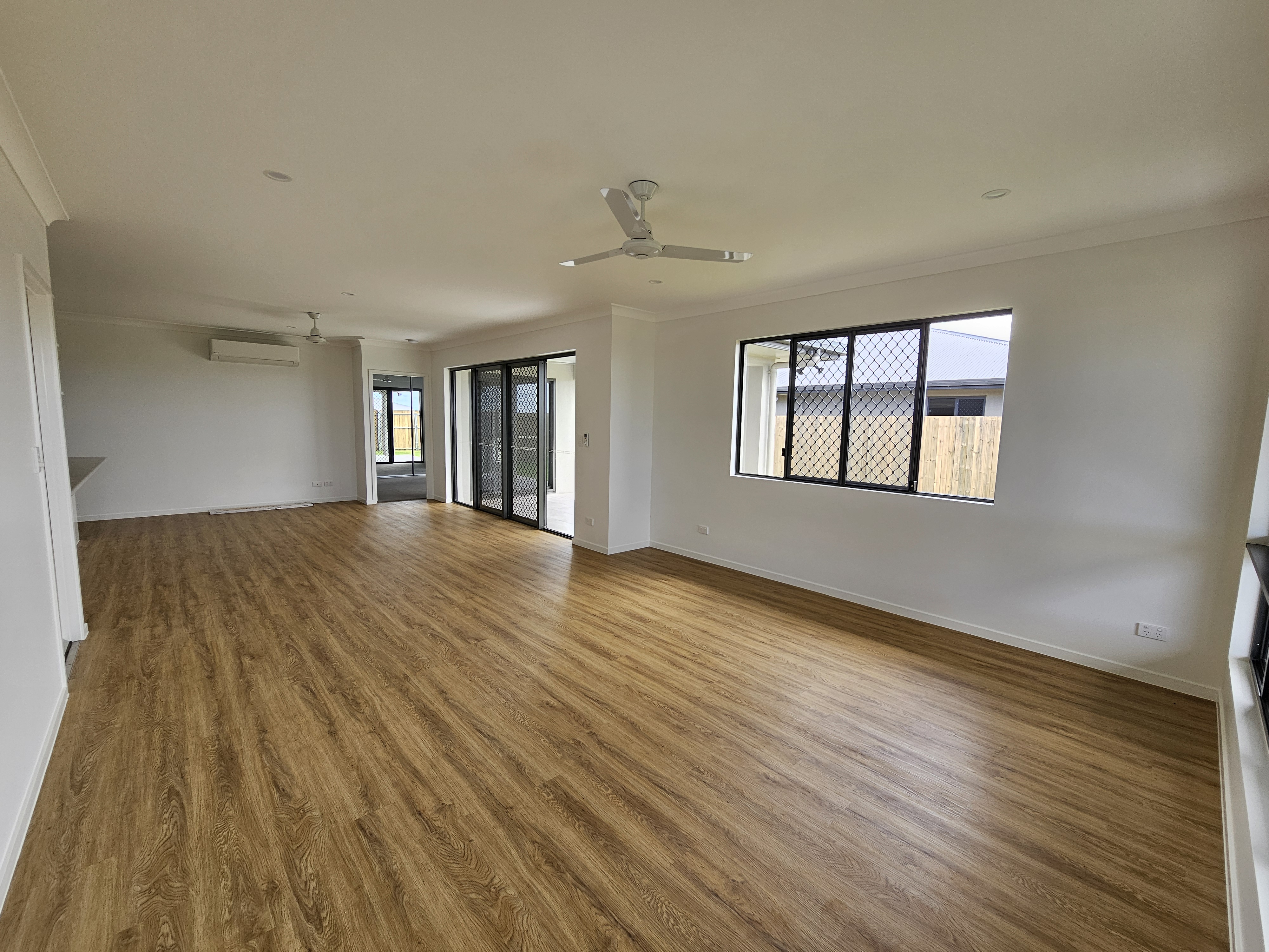 • Tiled open plan living with fans and air con