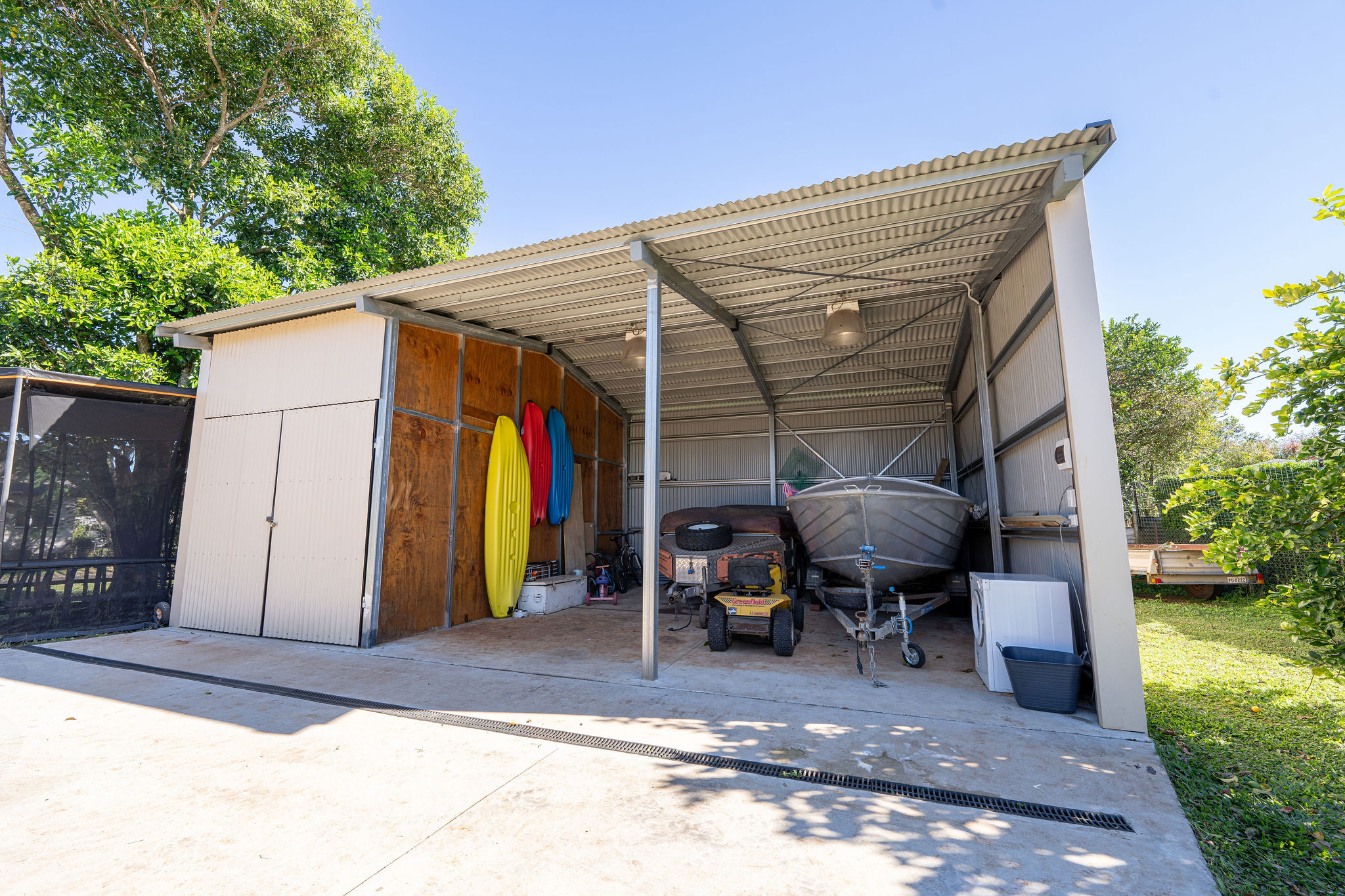 - 3 bay shed, 2 open bays and one lock up