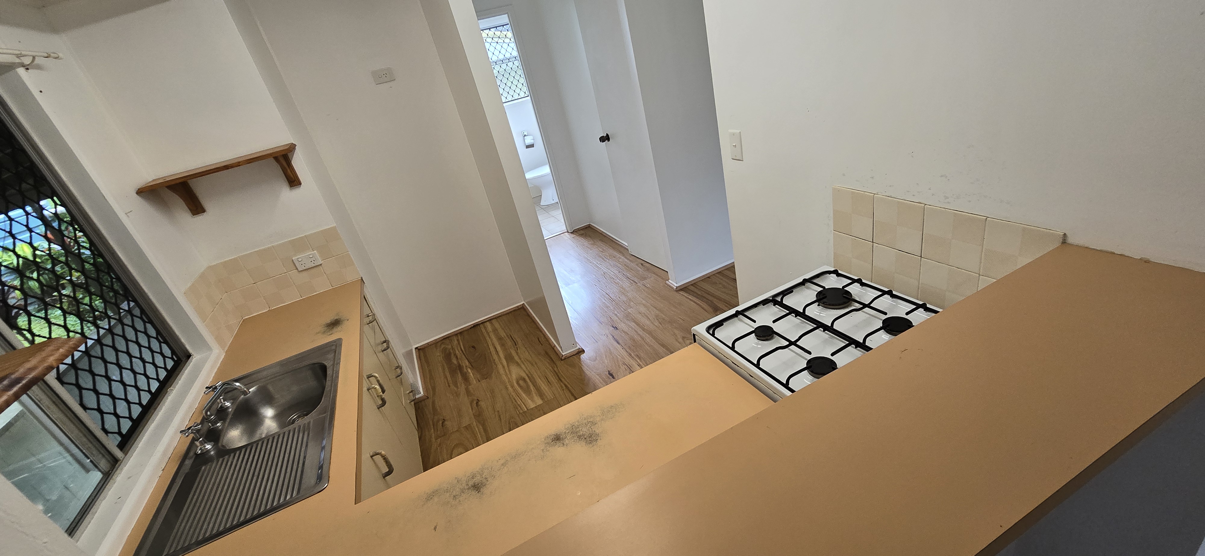 Two bedroom Granny Flat, Timber look vinyl & Carpet throughout, A/c to Main Bedroom, Gas cooktop, Security Screens, Window furnishings & small deck off the shed.