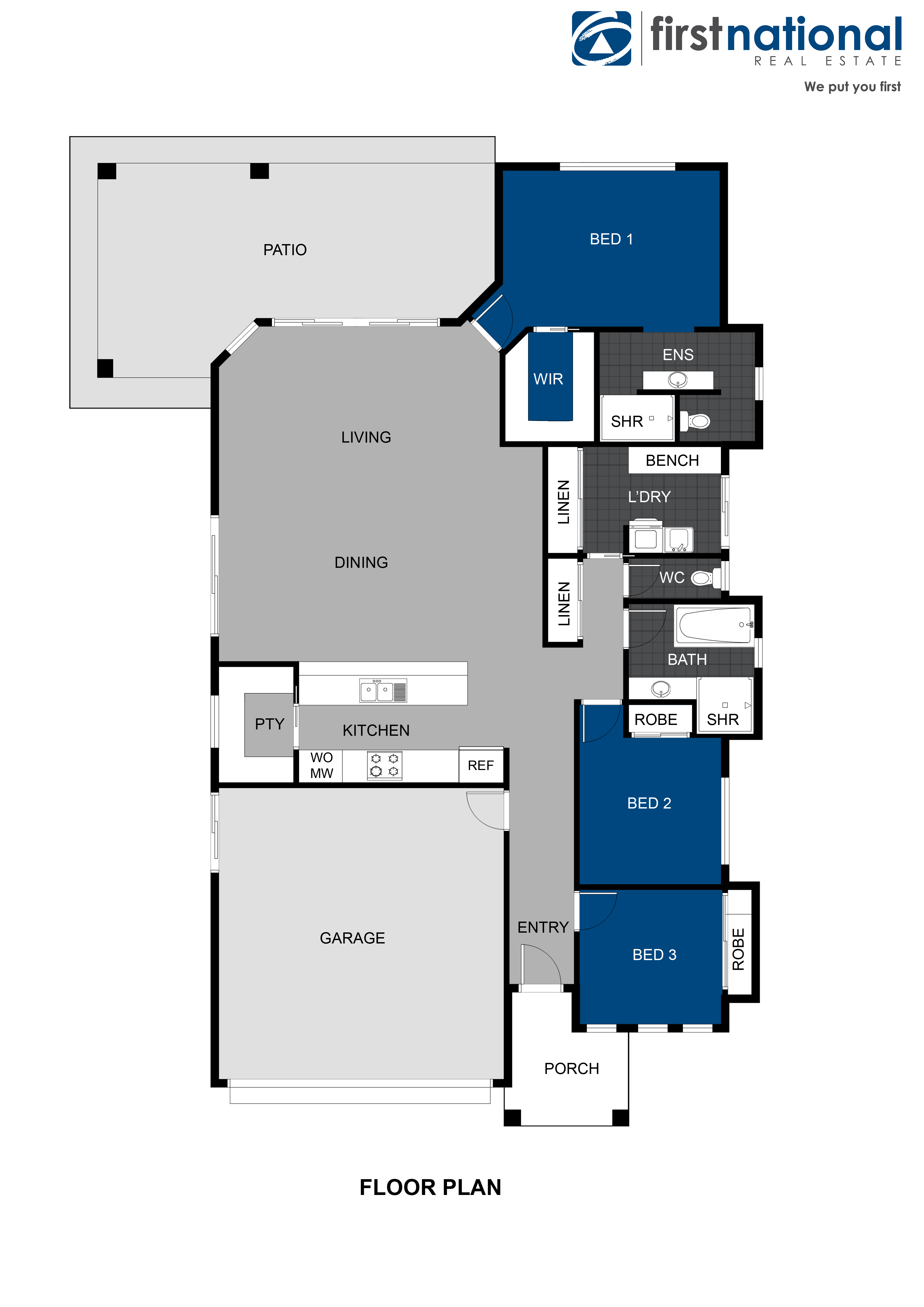 - Two additional bedrooms with built-in wardrobes and ceiling fans