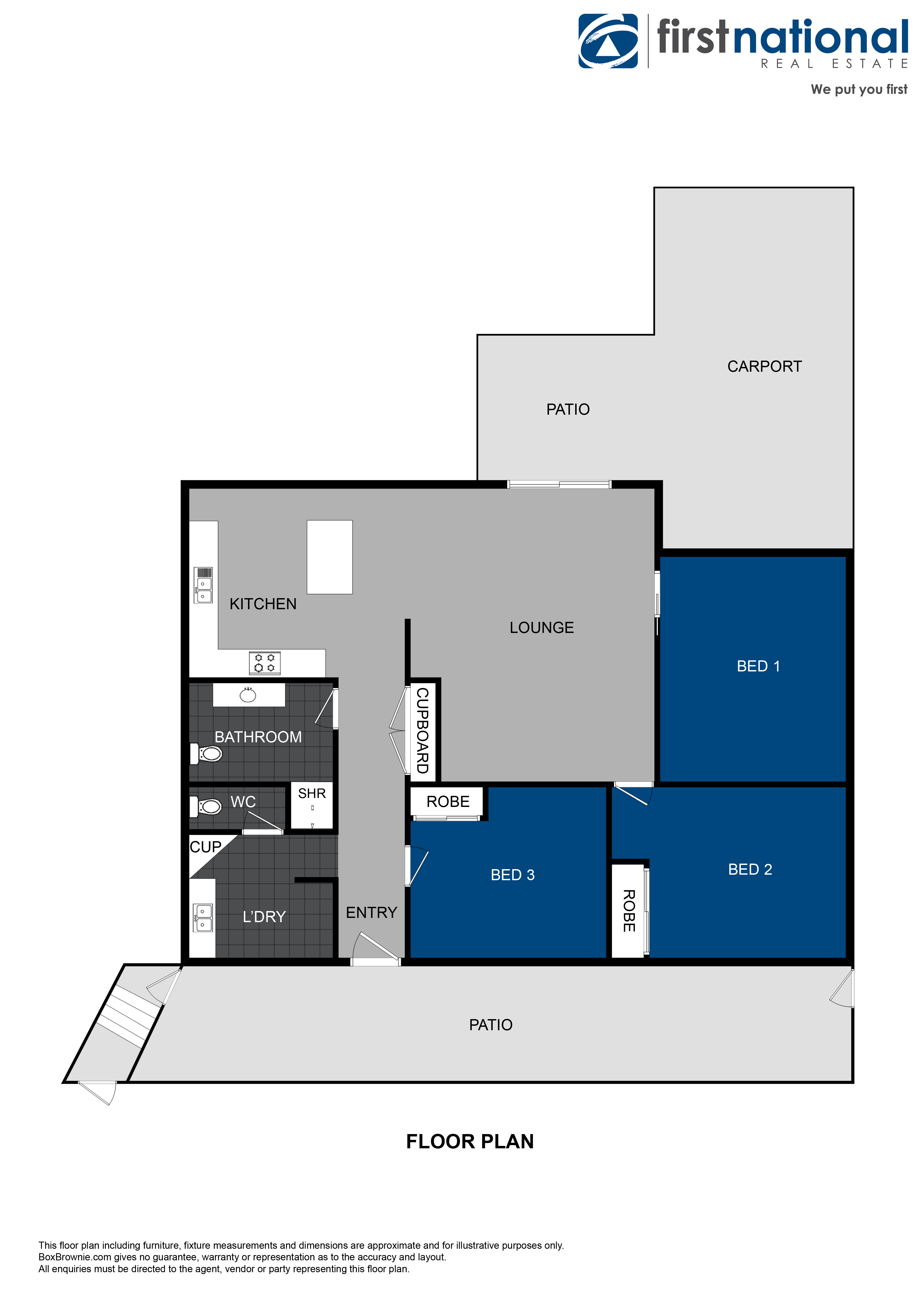 - Three spacious bedrooms with air-conditioning
