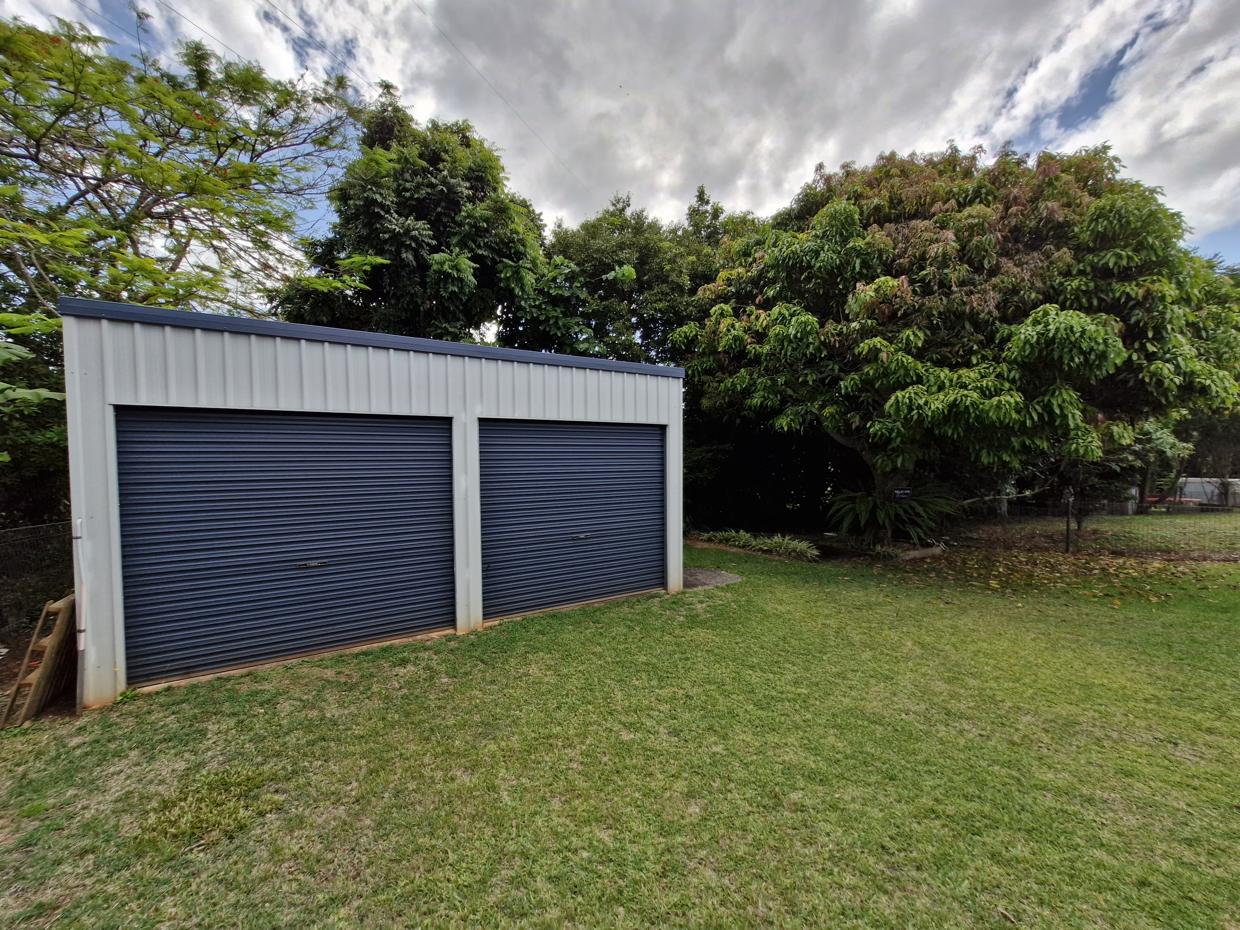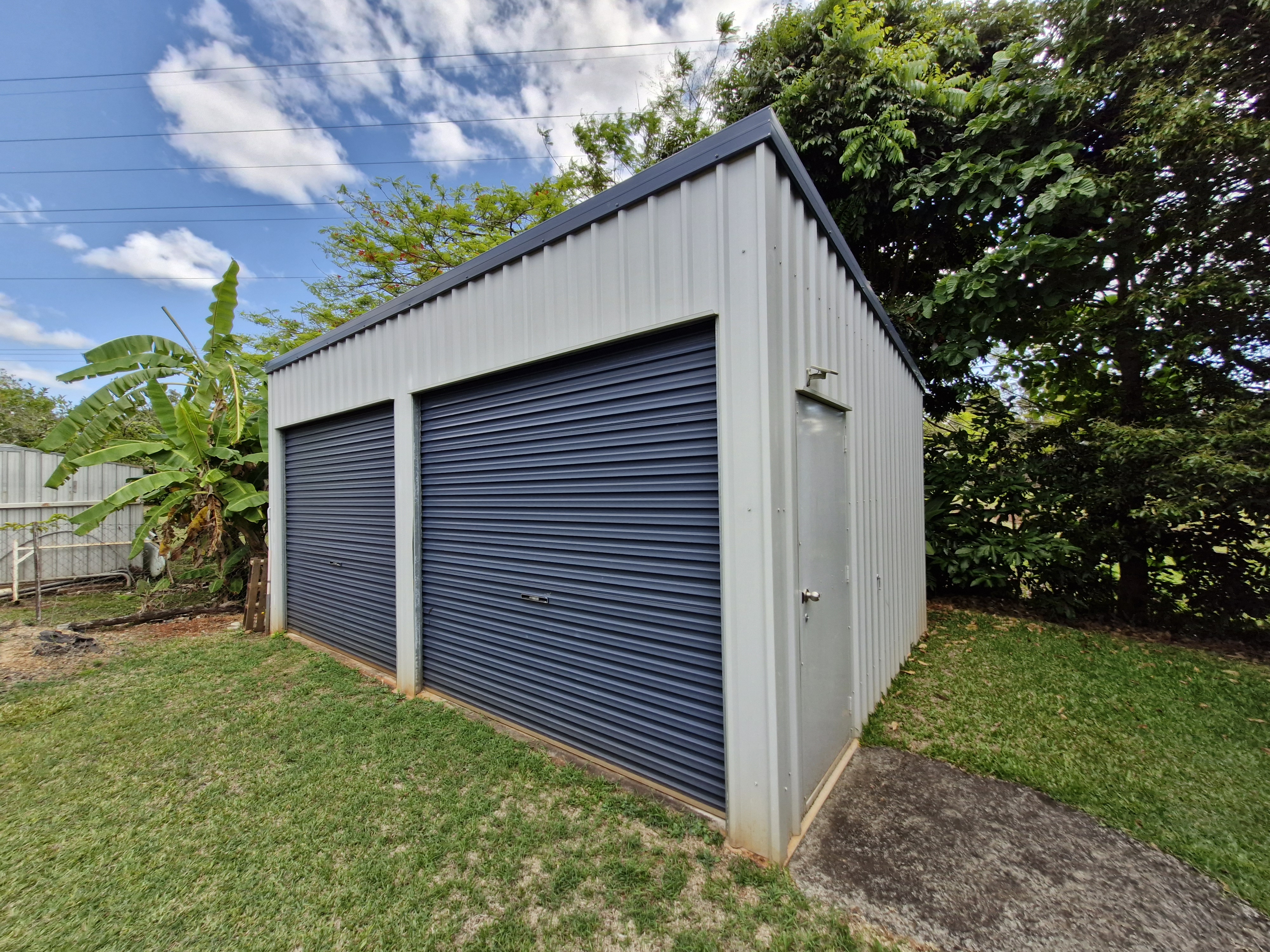 - Powered two-bay shed for storage or workshop