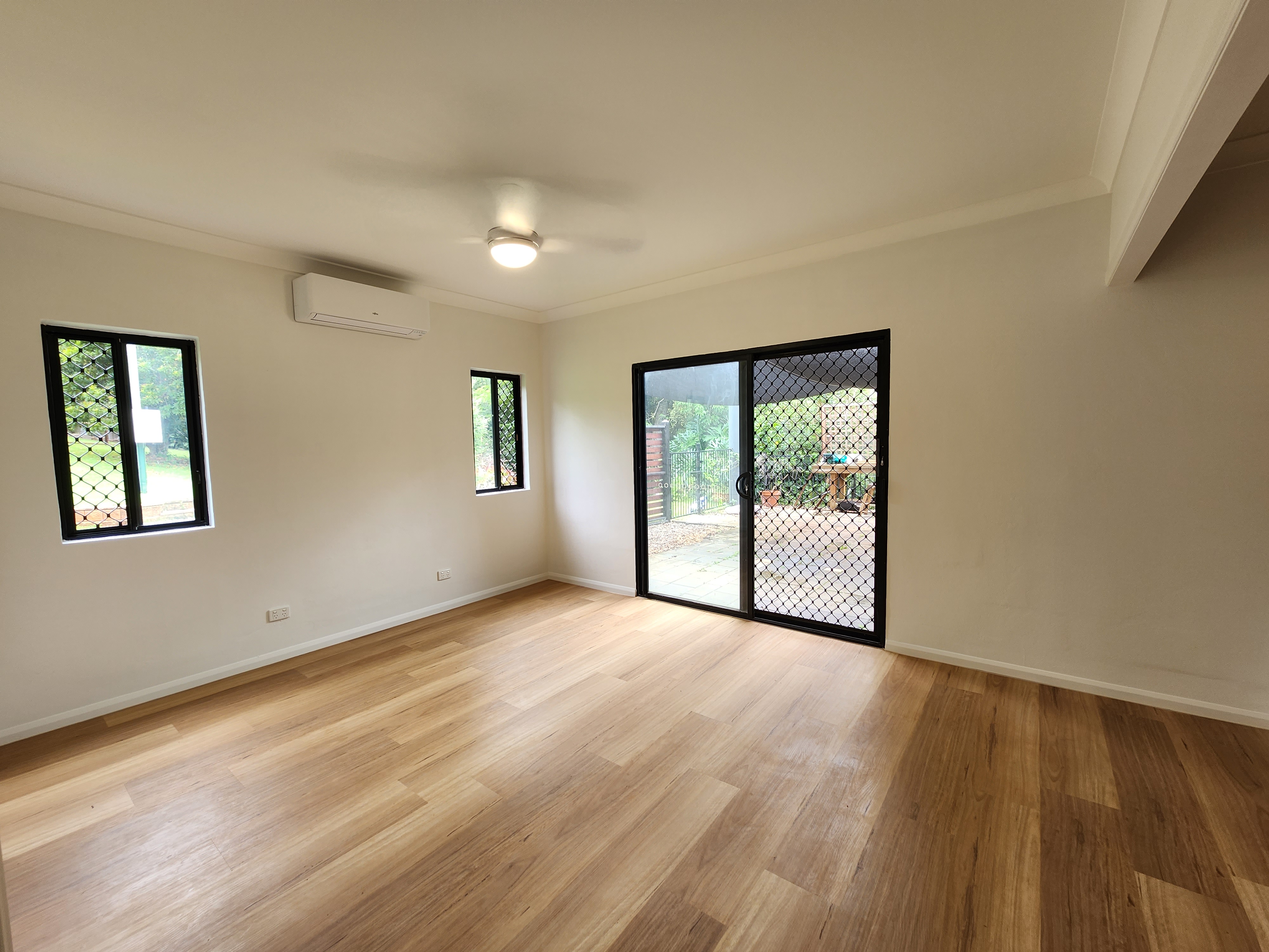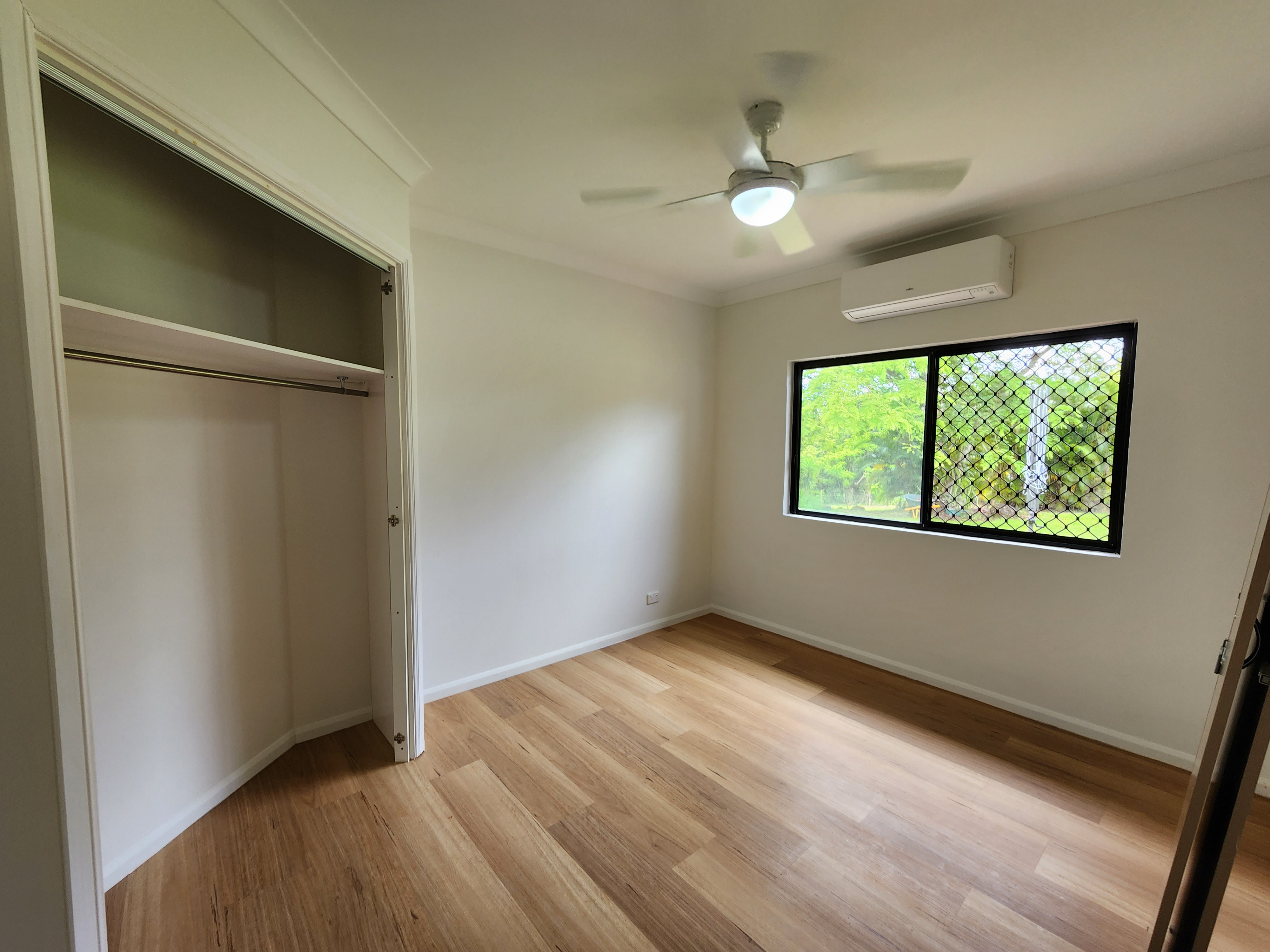 The master bedroom features a large built in robe, air-conditioning, ceiling fan with direct outdoor access onto the patio, The second bedroom features a small built in robe, air-conditioning, ceiling fan.