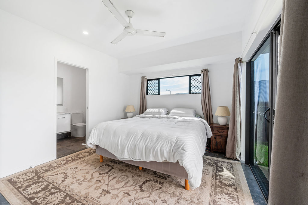 - Generous master bedroom featuring views through the rear door, a walk-in robe, and an ensuite