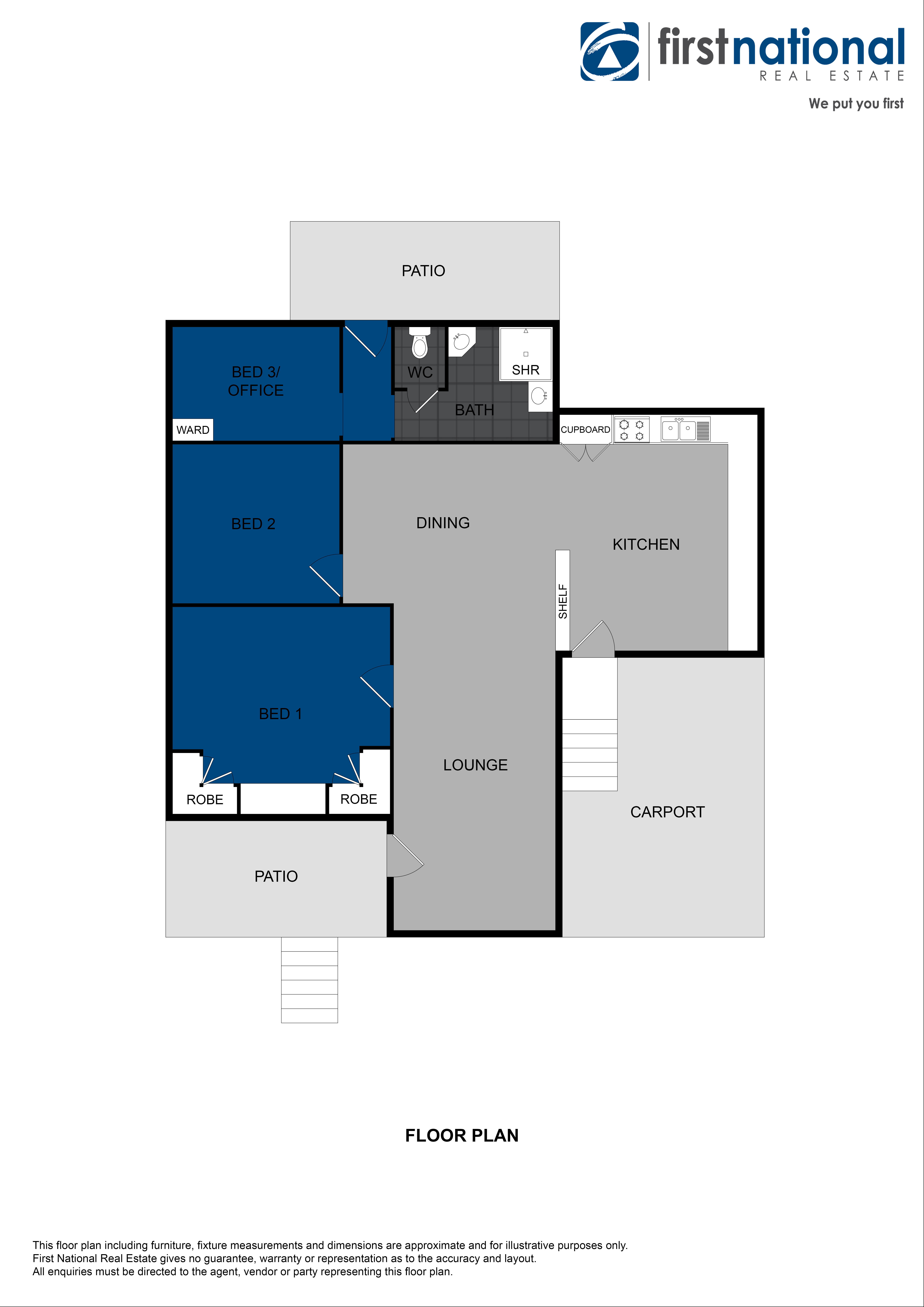 Inside you’ll find two full-sized bedrooms, as well as a third smaller room that could be used either as a bedroom, storage or study. The kitchen layout is spacious, with plenty of room for a dining table. The layout flows openly into the living areas, making it perfect for entertaining.