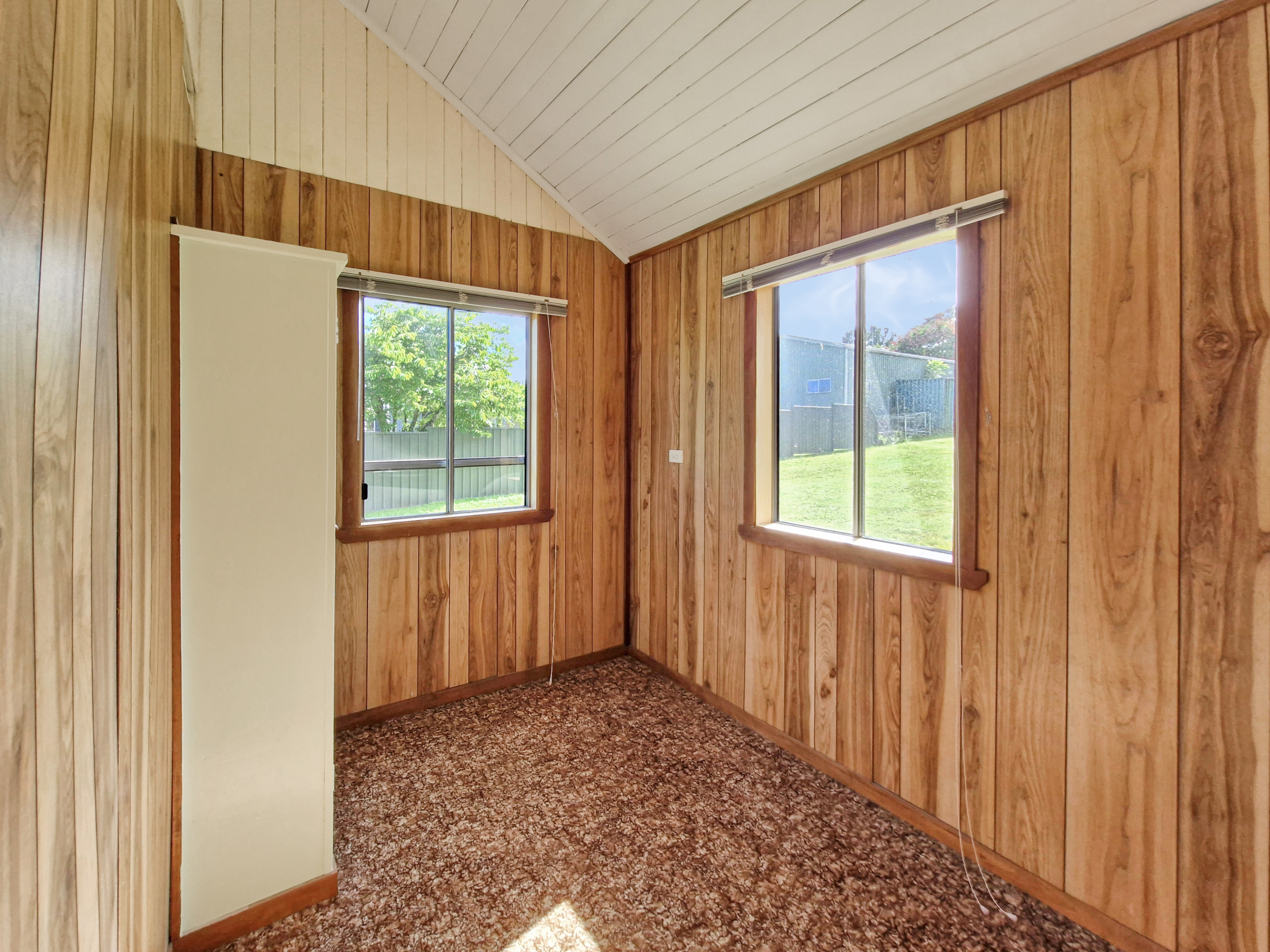 Outside, you’ll find two patios, the front patio enjoying a sunset view to the west, a single-bay carport with an electric roller, a large open workshop area in the backyard, and two existing aviaries that could be converted into chicken coops.