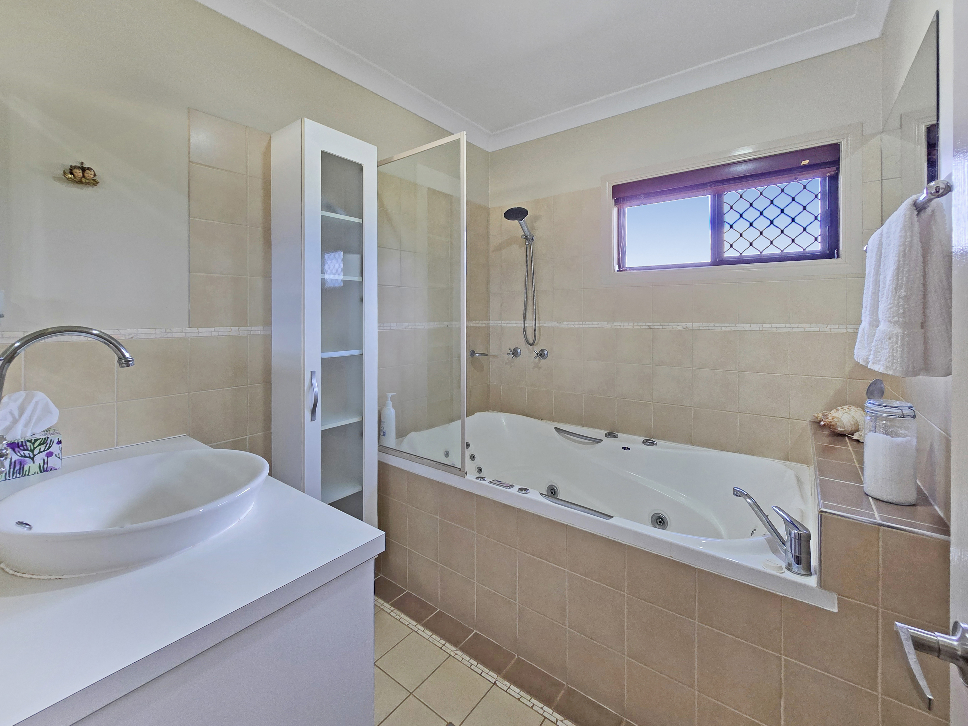 The master bedroom features its own access to the veranda, as well as air conditioning, a walk-in robe, and ensuite. Three additional bedrooms and the main bathroom—with a working spa bath—are located together on the opposite side, making the layout ideal for families or visiting guests.