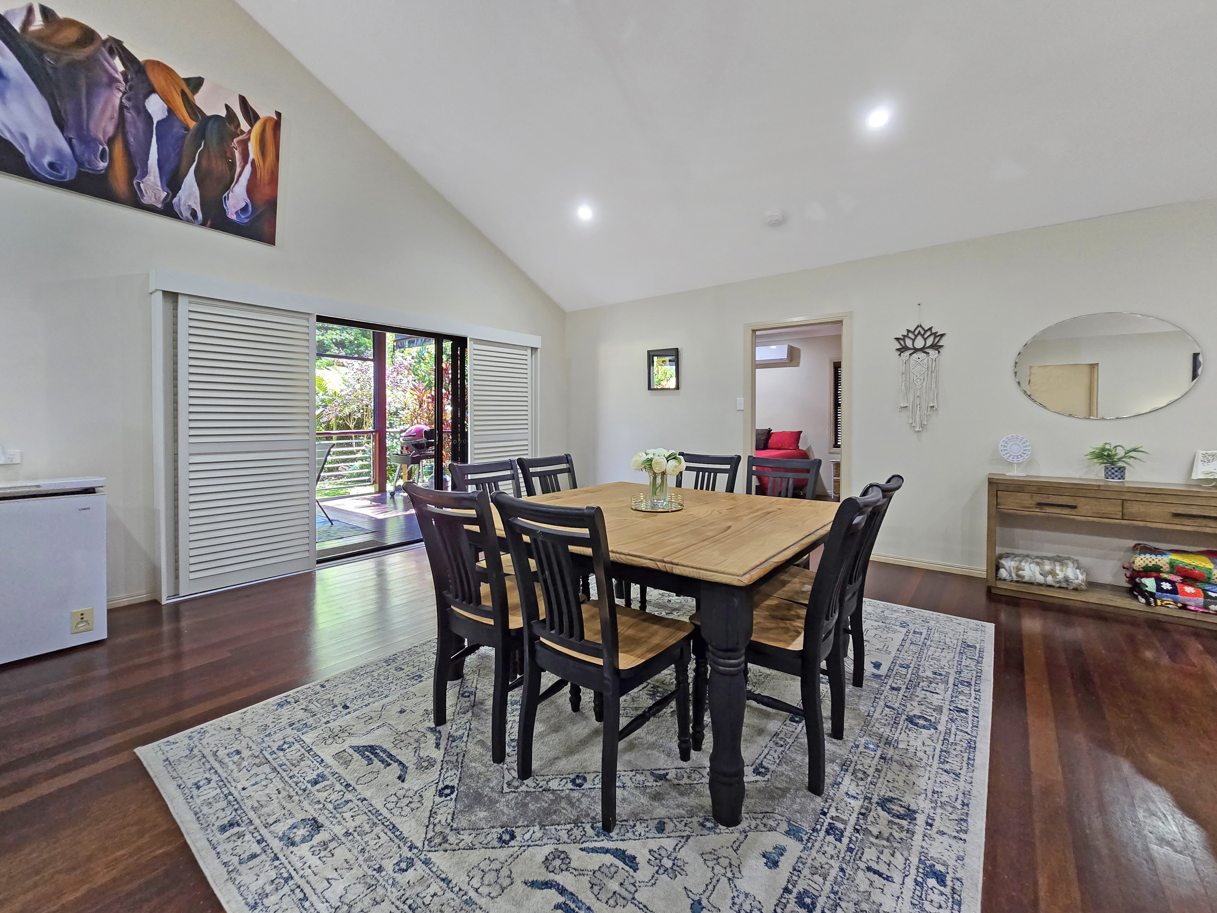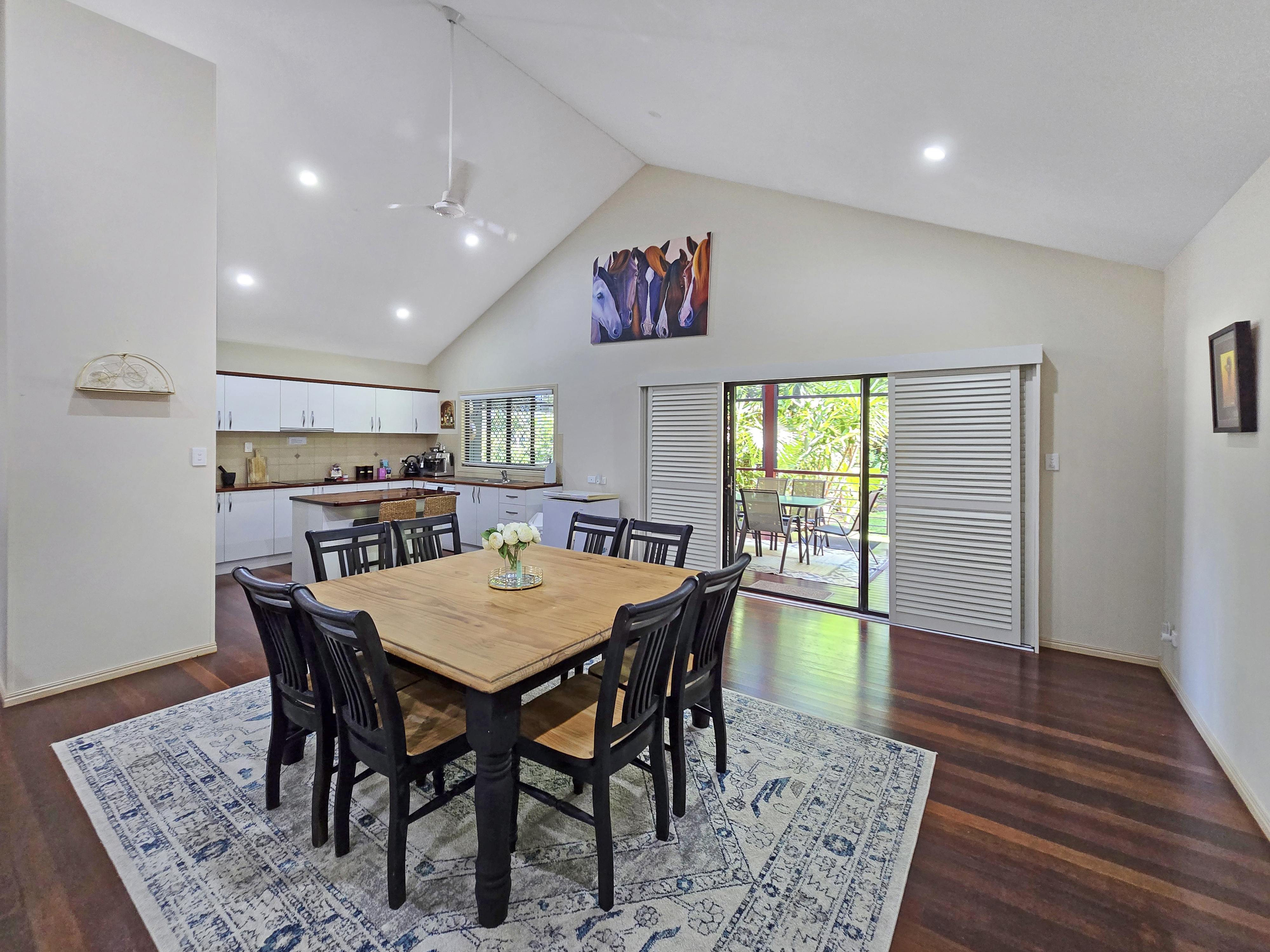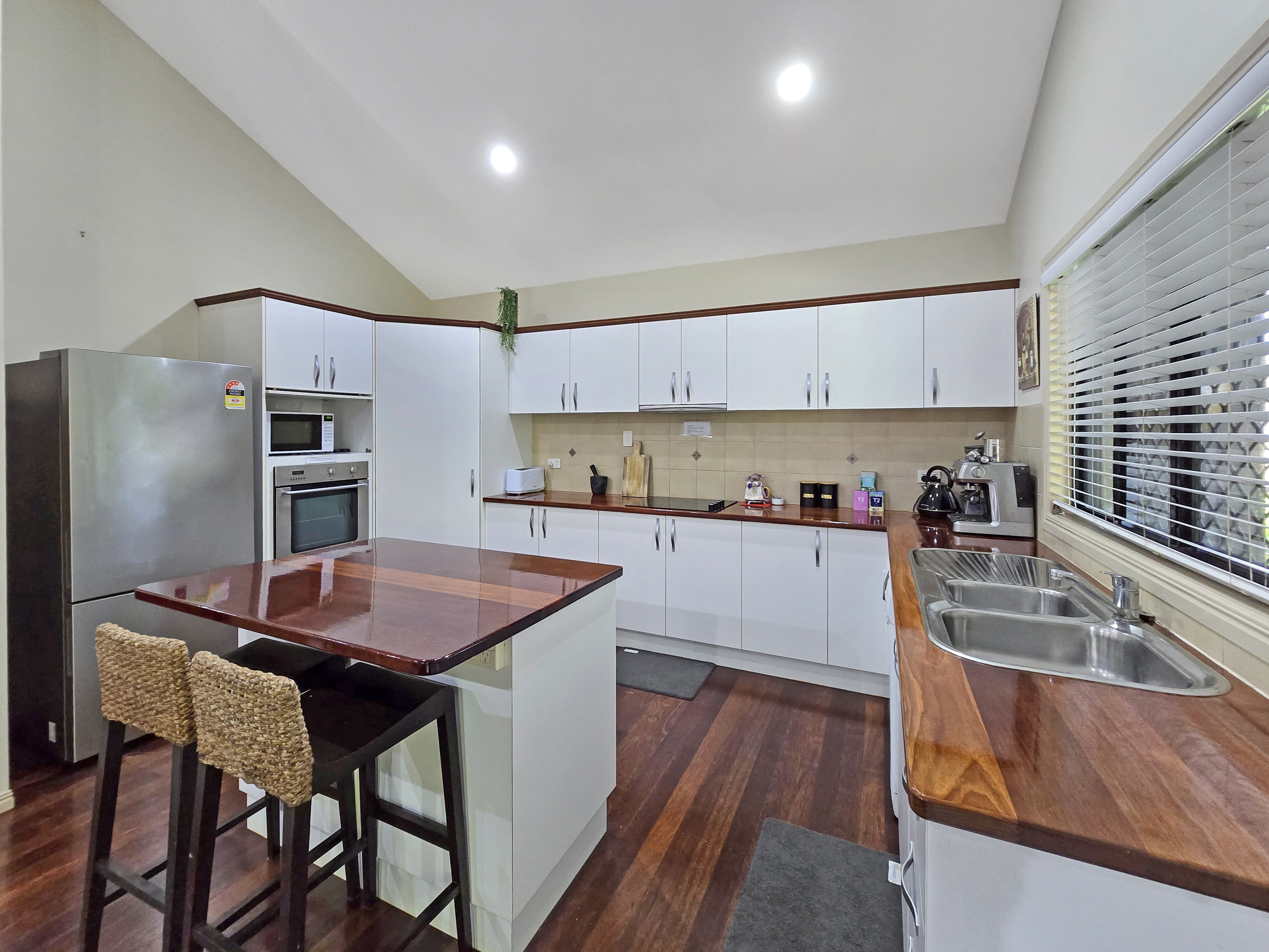 From the moment you step inside, you’ll appreciate the warmth of timber floors, high ceilings, and a spacious, light-filled open-plan living area. The kitchen, living space, and two of the bedrooms open onto the rear veranda, showcasing views of the established resort style gardens. This inviting home offers multiple living zones and thoughtful design, with the master suite privately positioned on one side of the house.