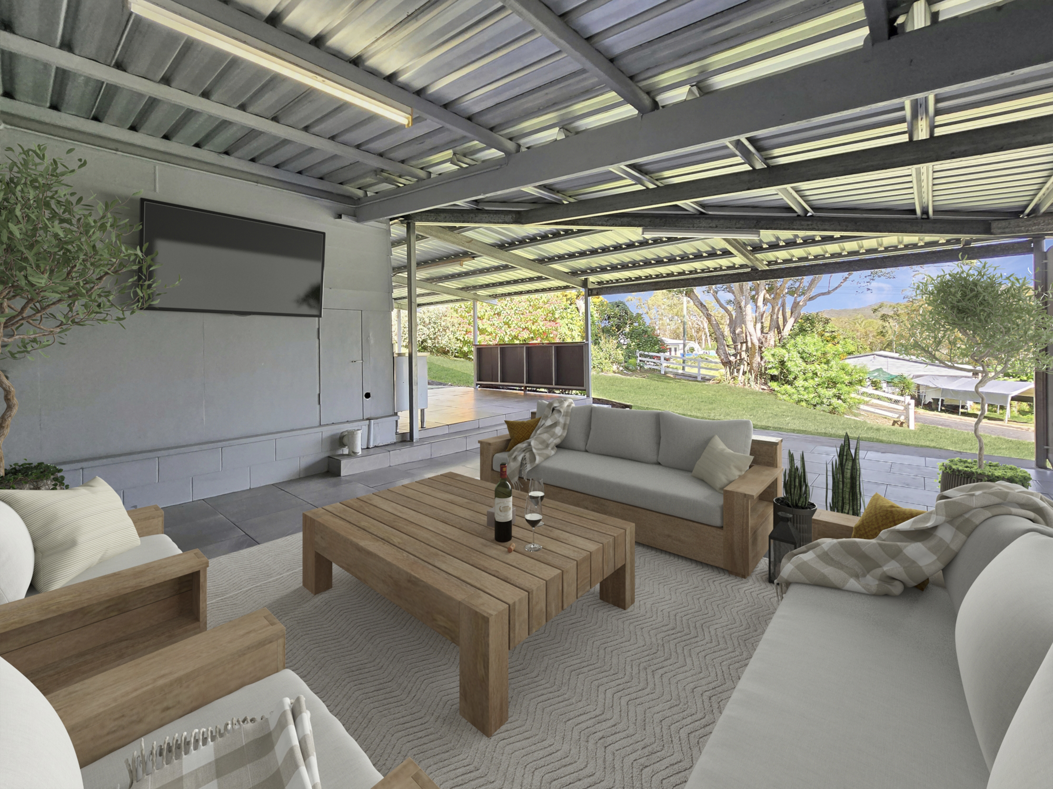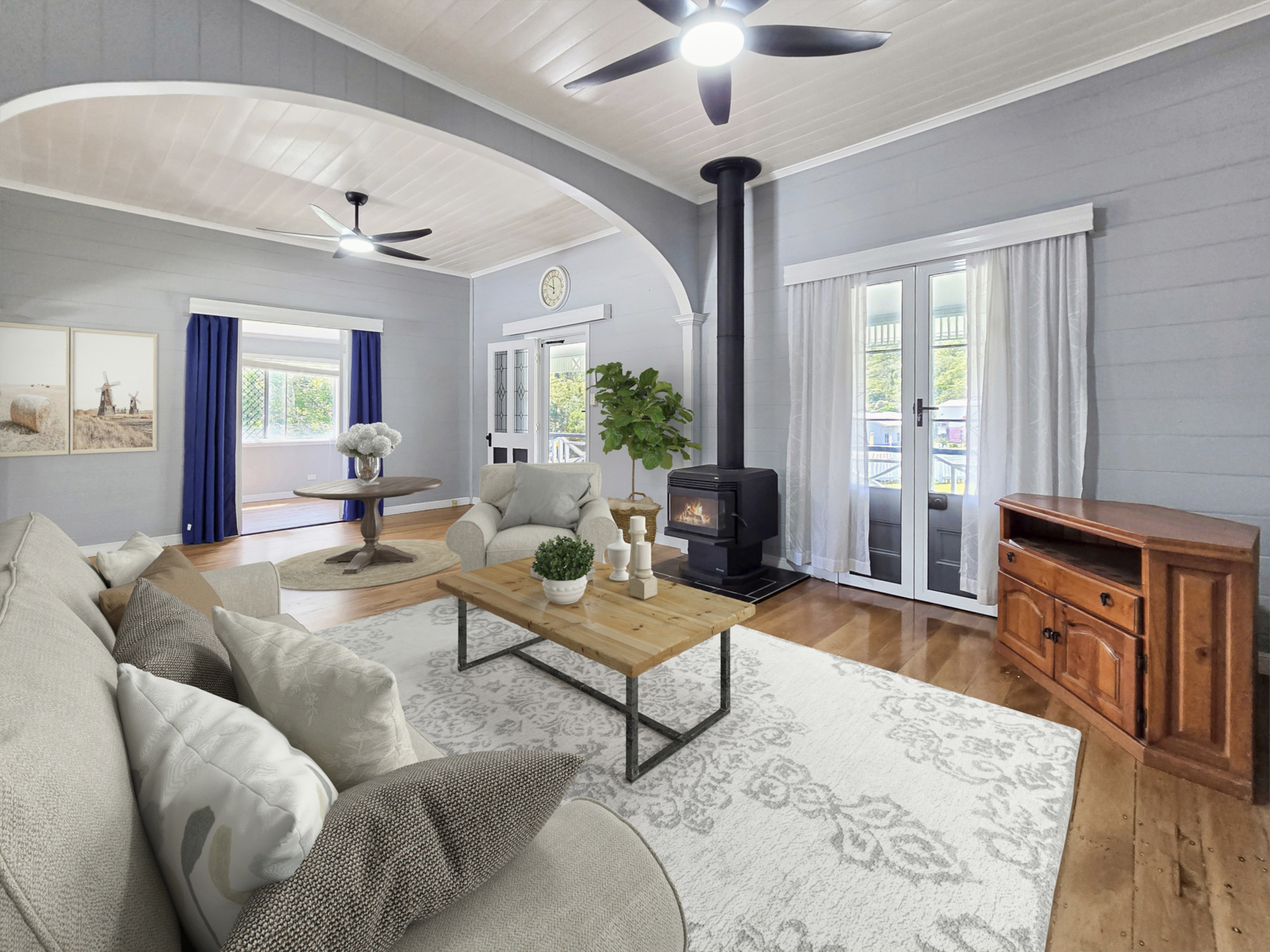 With four bedrooms, two bathrooms, and two separate living areas, there’s ample space to accommodate a large family or visiting guests. The south-east corner bedroom includes its own ensuite, while the master bedroom on the western side offers sunset views over the Herberton Range as well as a large walk-in robe. For year-round comfort, the home features a wood-burning fireplace, air-conditioning, and ceiling fans—keeping you cool in summer and cosy in winter.