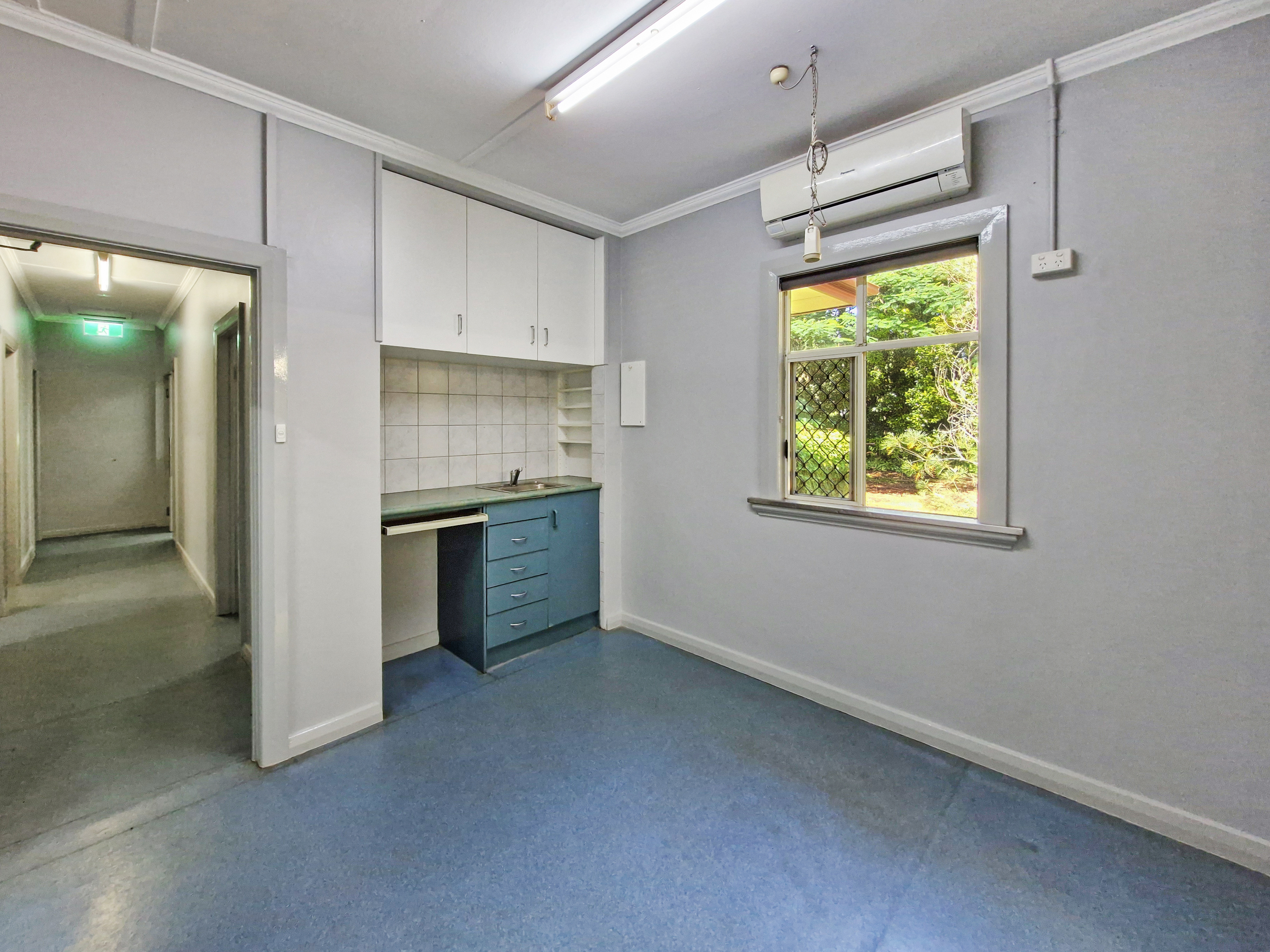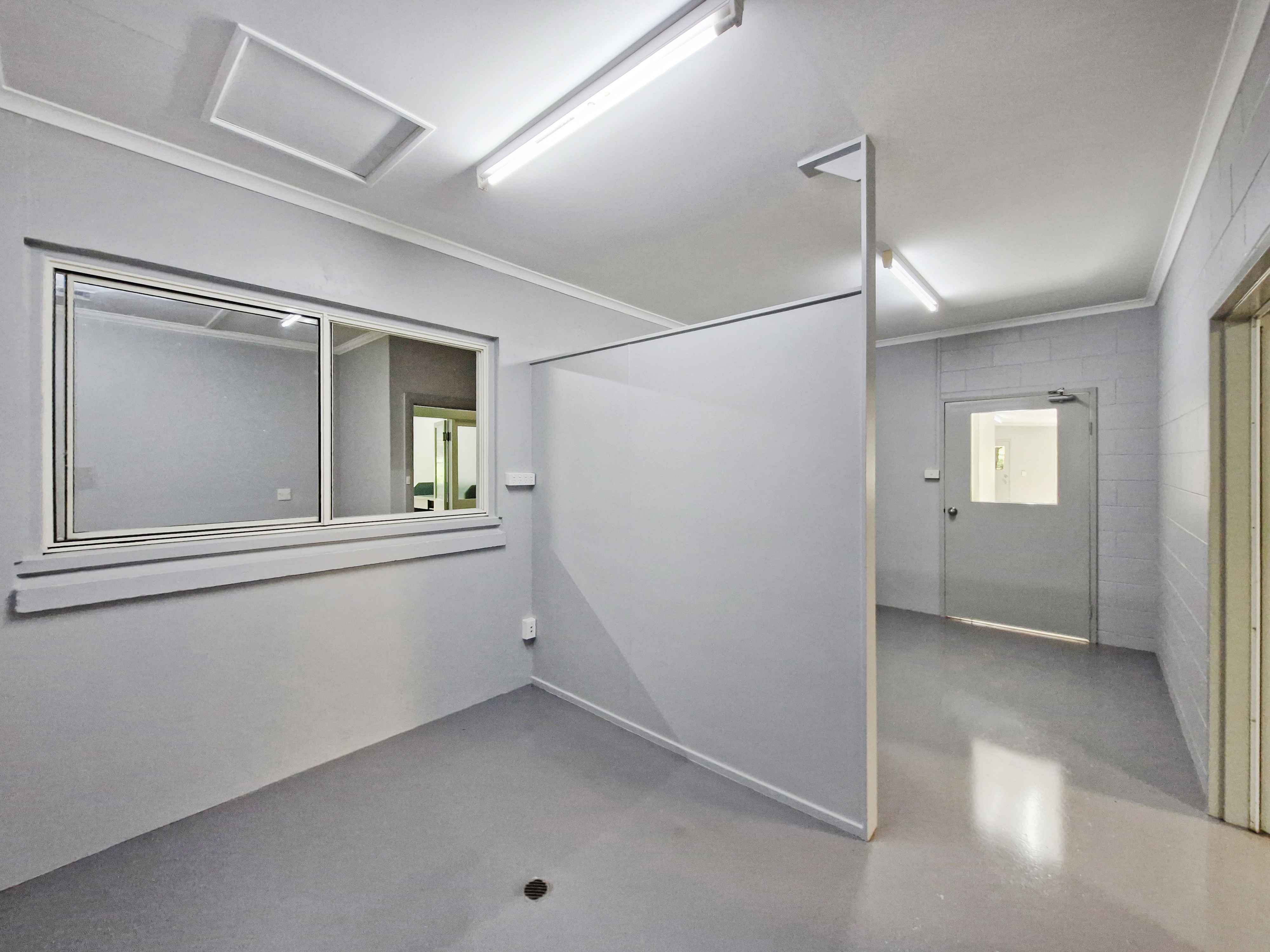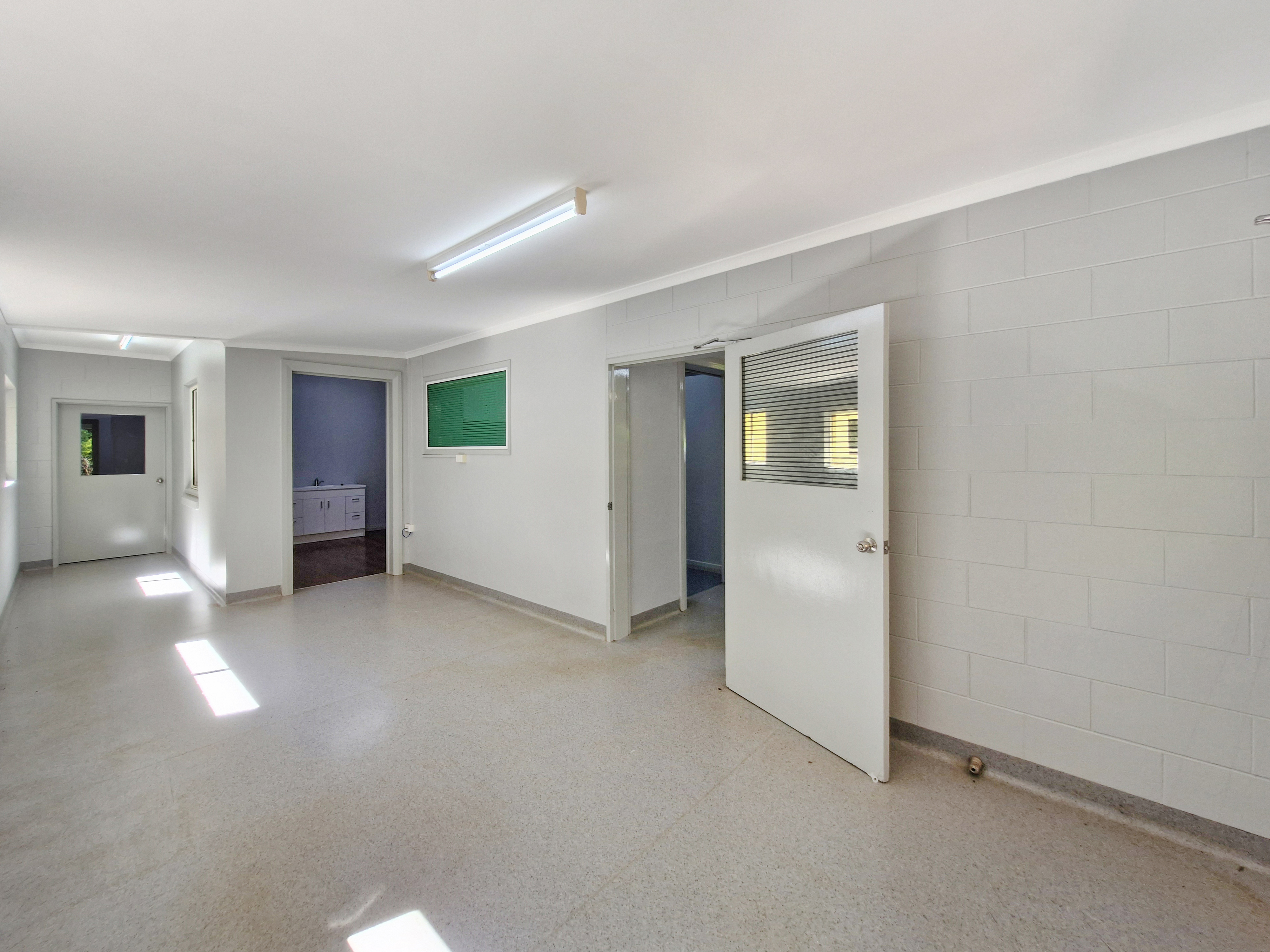 Inside the main building, the left-hand entry opens into a large reception area which adjoins two offices/rooms and a rear utility area. These link through to the building’s many offices, storerooms and wet areas, providing excellent flexibility. Central to the structure is a shower room, complemented by two separate lavatories. Multiple sinks are installed throughout, offering convenient access to water and drainage from several points.