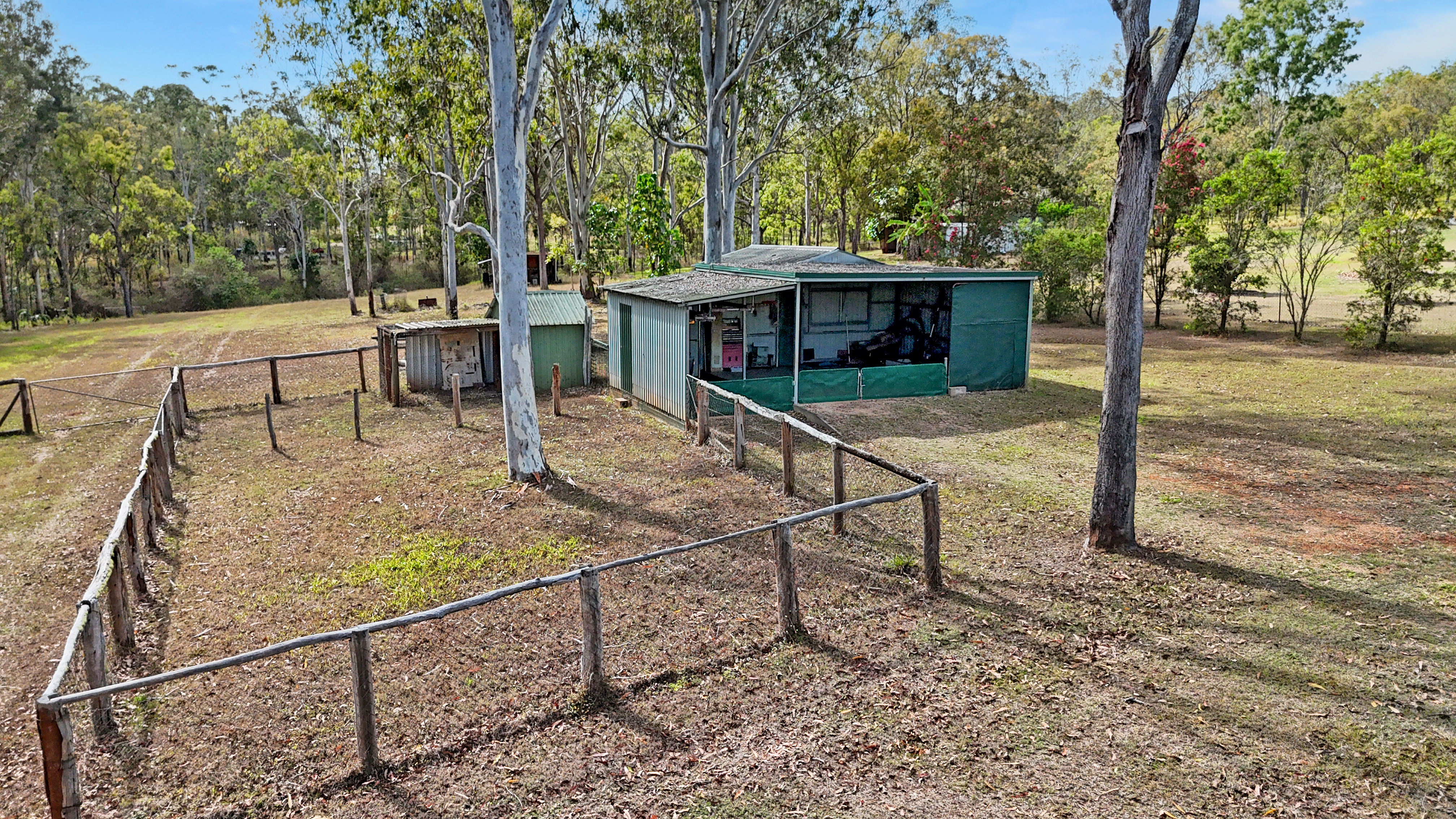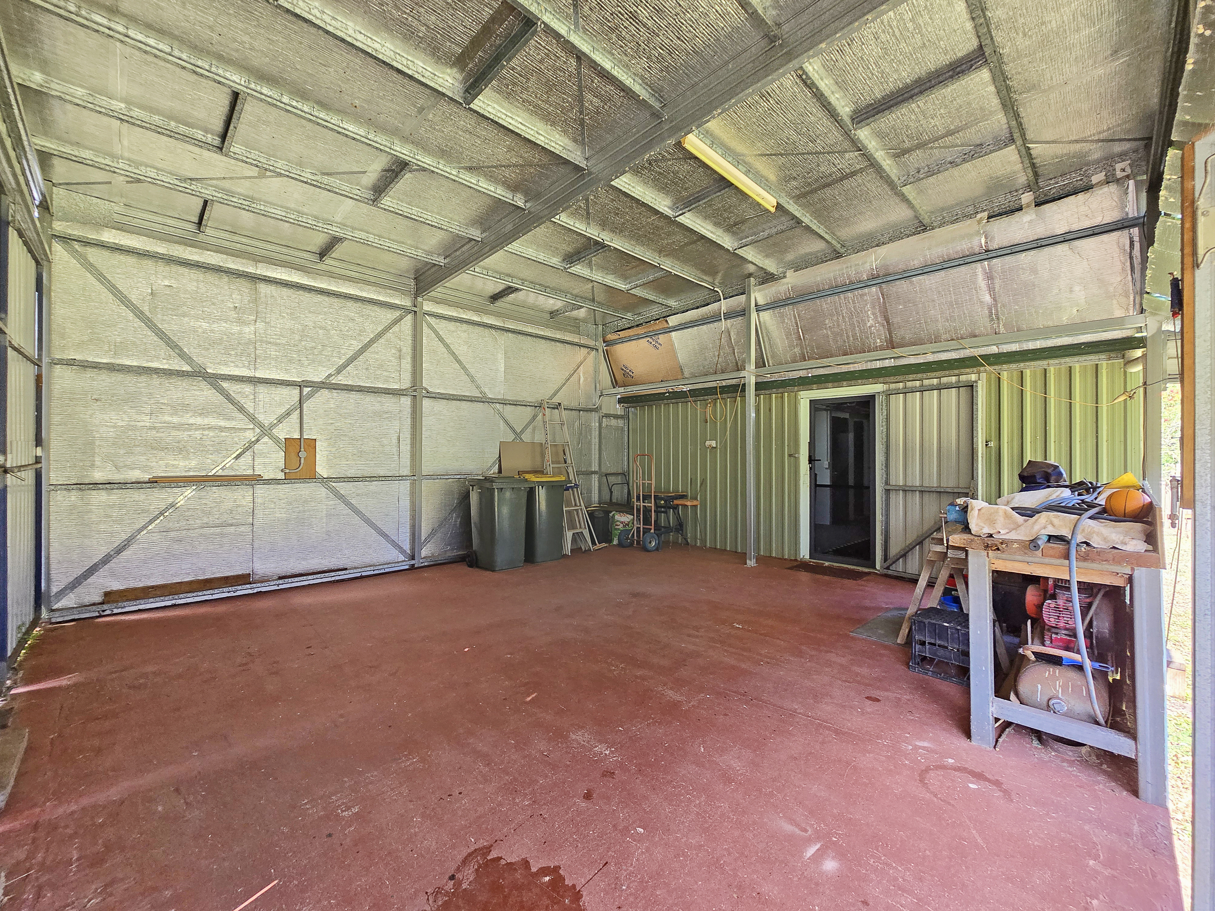 A second smaller shed on the property offers a granny flat-style dwelling with a shower, separate toilet, and kitchenette area—ideal for storage, a workshop, or as additional living quarters if needed. This shed also features a high-clearance carport. Behind the main structures, you’ll find a small storage shed and fenced yards, perfect for pets or hobby farming.