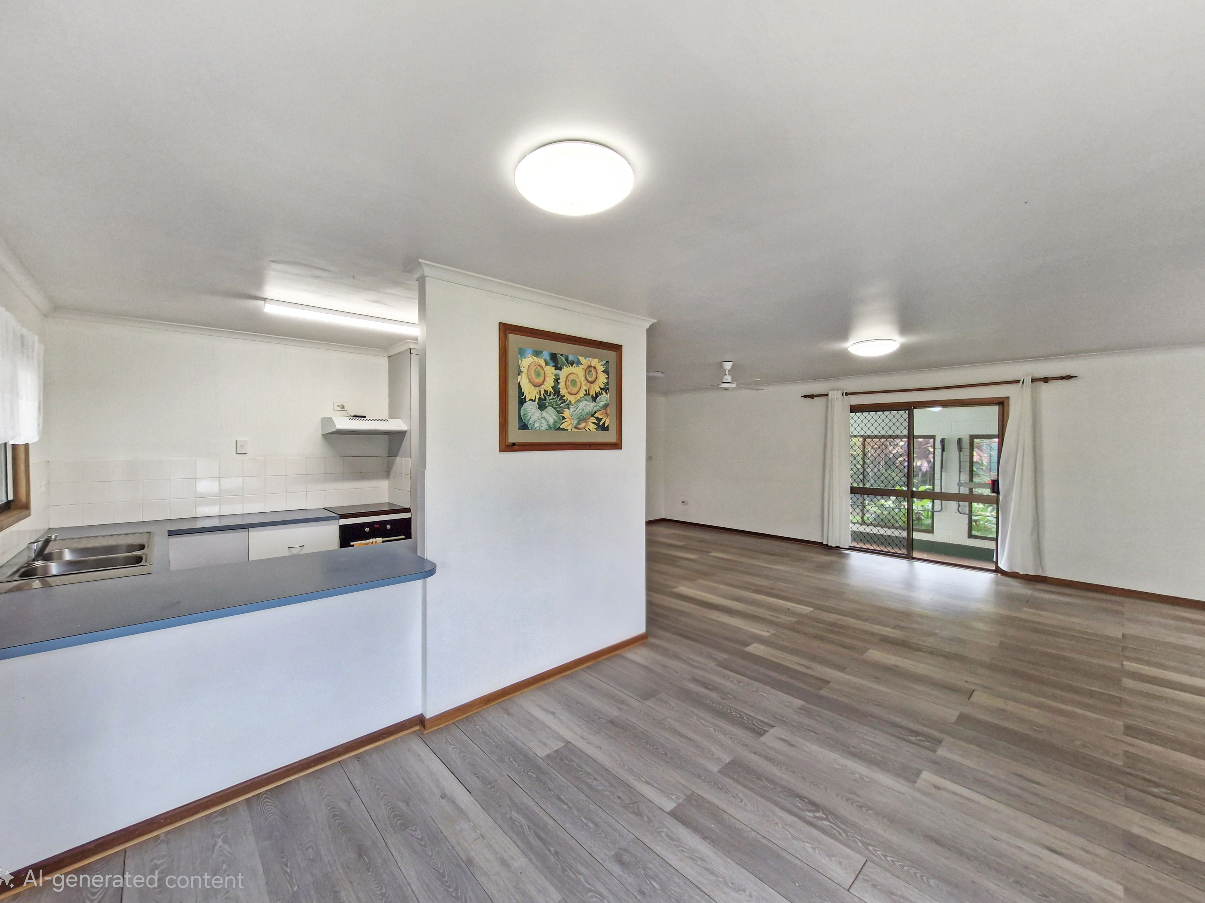 Open-plan kitchen, living & dining area