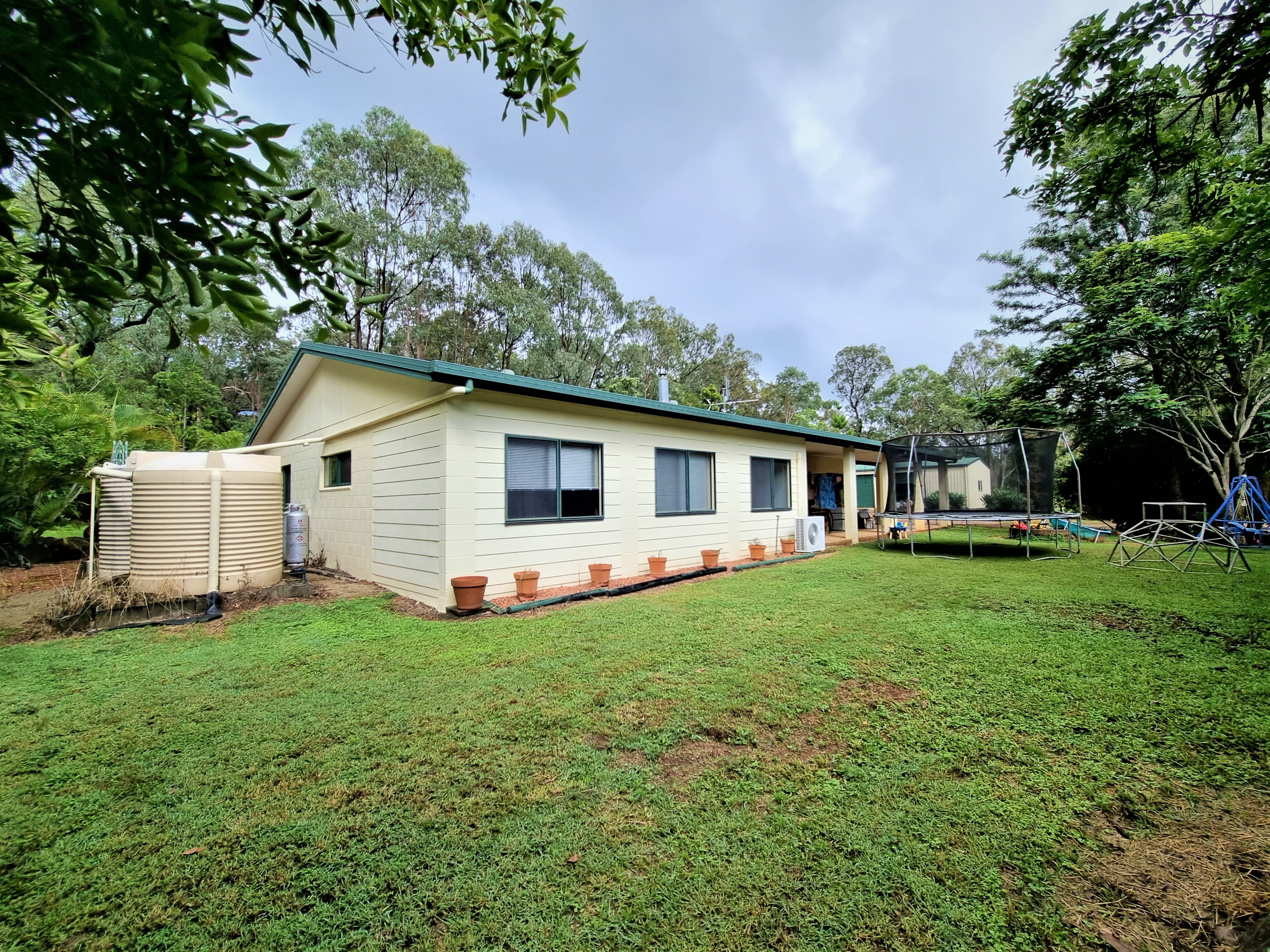 Two rain water tanks at the back of the home give you water security with a pressure pump feeding the outside sink.