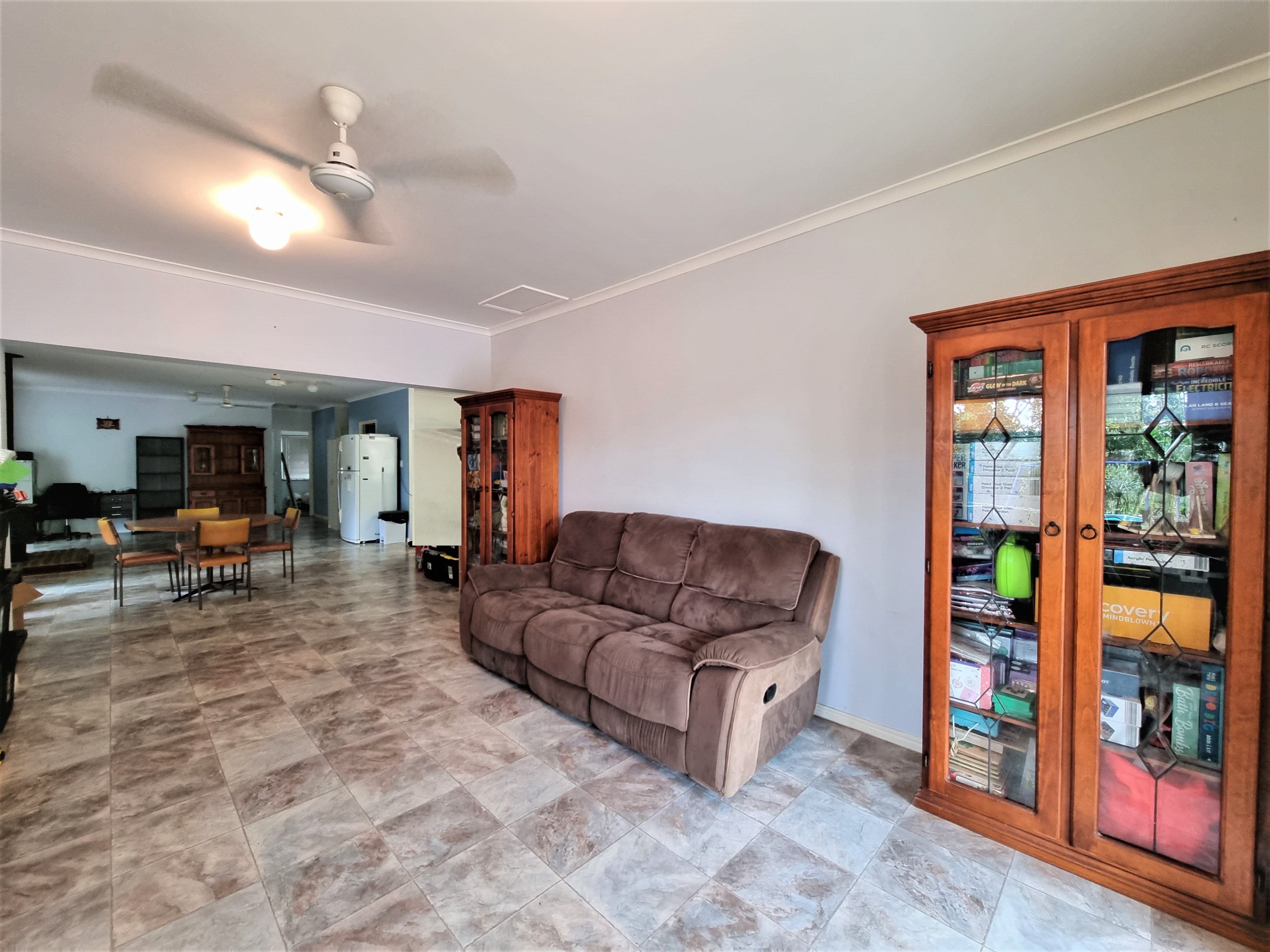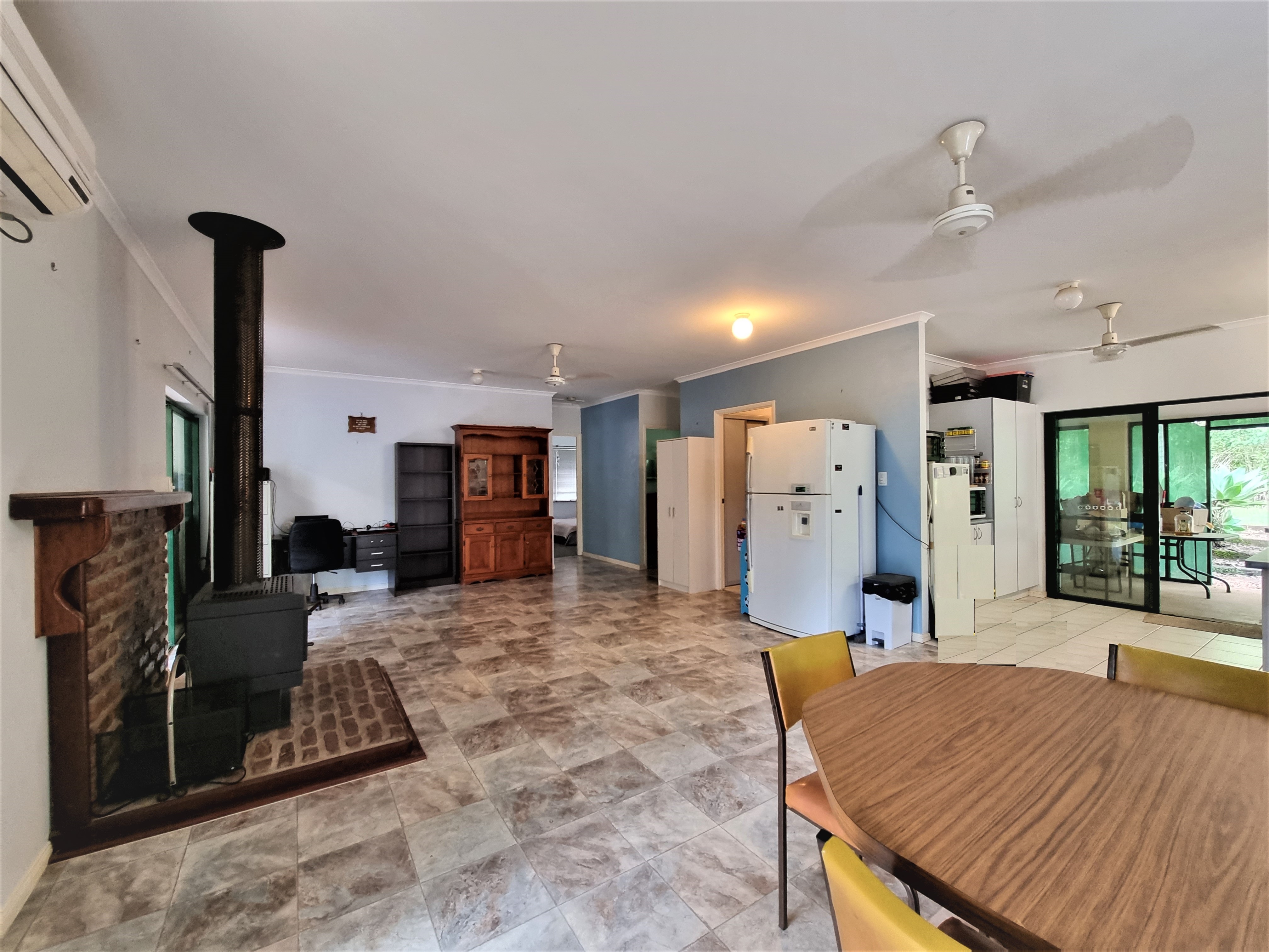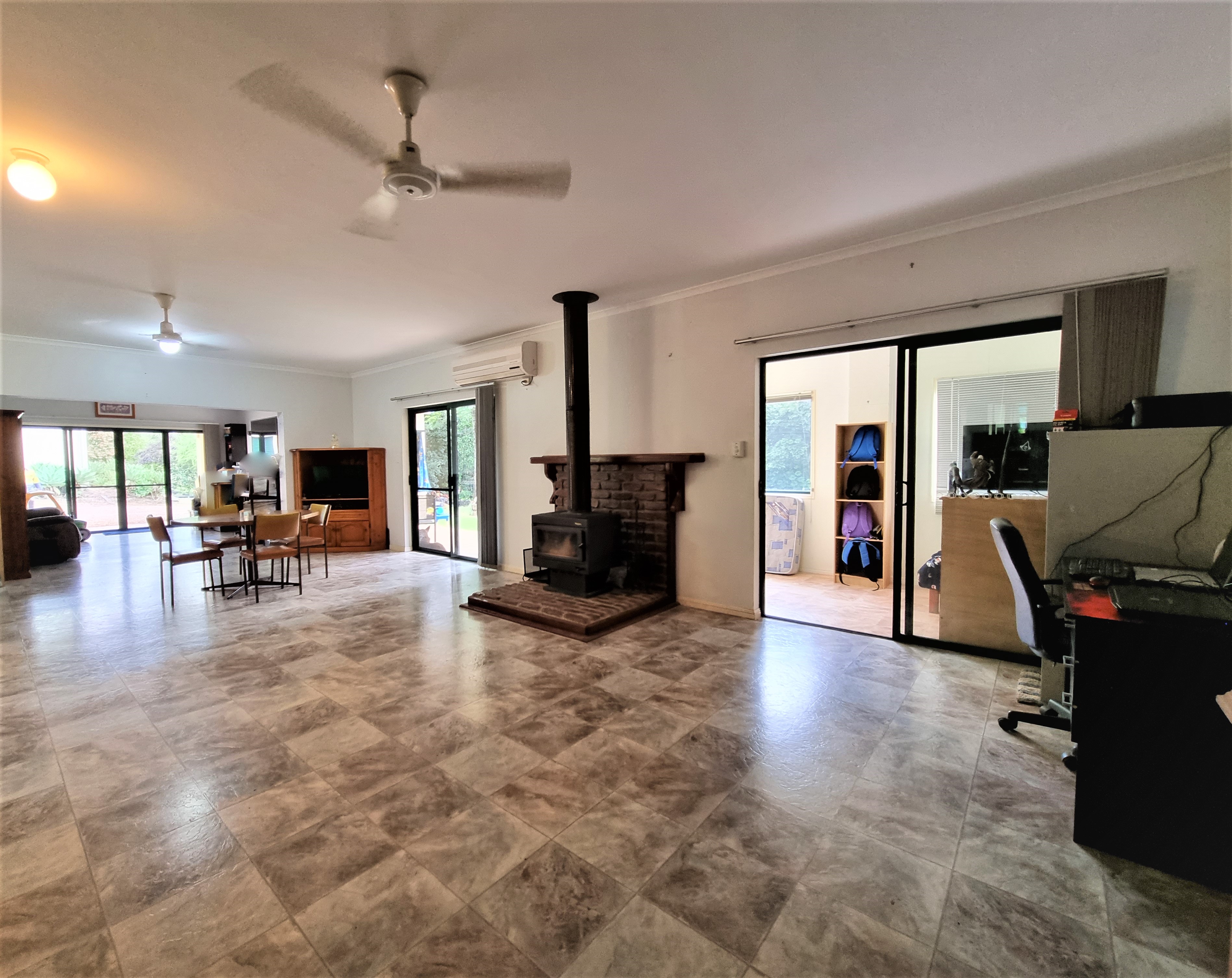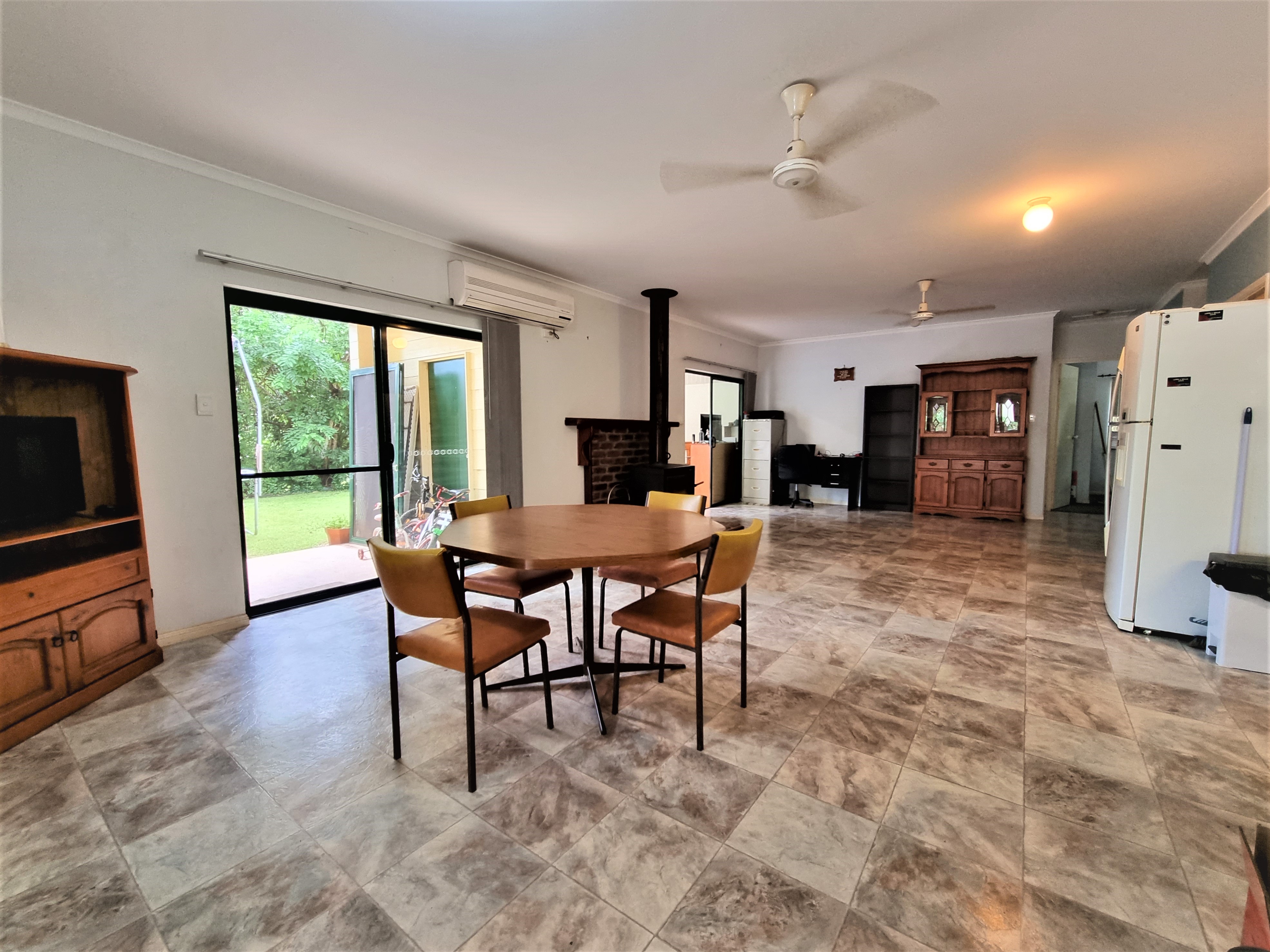 Step into the solid block home to find a formal lounge or games room flowing into the dining area equipped with a split system air conditioner, and a wood heater for chilly South Millstream nights.