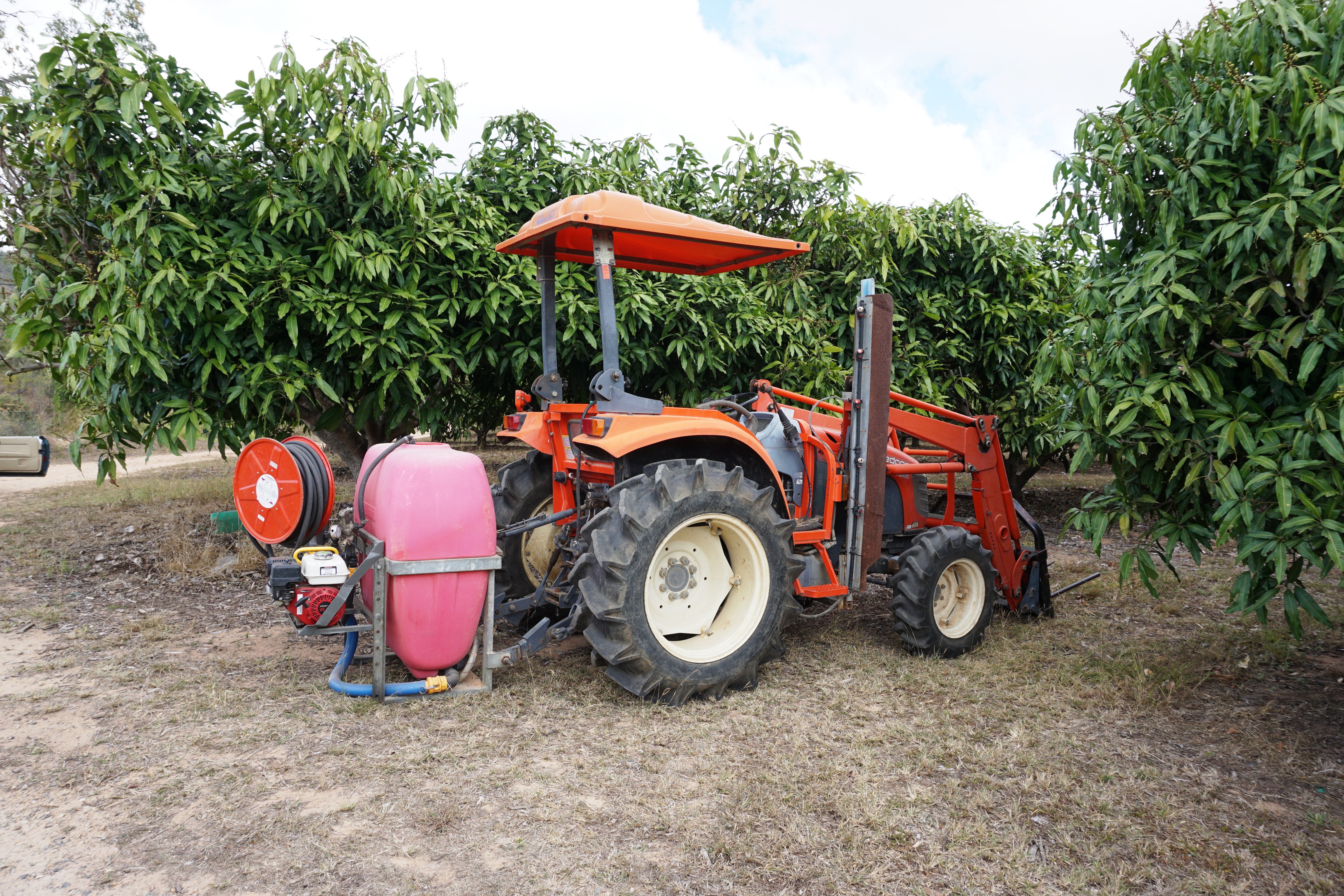 • Tractor and sprayer (red unit).