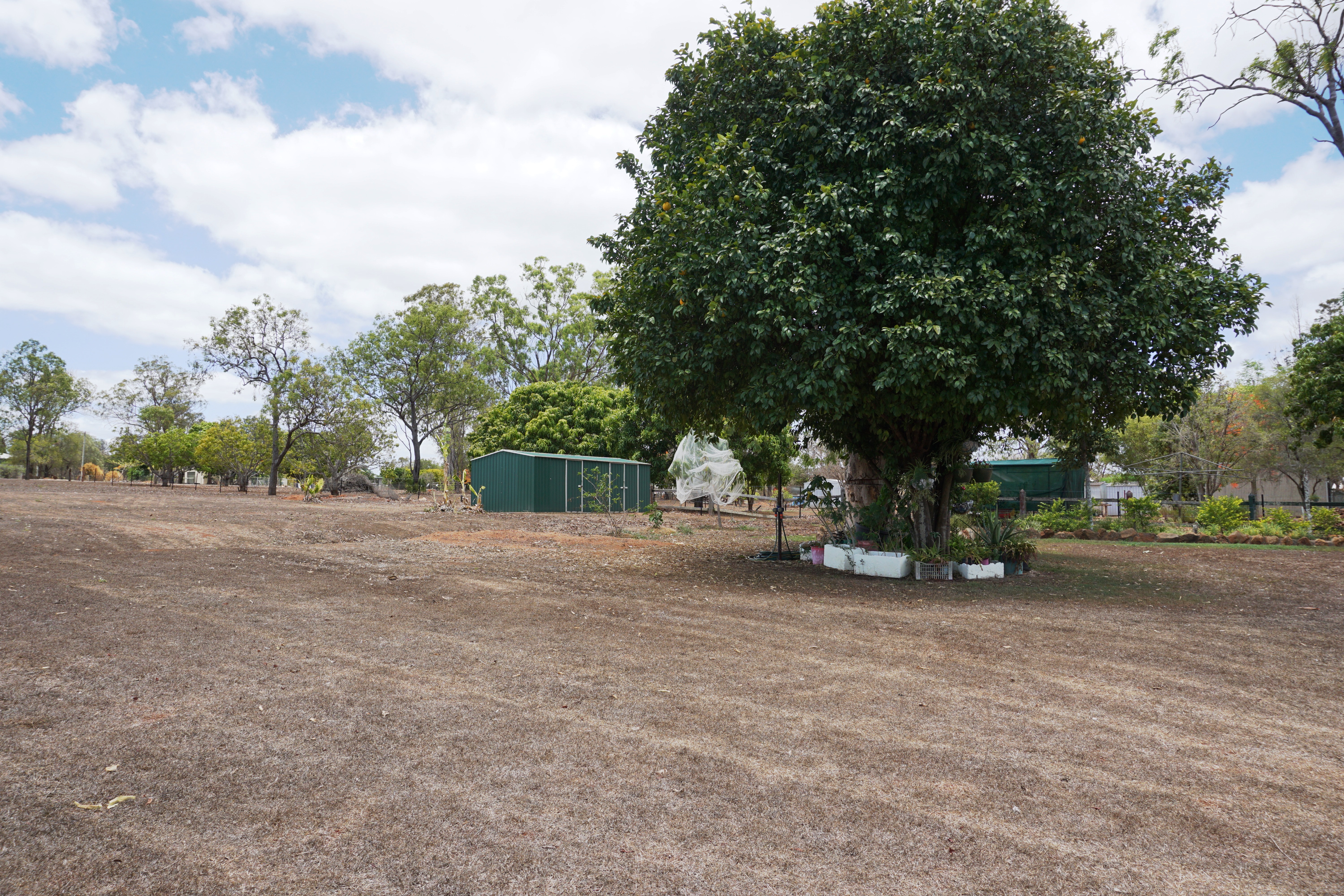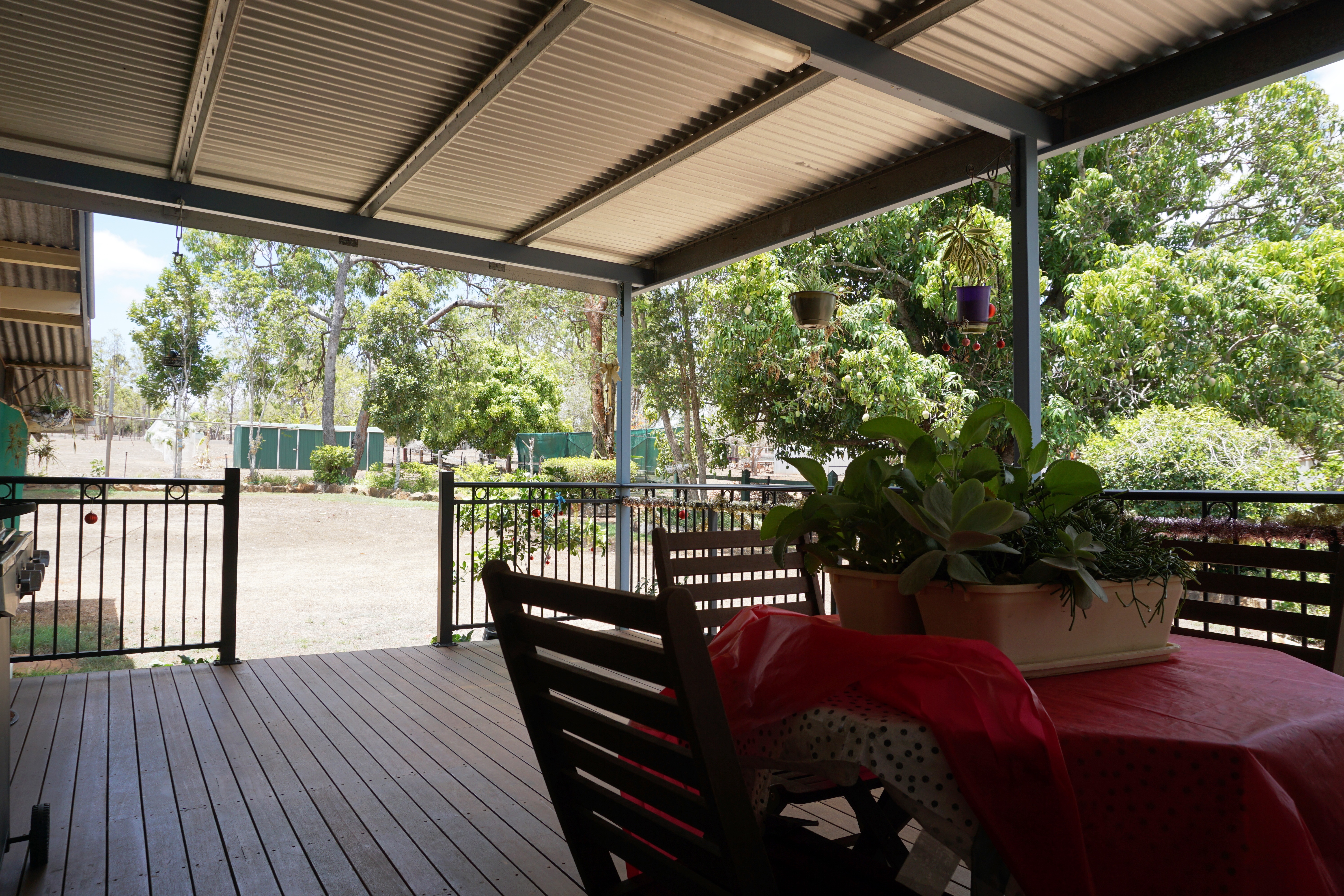 Out in the back yard you will find a fruit orchard with Dragon fruit, Mango, Passion fruit, Guava, Lemon, Mulberries, Avocado, Longon, Banana, Pecan and Chestnut trees, and an 18m² garden shed for all the tools.