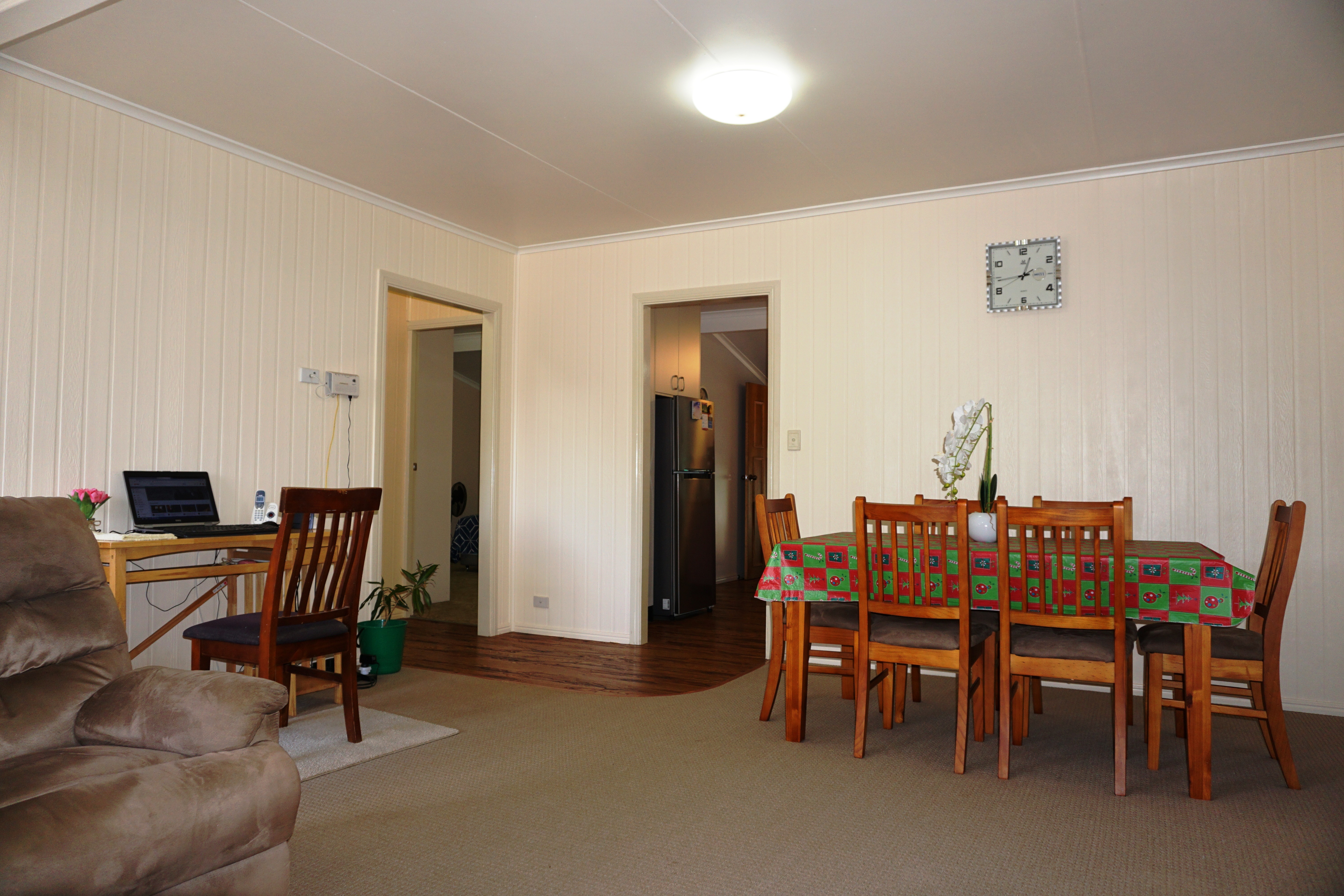 Step in off the 24m² covered timber deck to find an up to date kitchen with gas cook top and oven, breakfast bar, overhead cupboards and large pantry.
