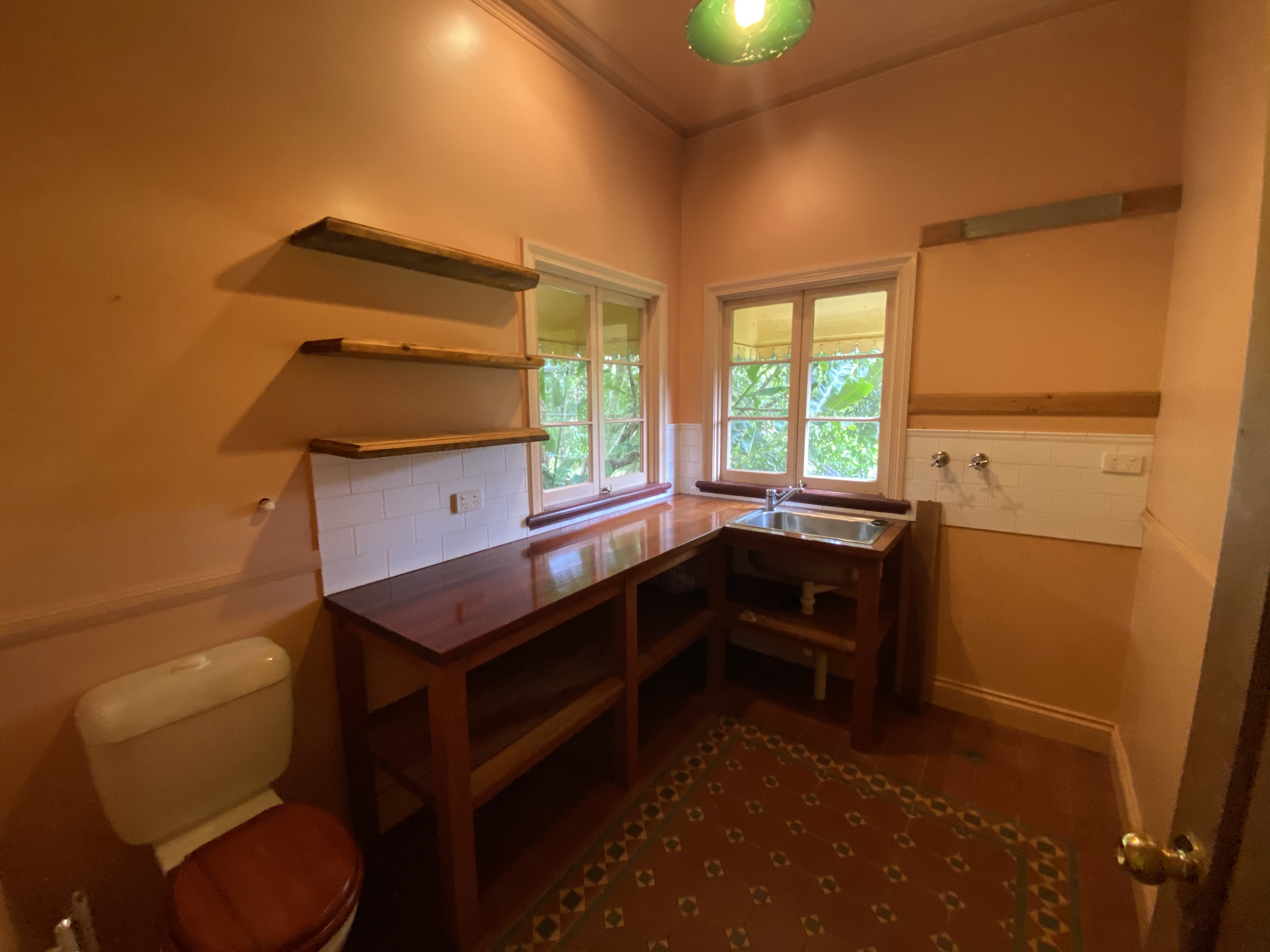 The property features high ceilings, casement and fan light windows with french doors. Encasing the home is a timber deck with multiple access points and a large entertainment area at the rear of the home. Three large bedrooms,separate office, with separate laundry and bathroom with a claw foot bath. There is a 2 bay powered shed – the ultimate man cave as well as a single bay shed with lean to. All of this is situated on an acre in the Tolga area.