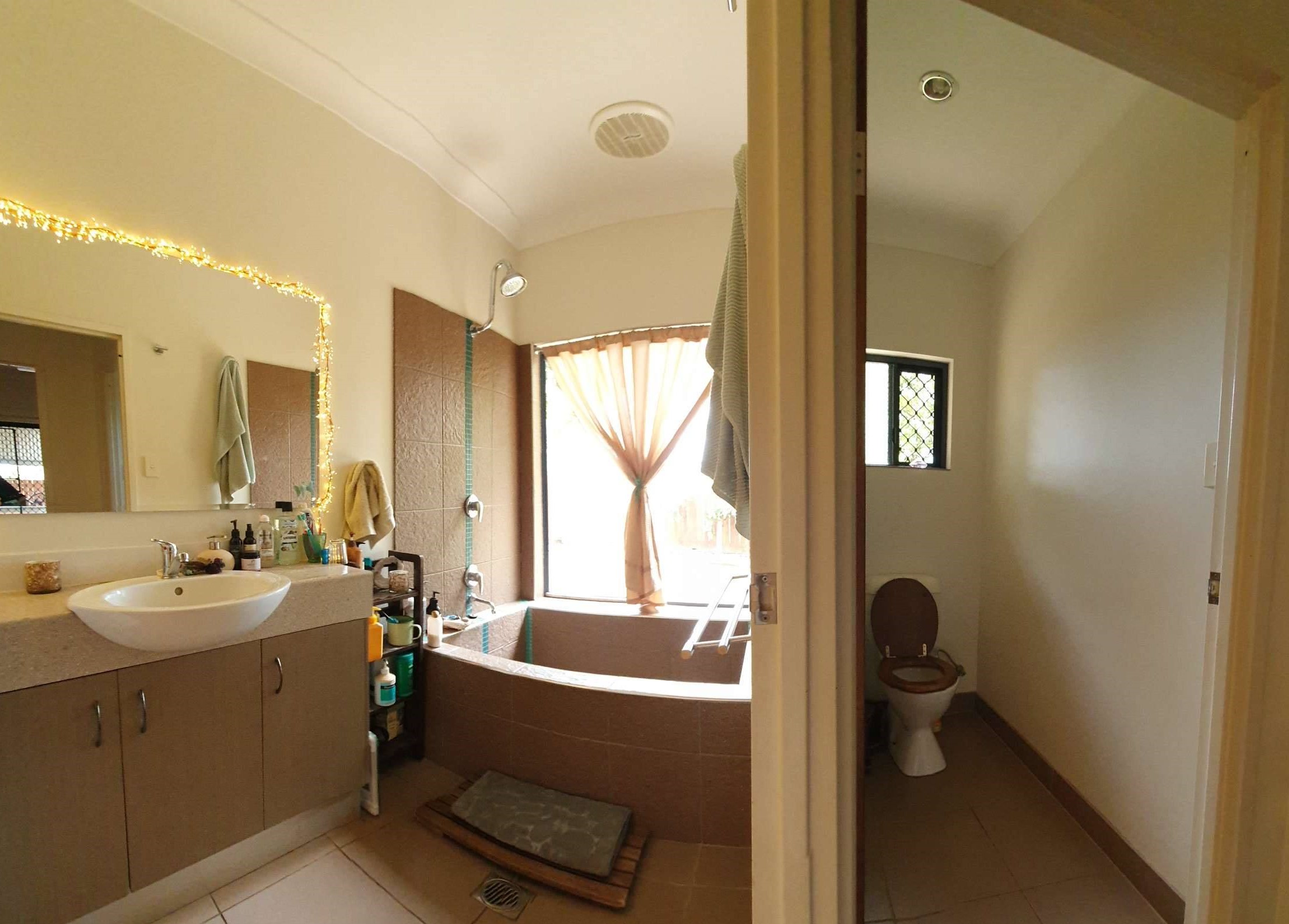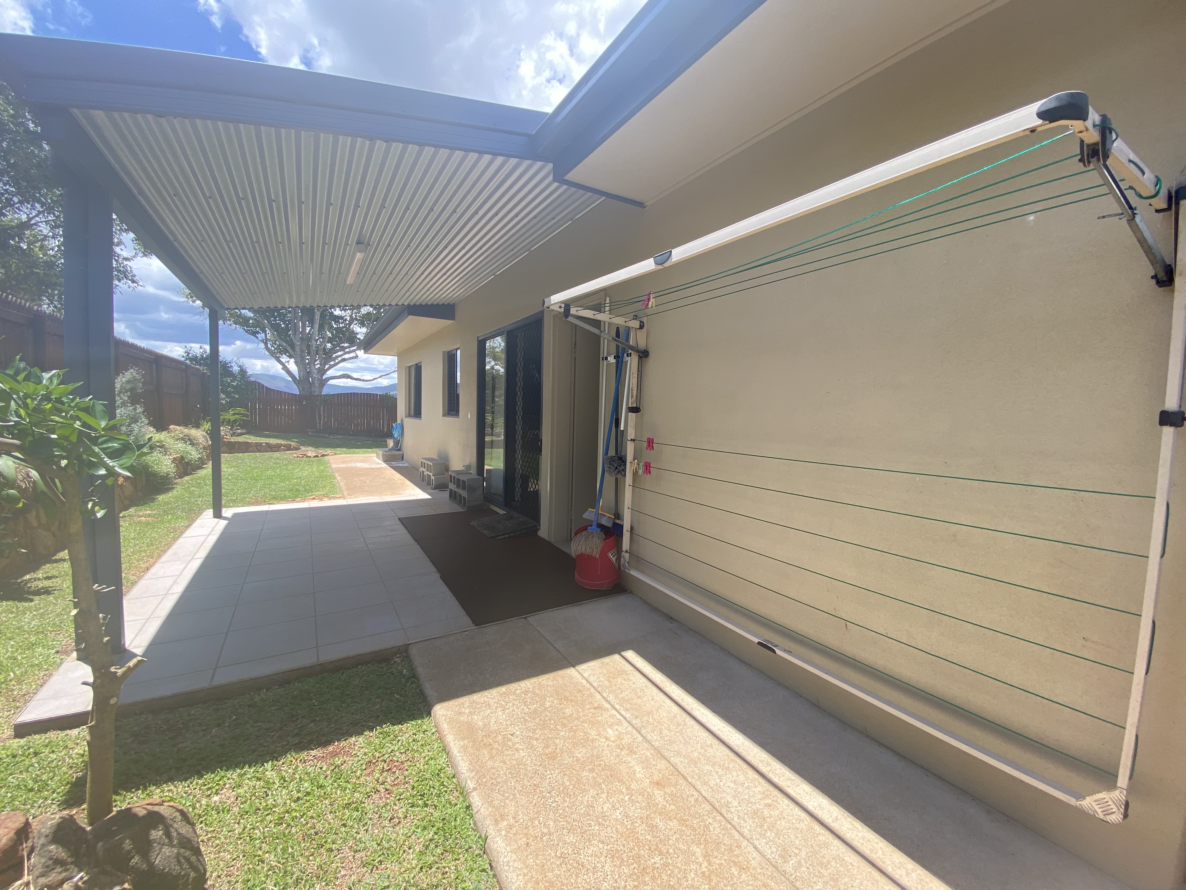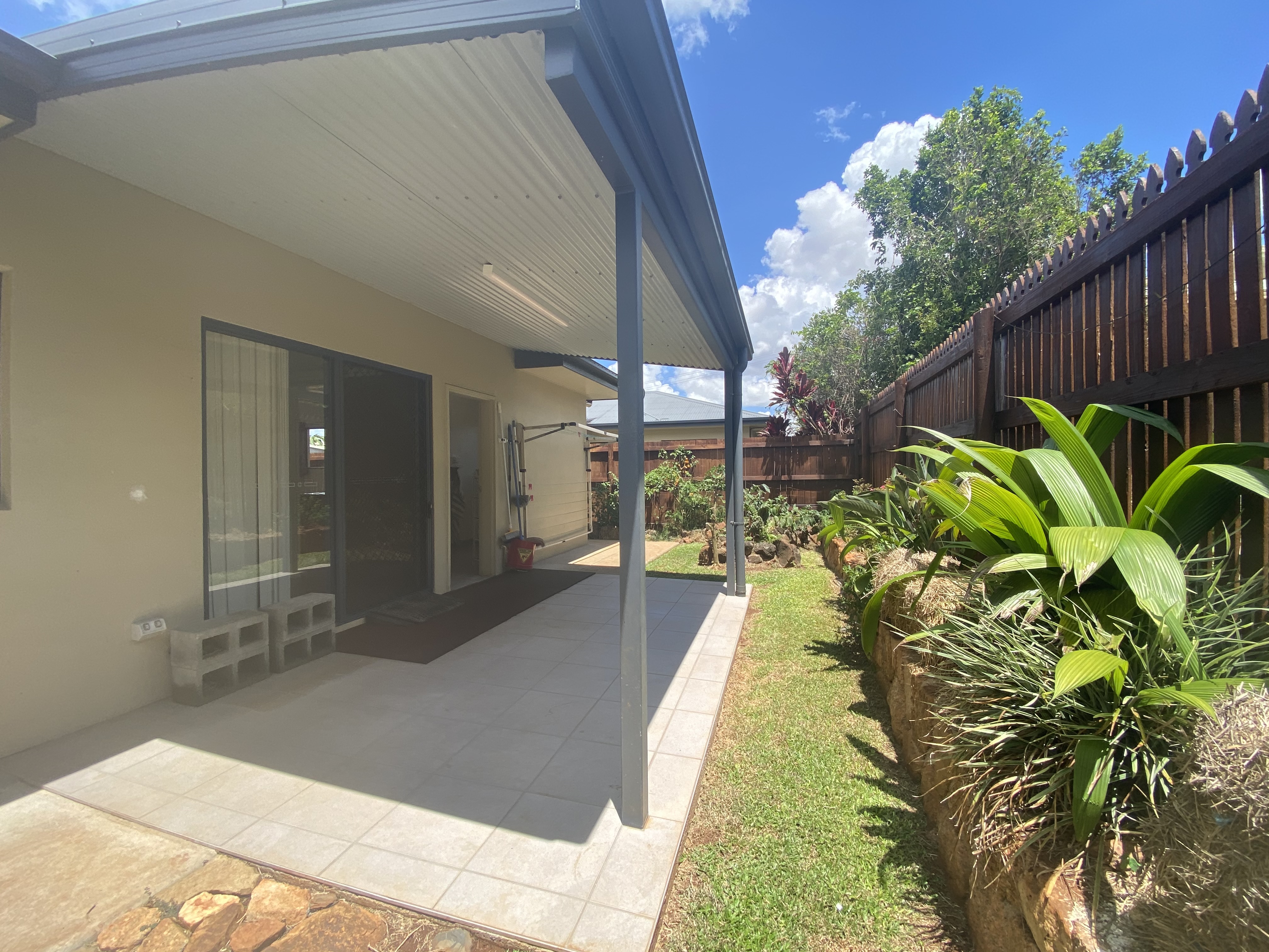 This modern low maintenance home consists of two good sized bedrooms, with built-in robes, security screens and ceiling fans. Also, a large rumpus room opens to the front of the house. Open plan living with dining and kitchen opens to a covered entertainment area and the backyard. A dishwasher and fridge are included, and there is a separate laundry. The driveway leads to private parking. A large 6 x 7m high clearance carport with remote opening door provides secure fully covered access to the front of the house and also through to the back yard – great in wet season! Fully fenced yard. Wide wrap-around footpath that fully encircles the house for accessibility. Well established gardens with mountain views, and sprinkler system. Basic yard maintenance included. Pet considered on application. No smoking. Ample opportunity for the right applicant/s.