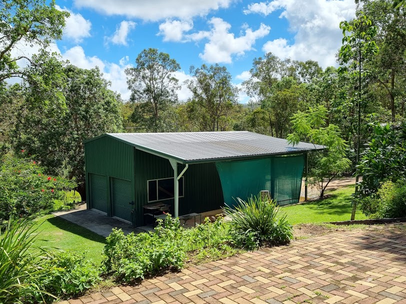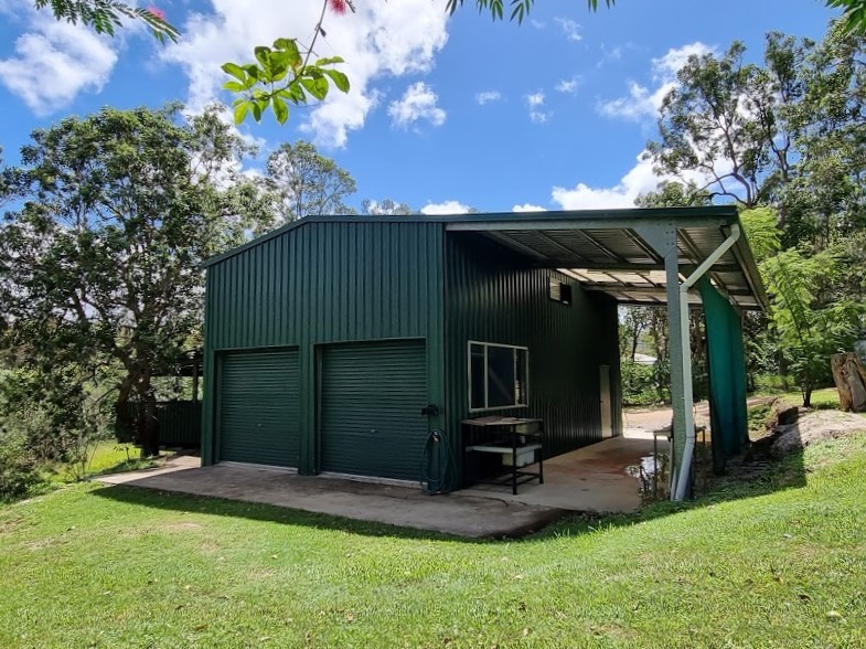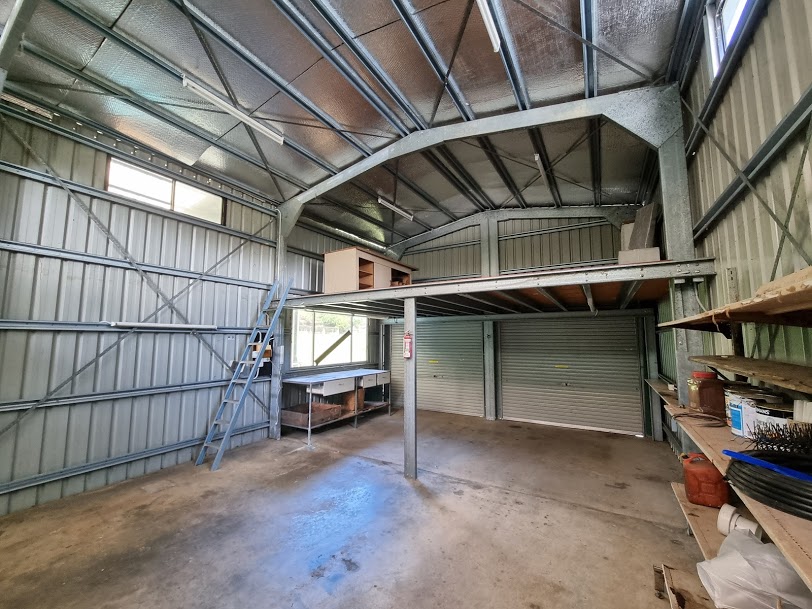 The large powered shed with mezzanine floor and extra wide double carport below the house has room for all the toys and tools.
