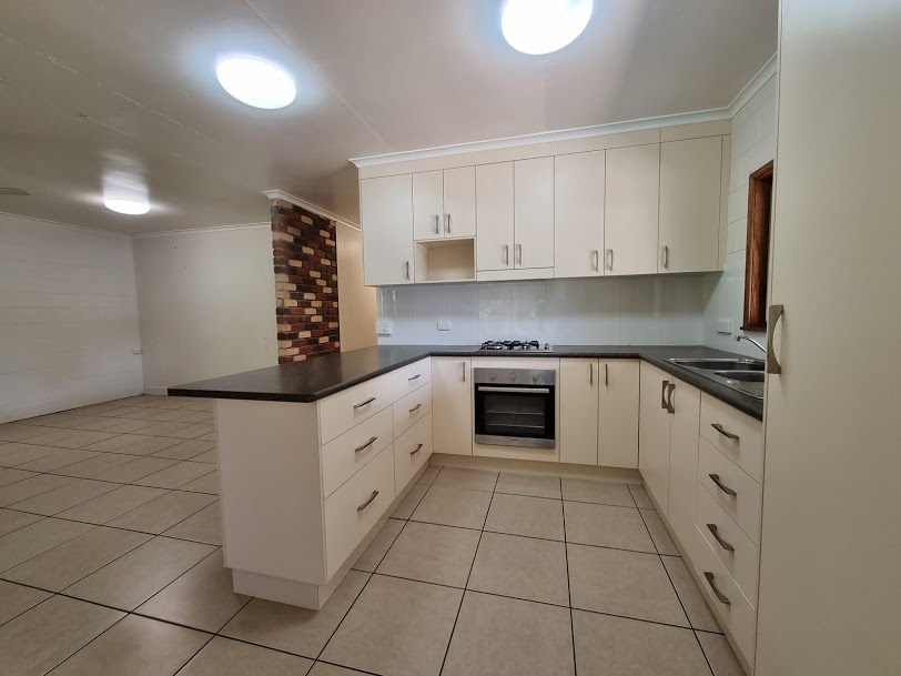 Alight from the carport, stroll along the covered veranda and enter through the front door to find an open plan living area with a modern kitchen, featuring a breakfast bar, overhead cupboards, gas cooktop and pantry.