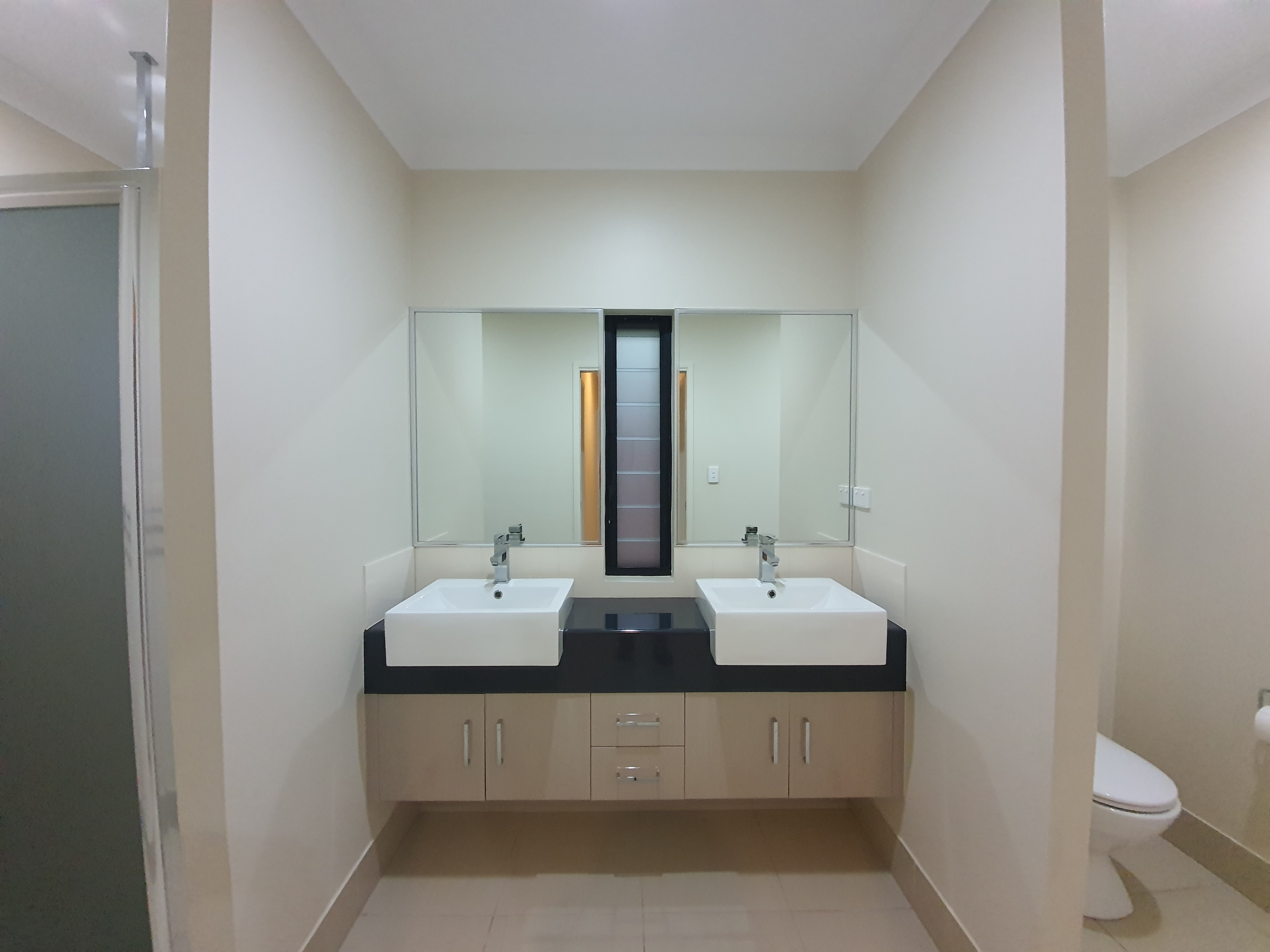 The master bedrooms boast not only a walk in robe but also his and hers built in wardrobe. In addition to the outdoor patio the ensuite is massive and resembles 5 star holiday vibes with a waterfall shower head, double basin and 2 person spa bath.