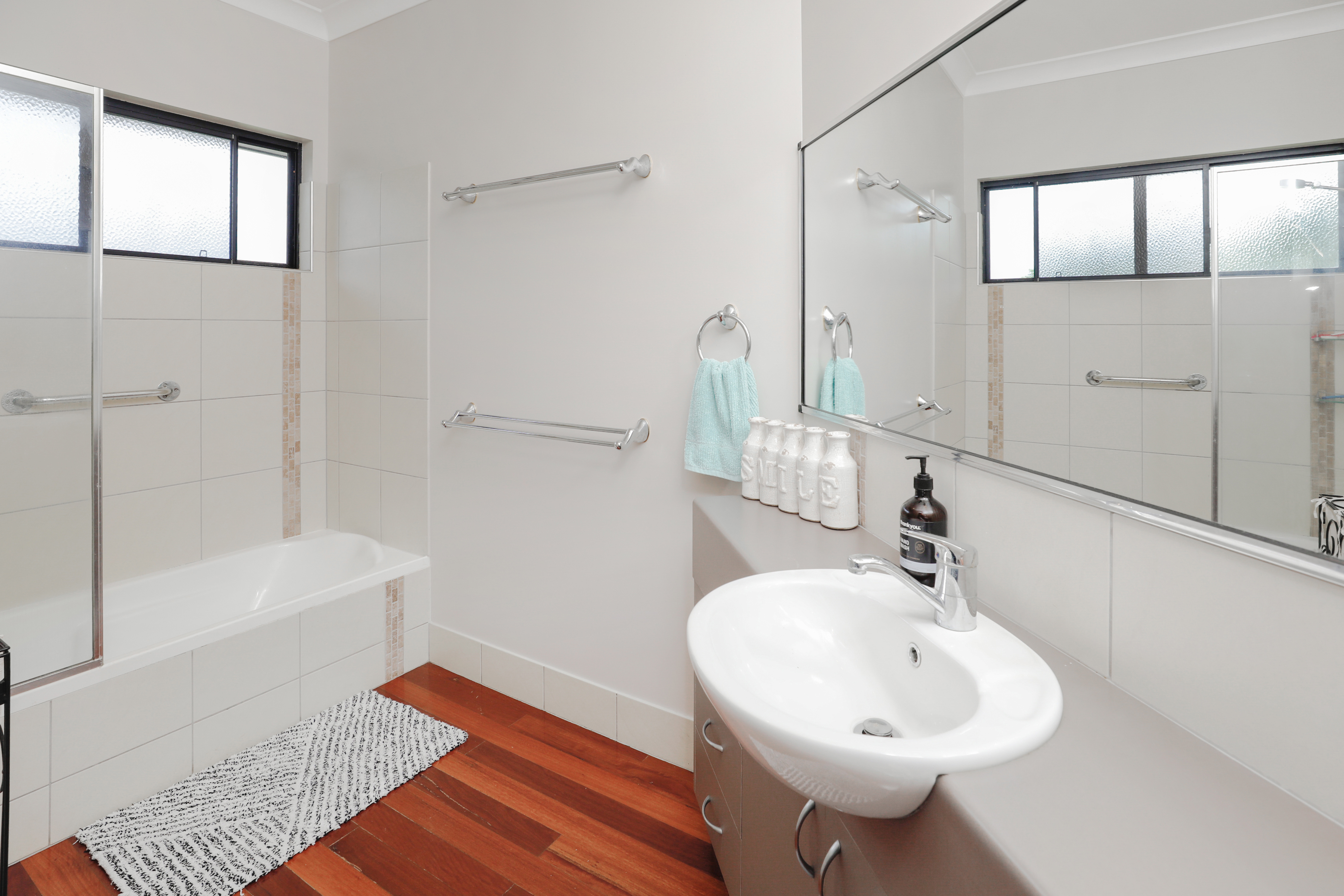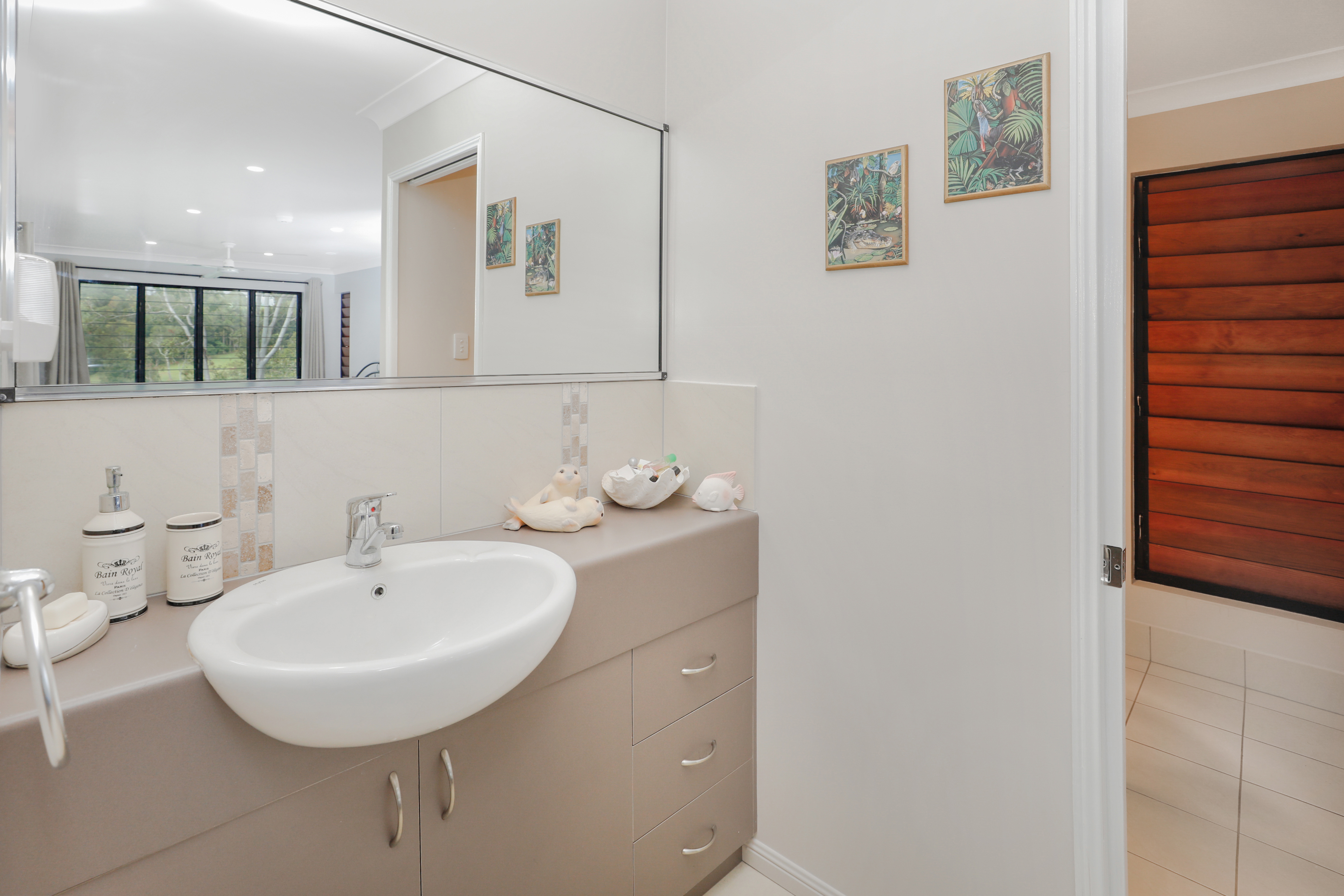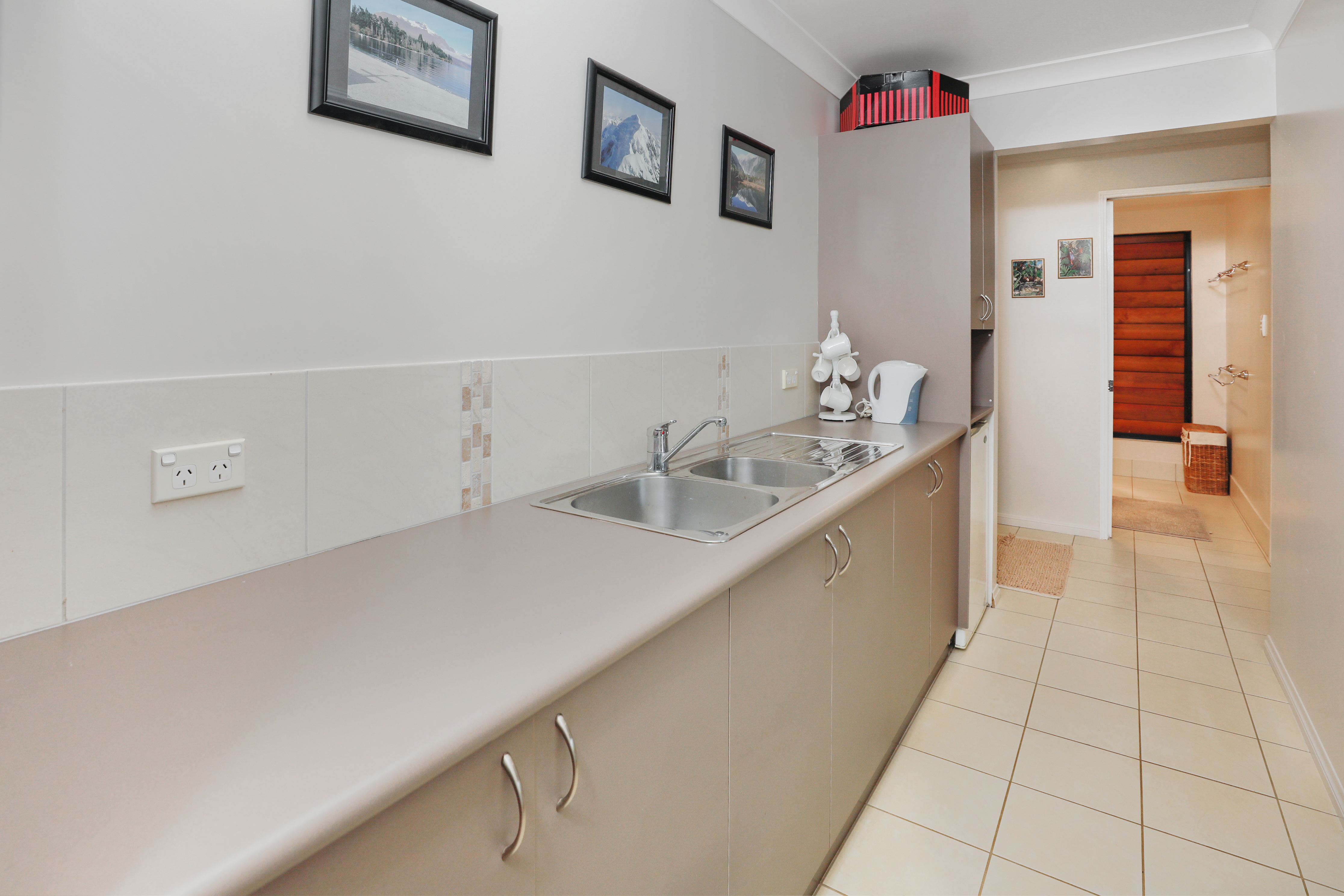 The lower level offers a self contained accommodation with a kitchenette, bathroom and two built in bedrooms, both with sliding door access to the paved patio – this could make an ideal teenagers retreat, granny flat, or accommodation for guests or extended family.