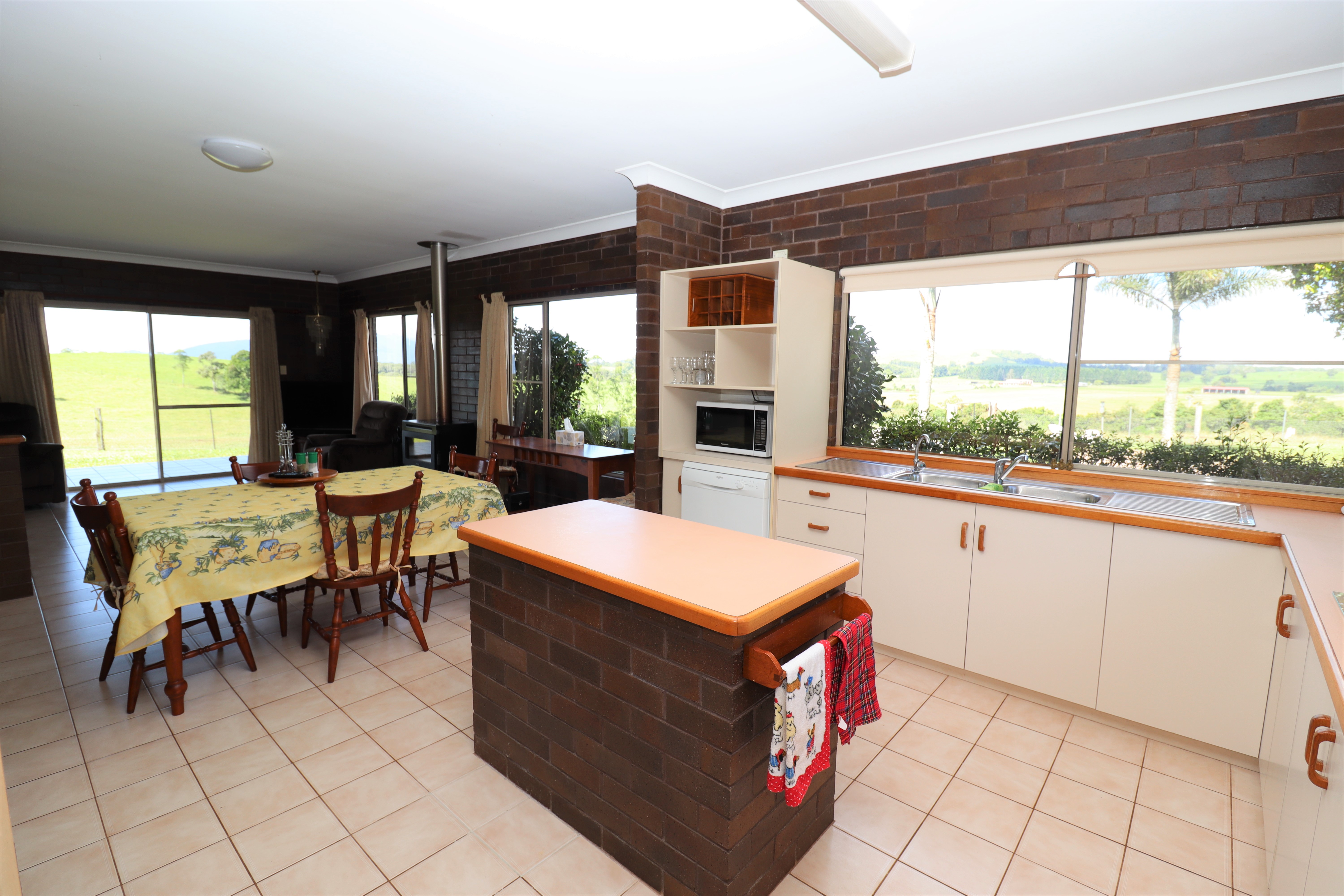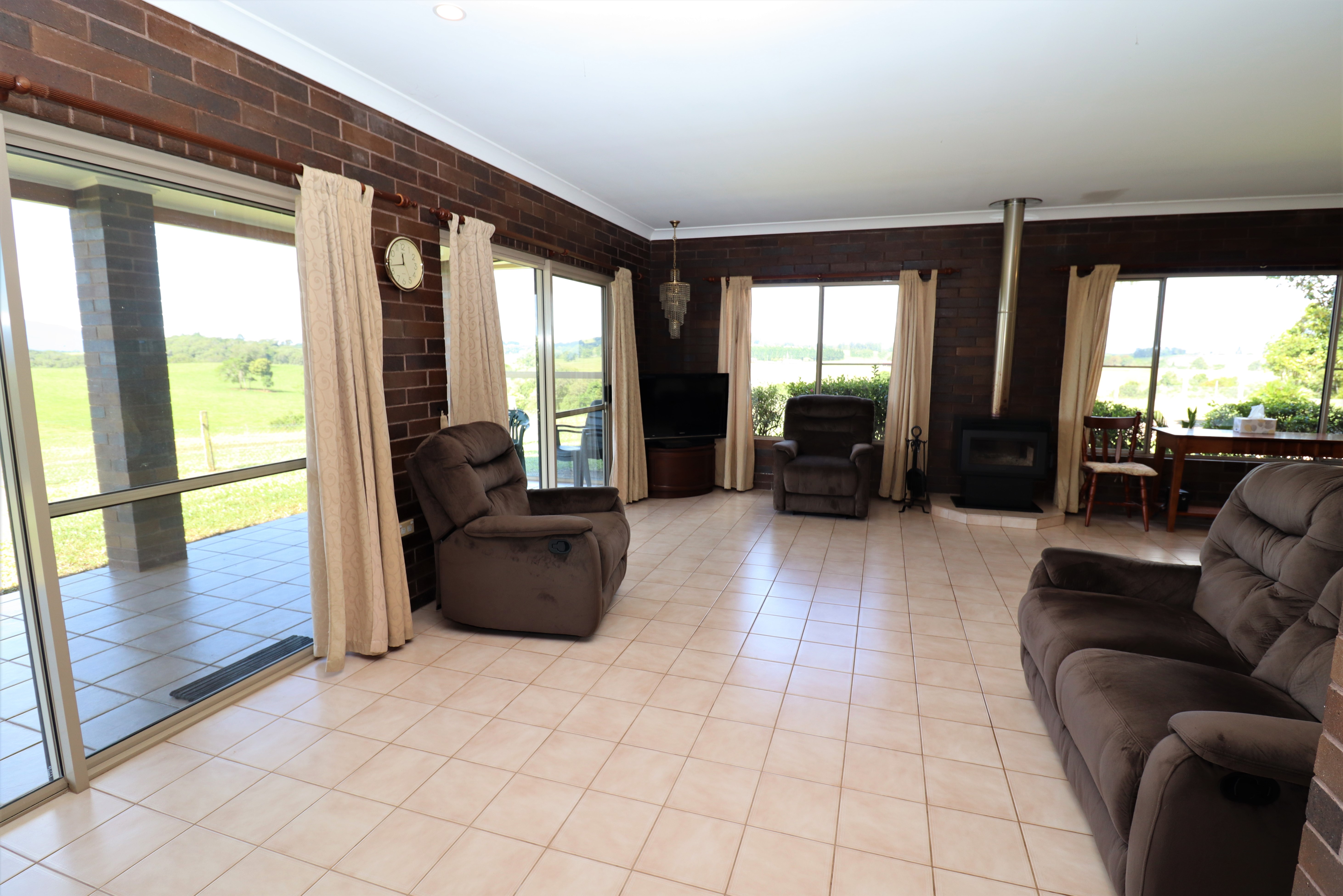 - 3 Bedroom brick home, open plan tiled living, extensive views.